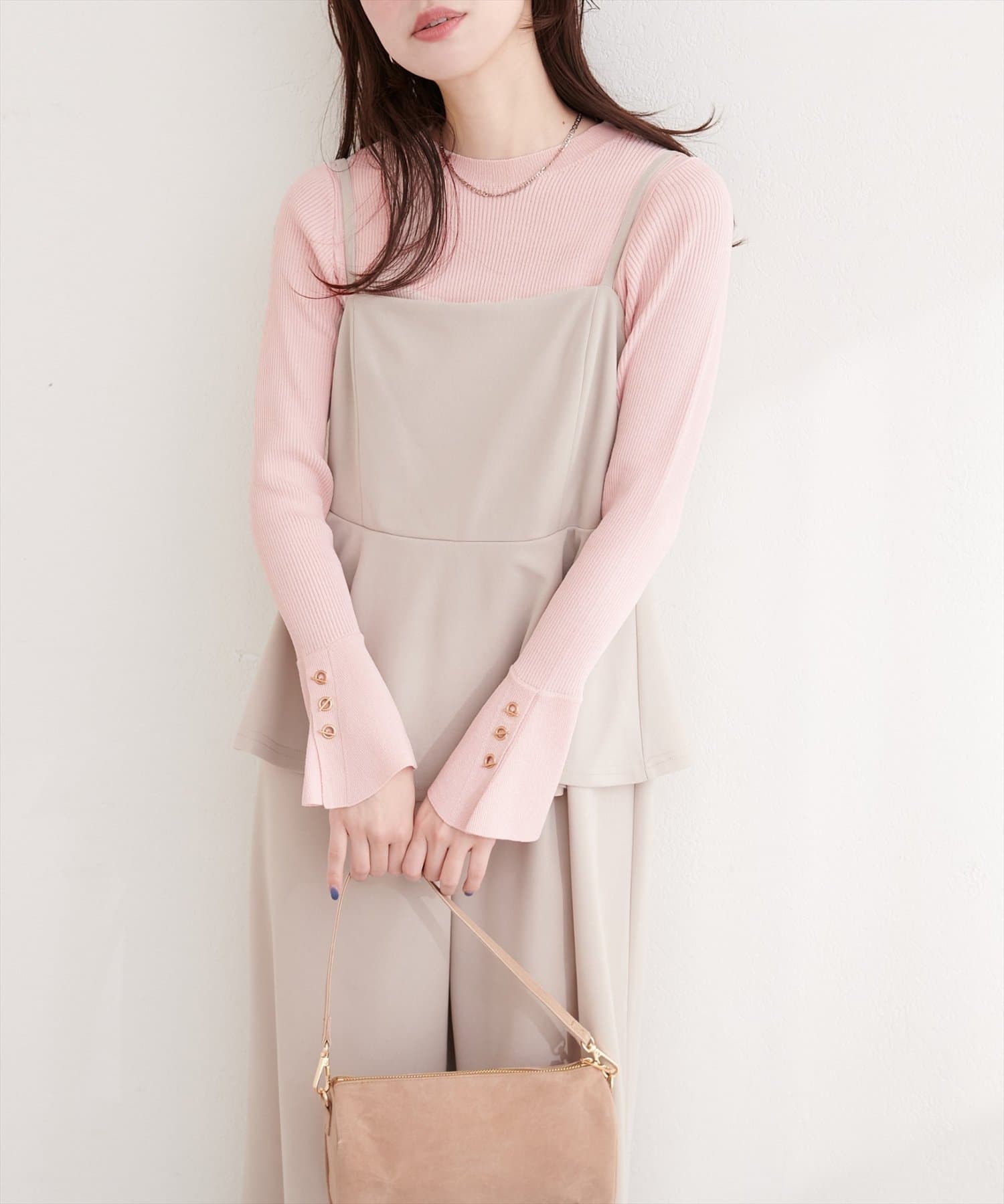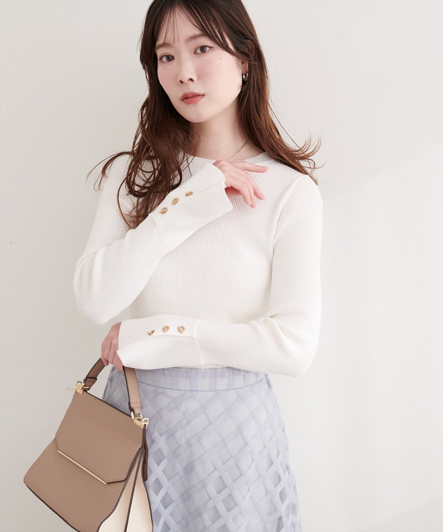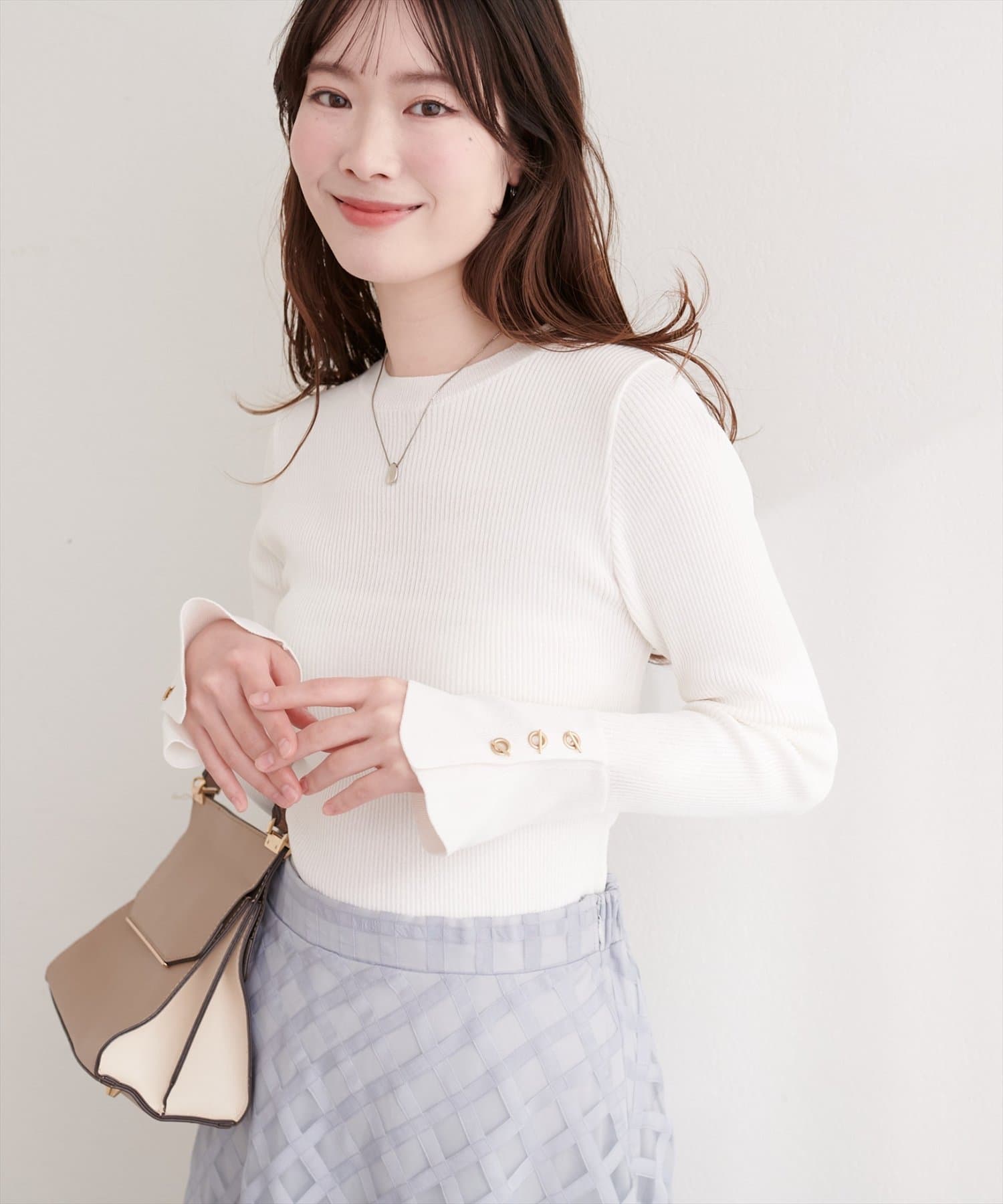 袖口には、上品な輝きを放つハトメ釦をあしらい、手元を華やかに演出。