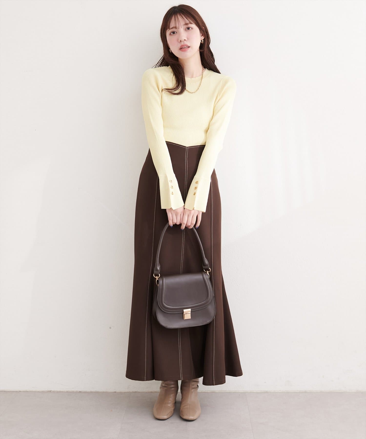 着回し力の高いシンプルなデザインなので、どんなボトムスとも相性抜群です。