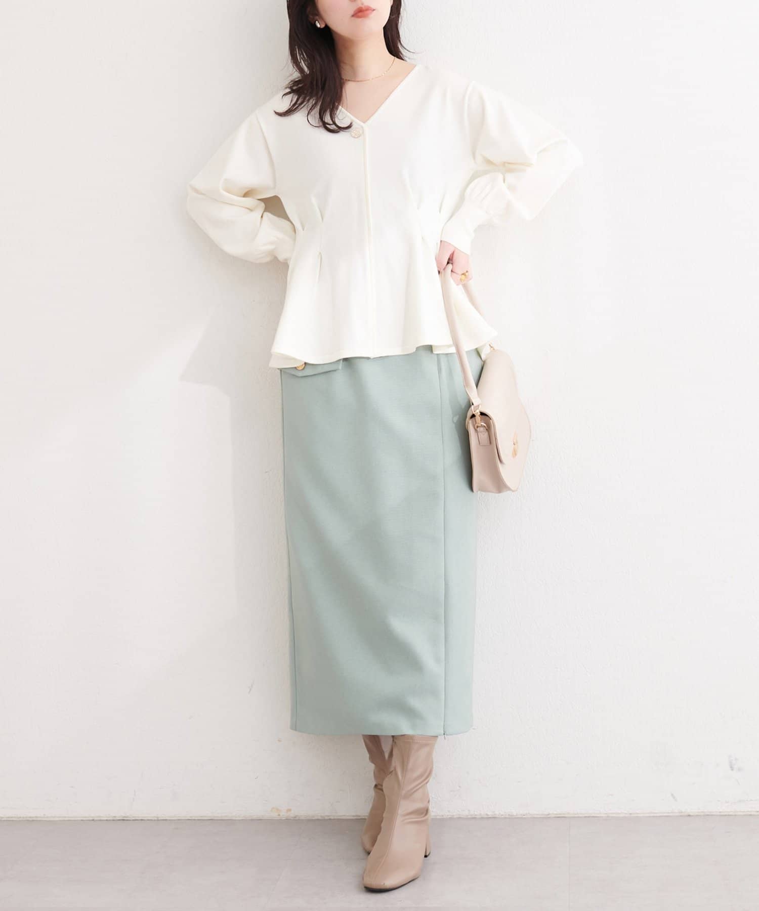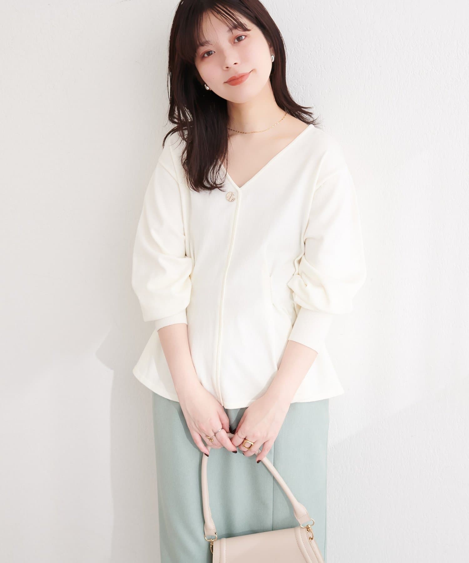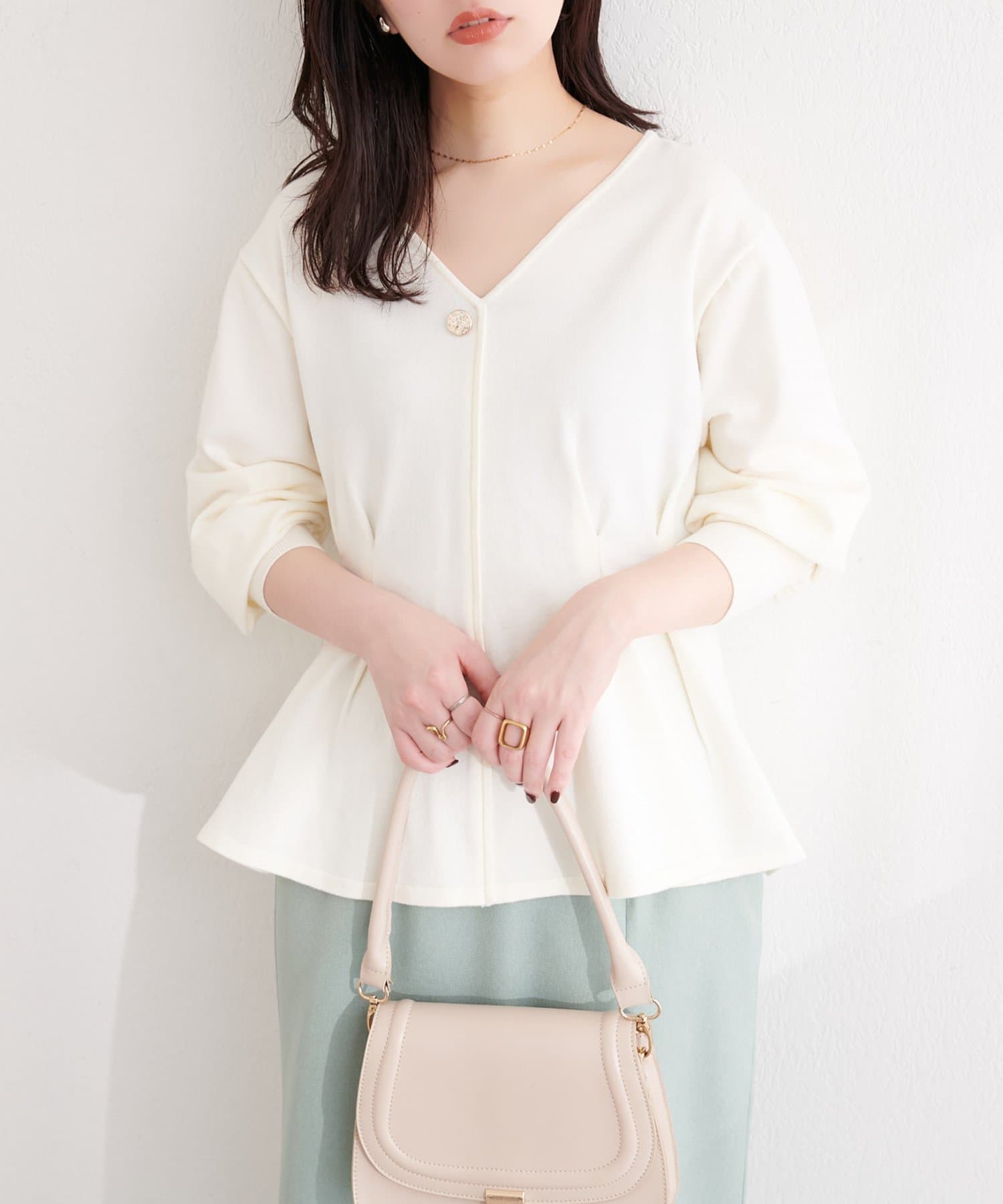 特徴的なペプラムデザインは、可愛らしさだけでなく、スタイルアップ効果も叶えます。