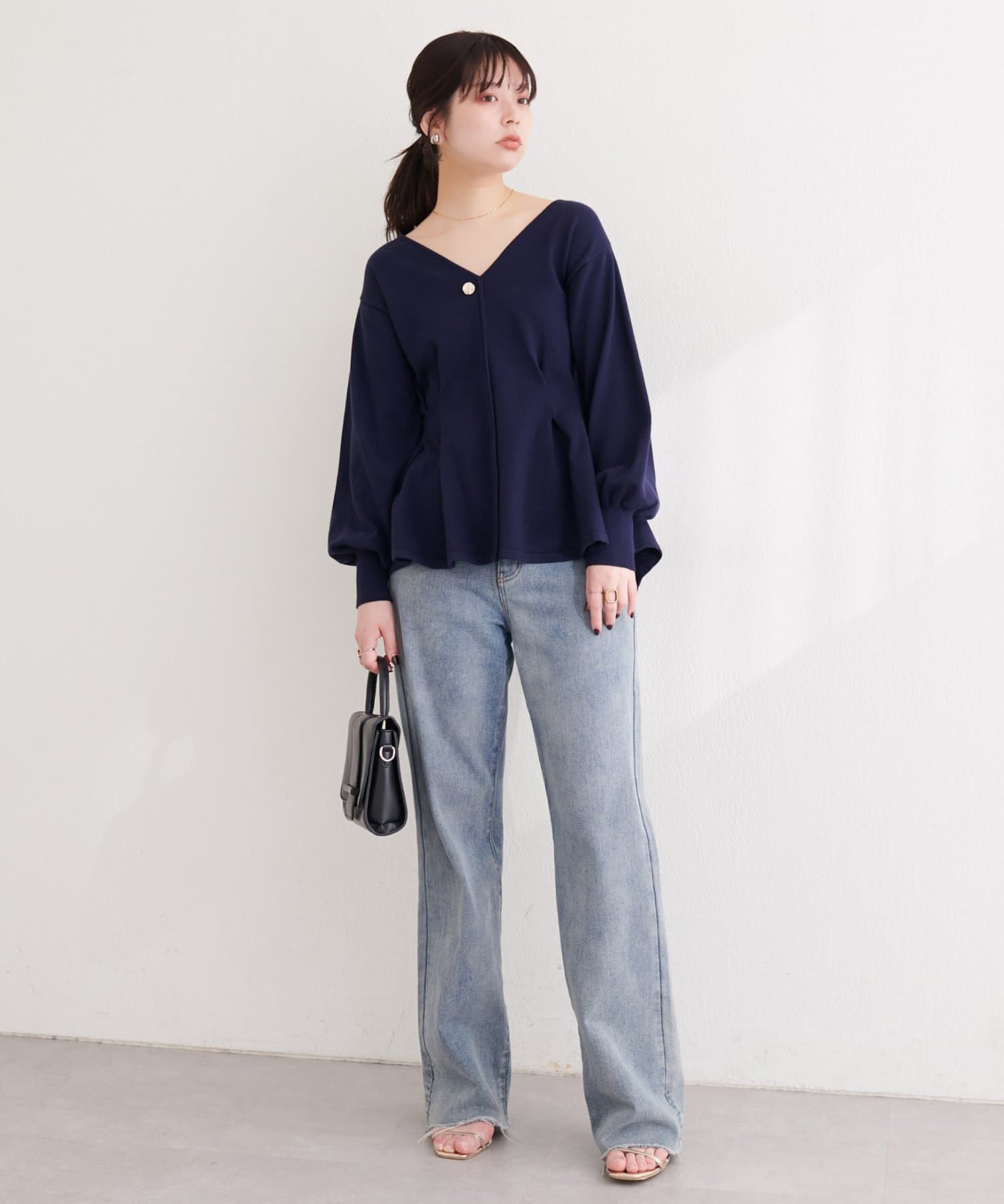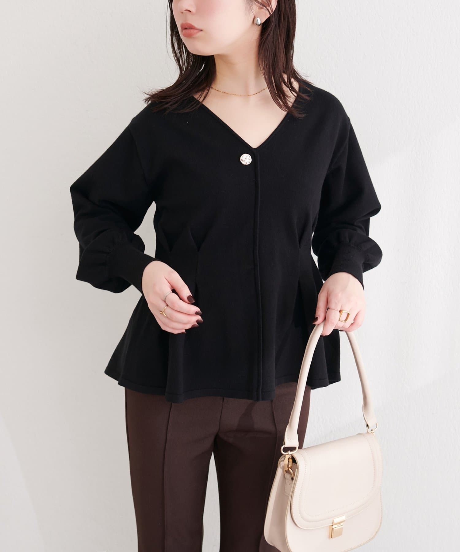 natural couture(ナチュラルクチュール) 〈osono〉タックペプラムニット