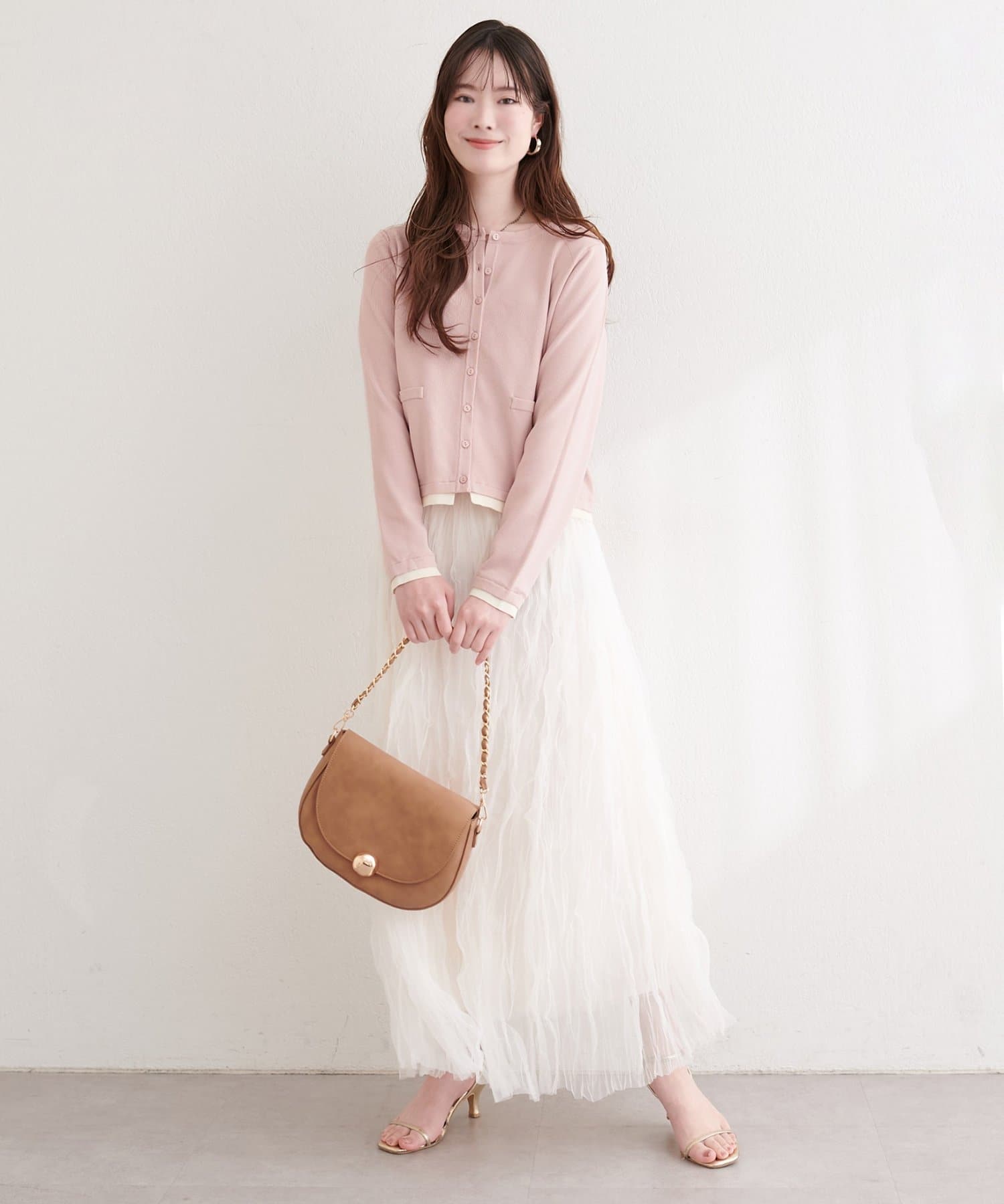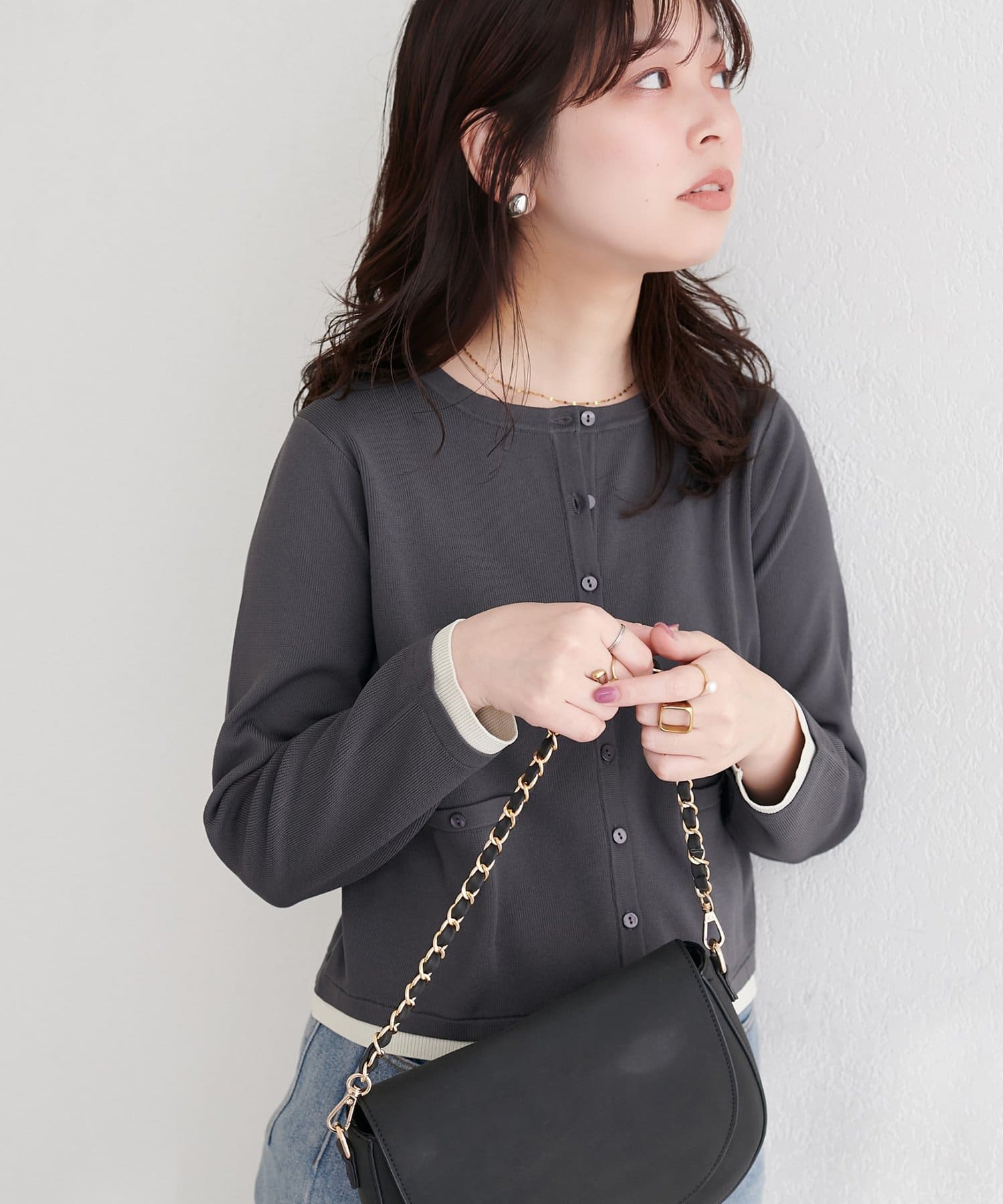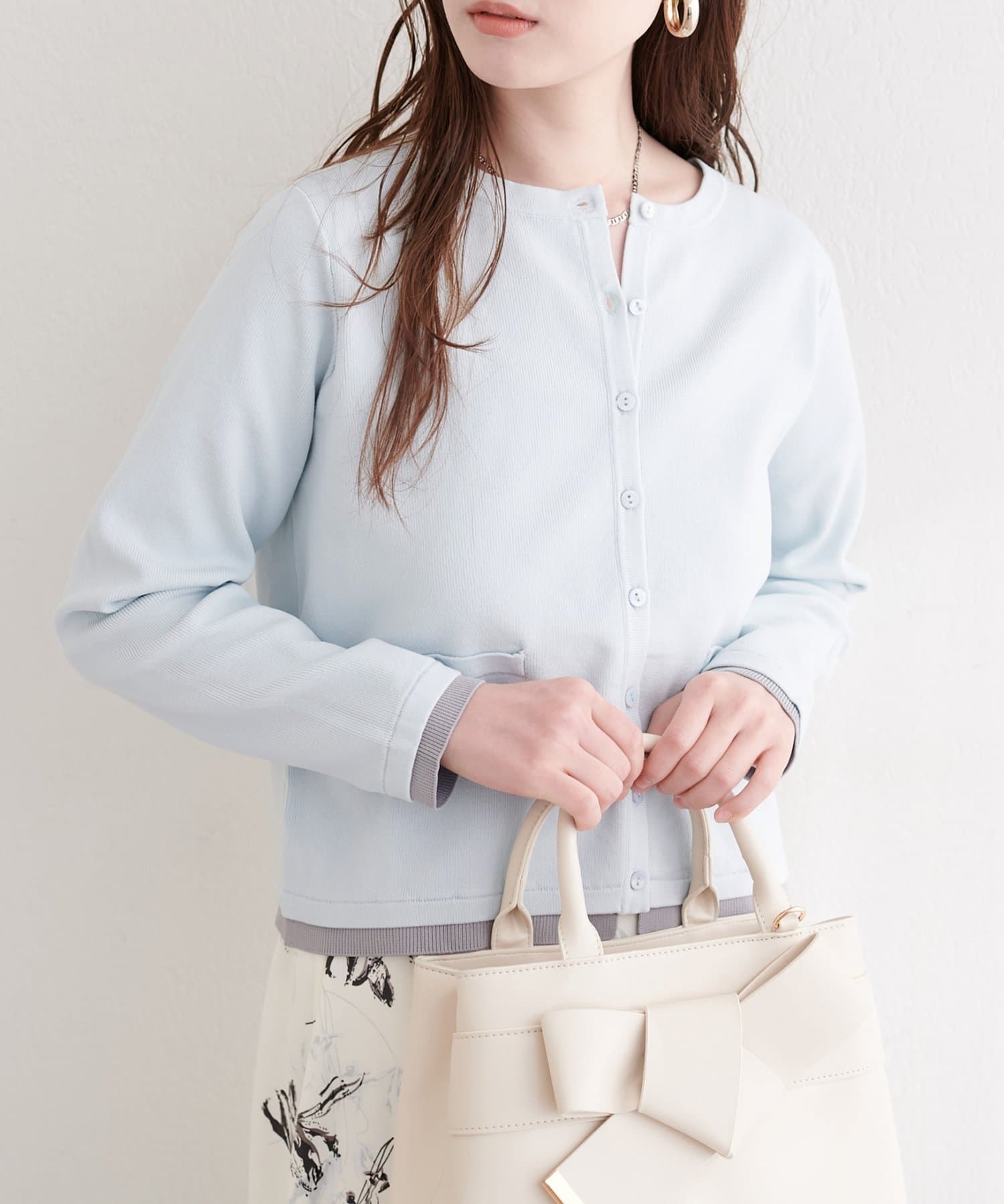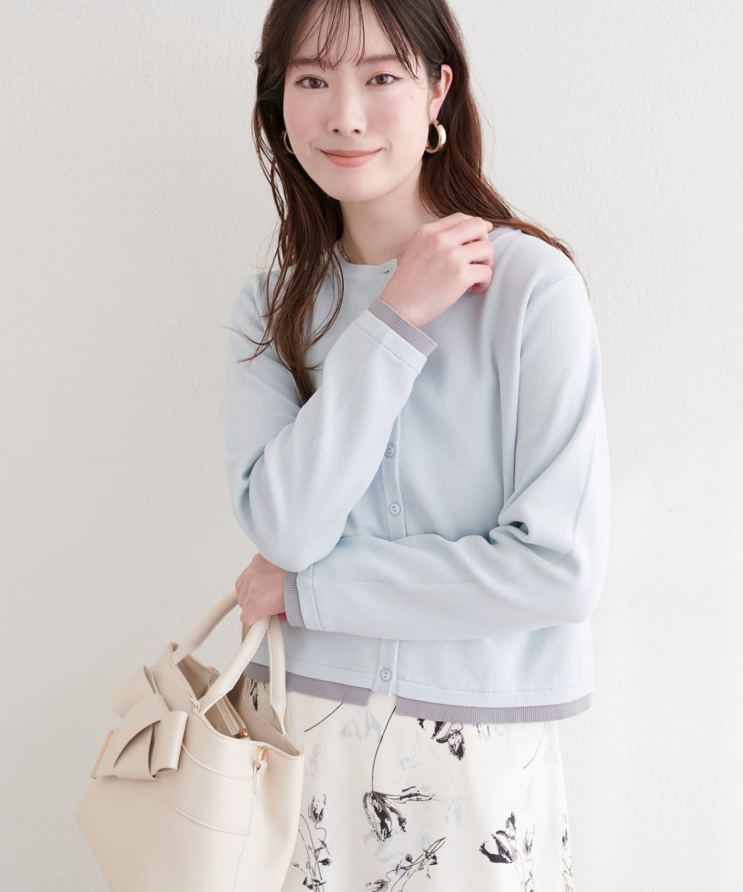 ブラウスやカットソーに羽織れば、きちんと感のあるスタイリングに。