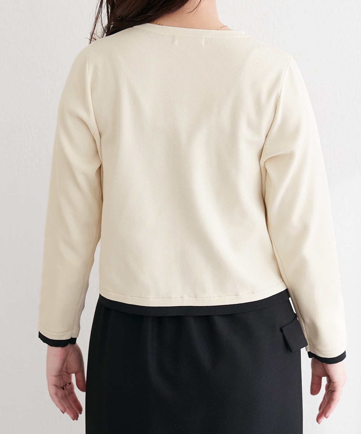 また、フロントのちび釦は、上品な印象を与えつつ、着脱もスムーズに行えます。