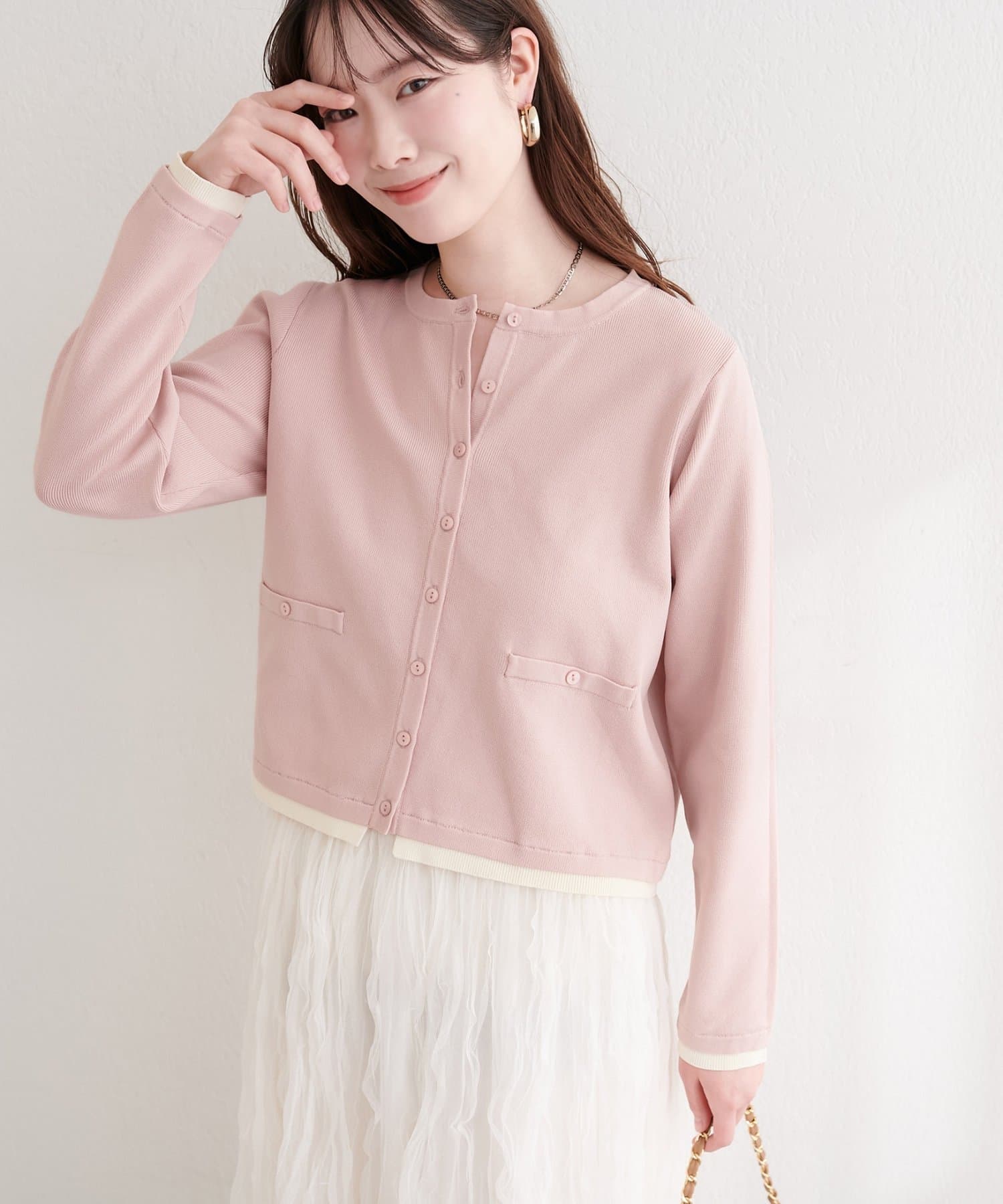 お家で洗える配色ちび釦カーディガン