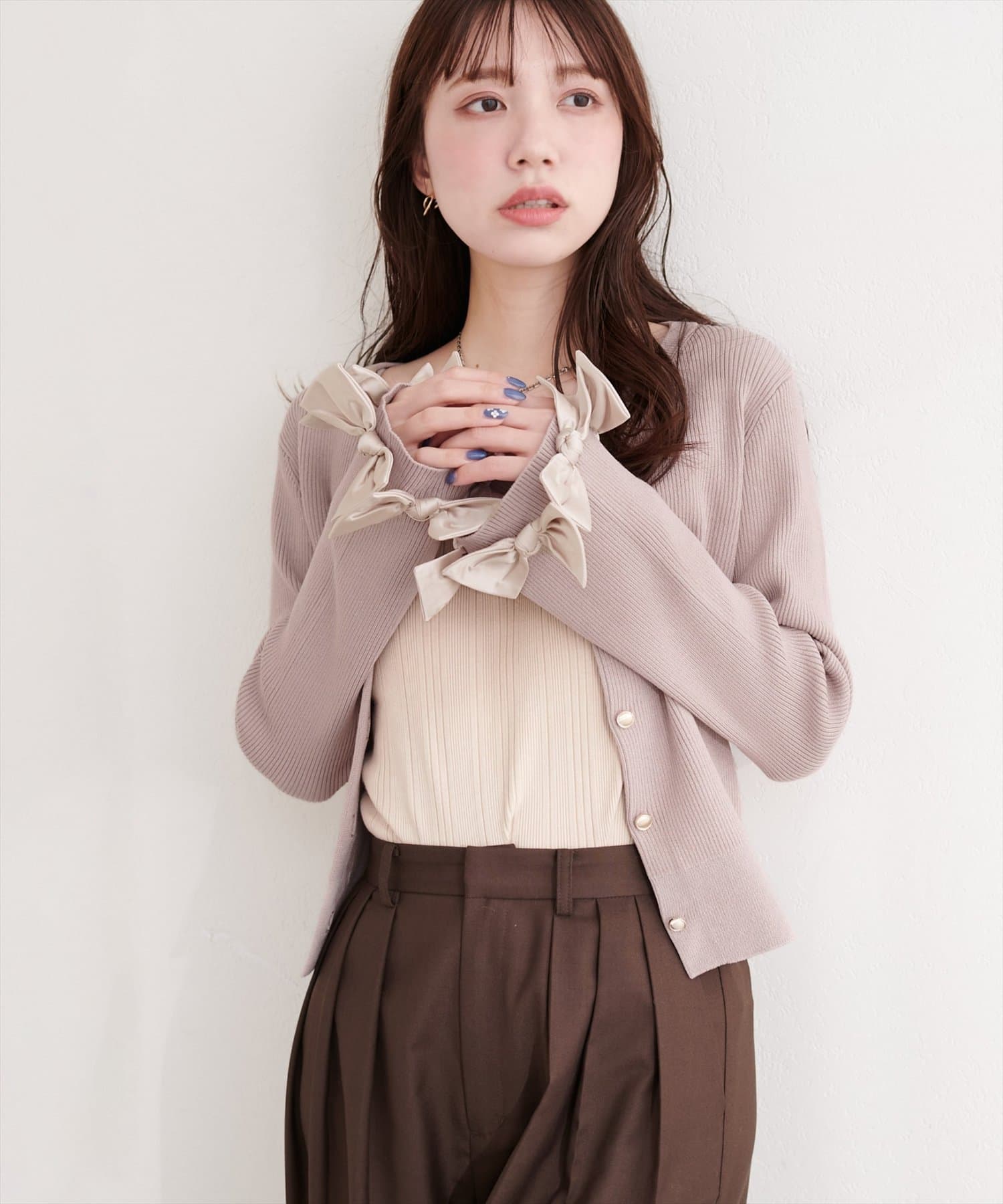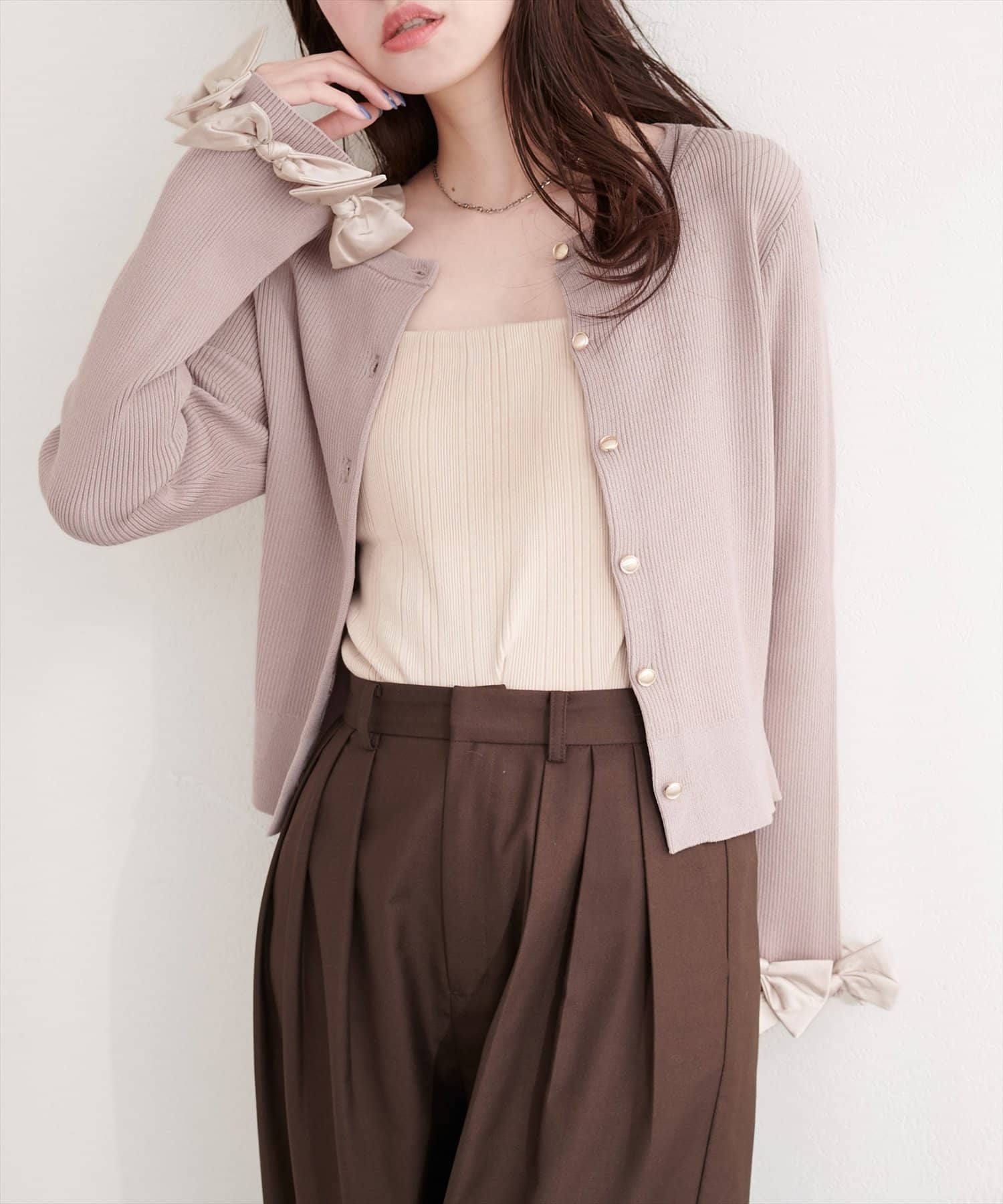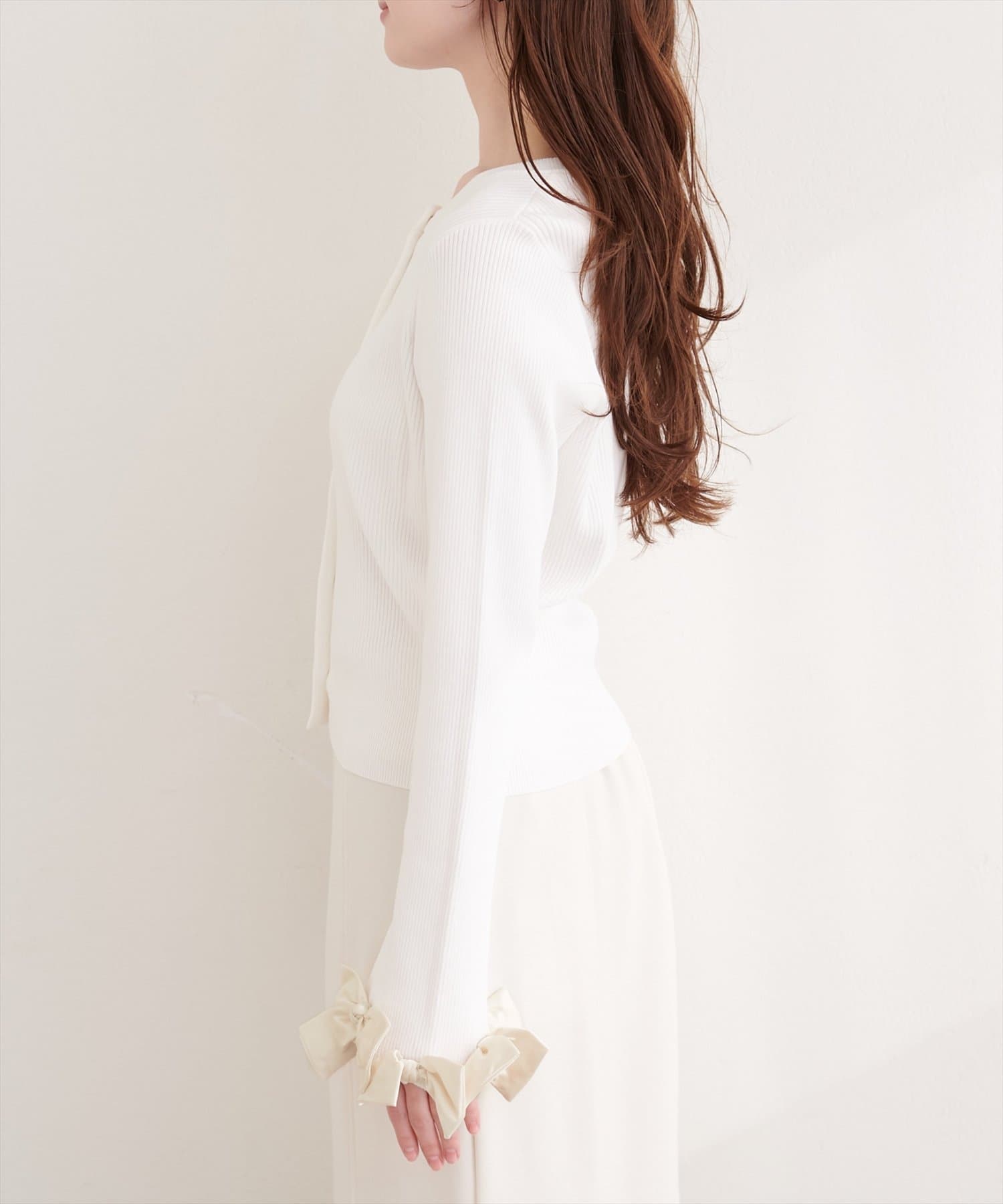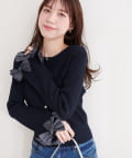 袖口リボンリブカーデ