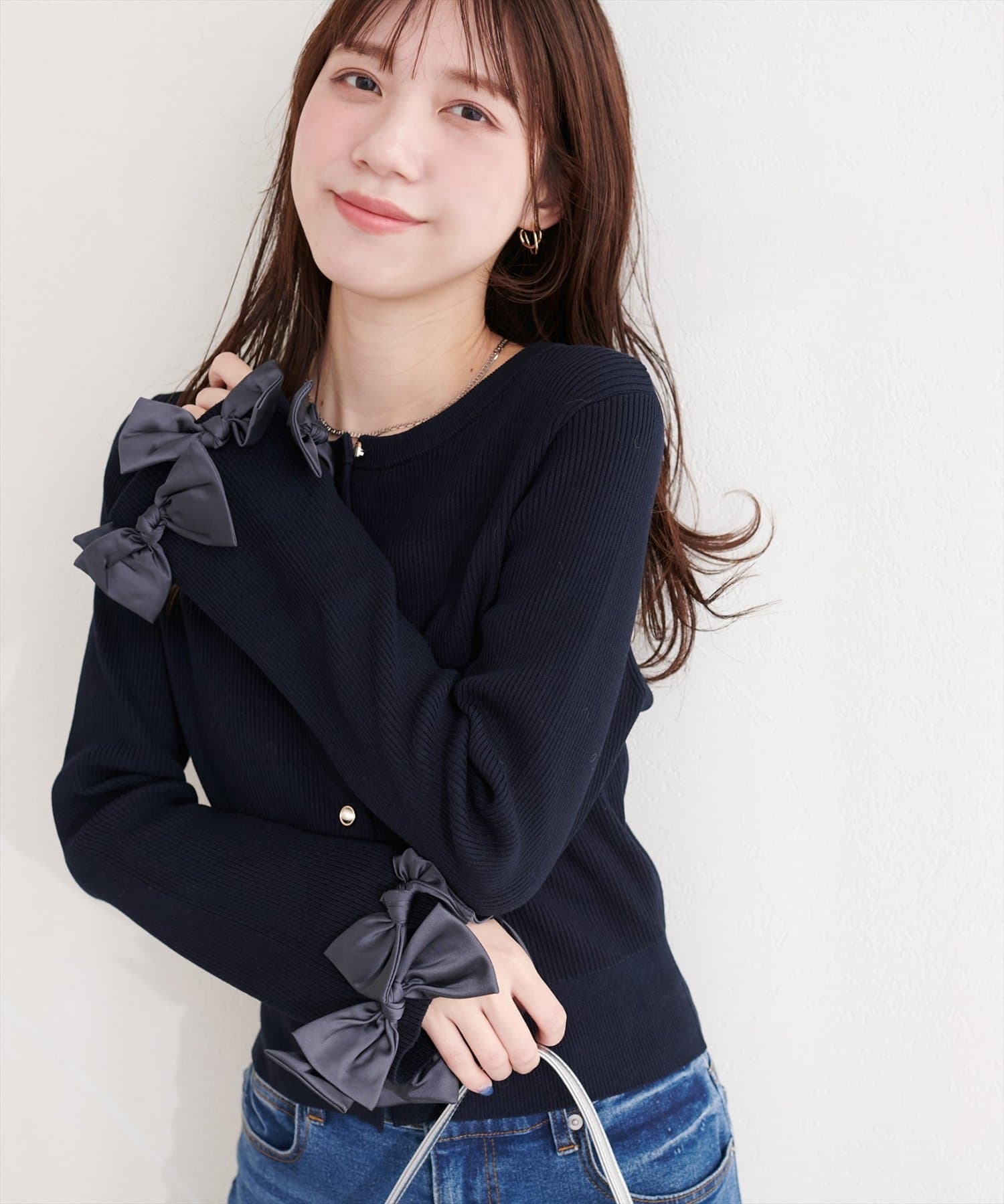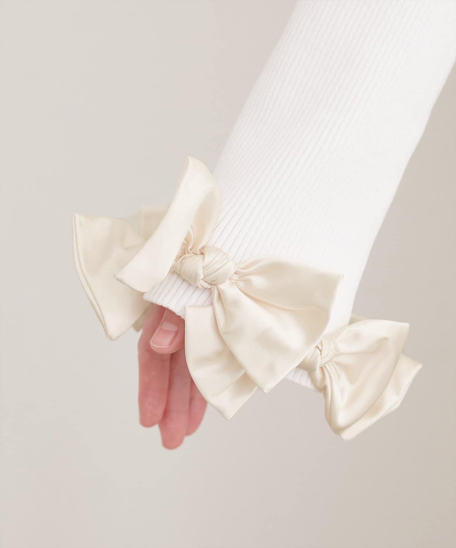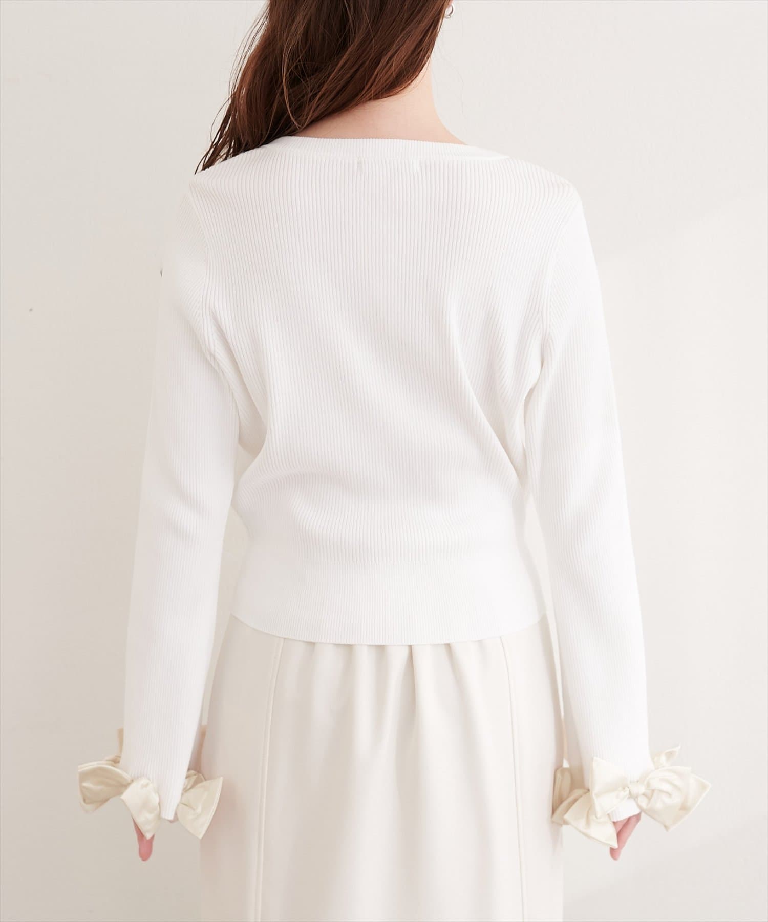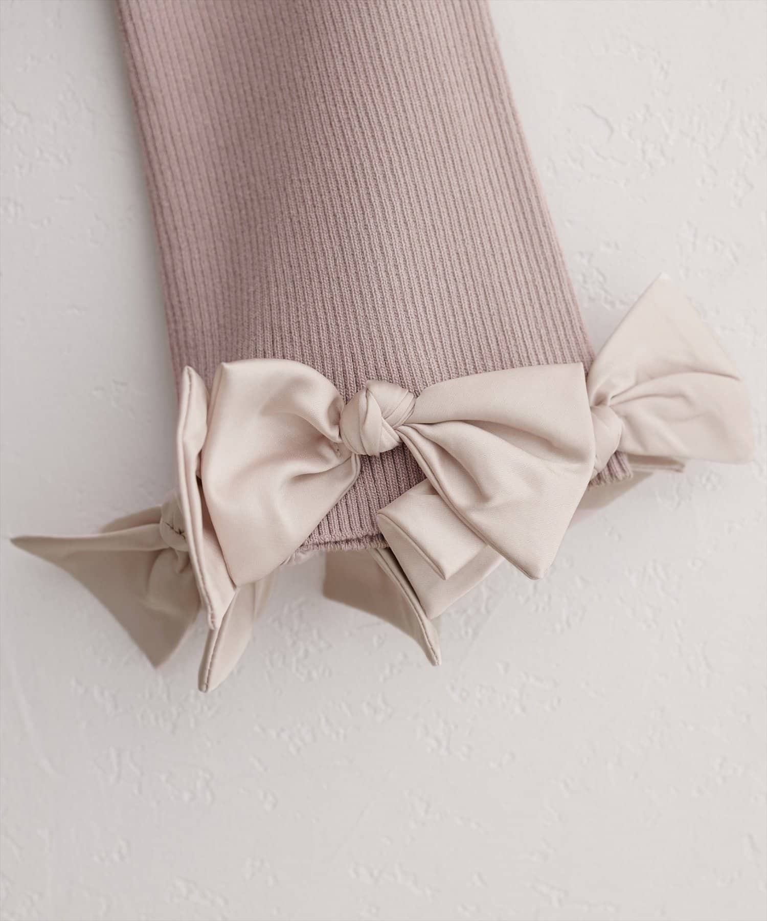 リボンは上品な光沢感がありニット素材とのコントラストも印象的です。