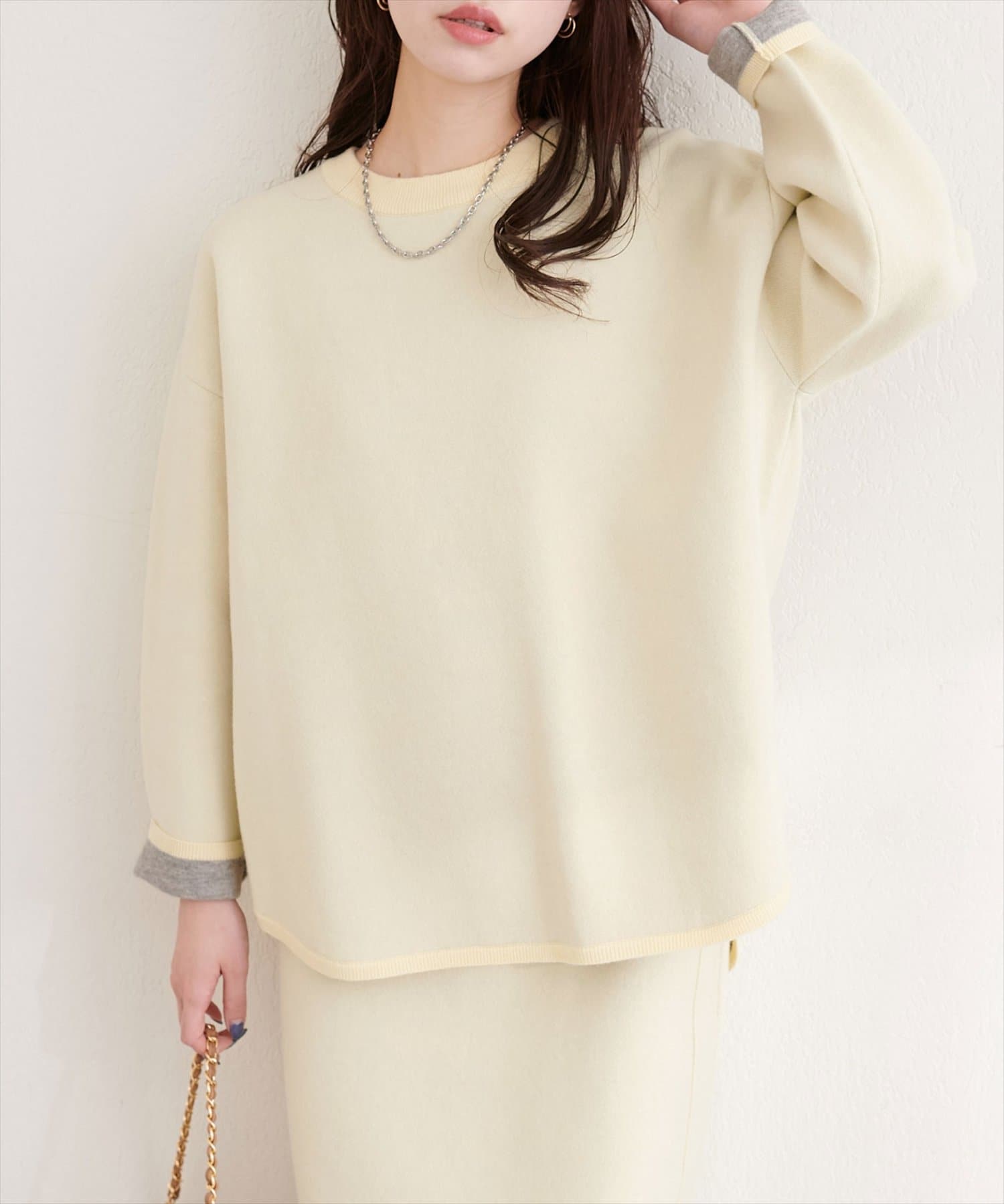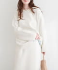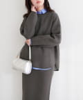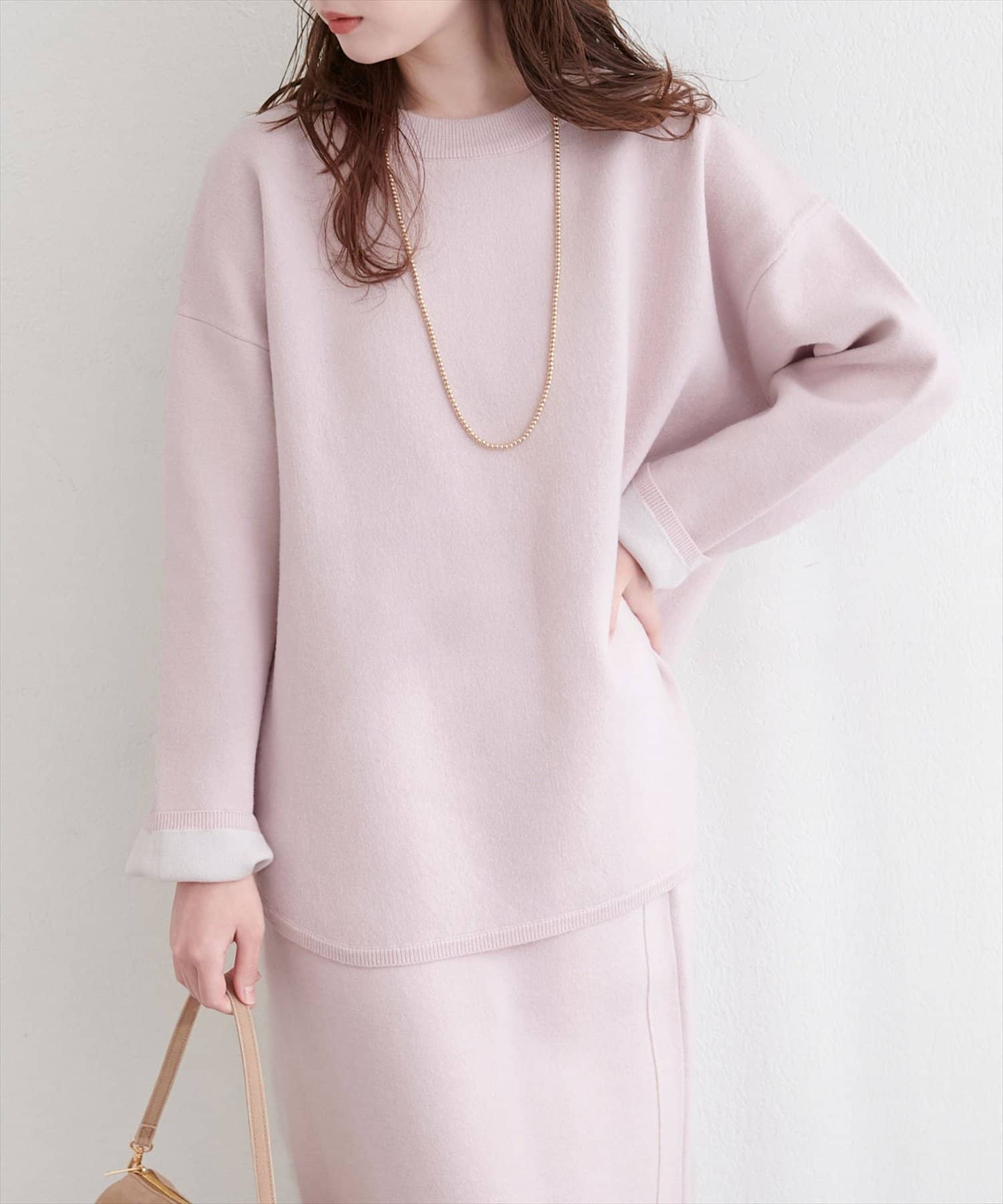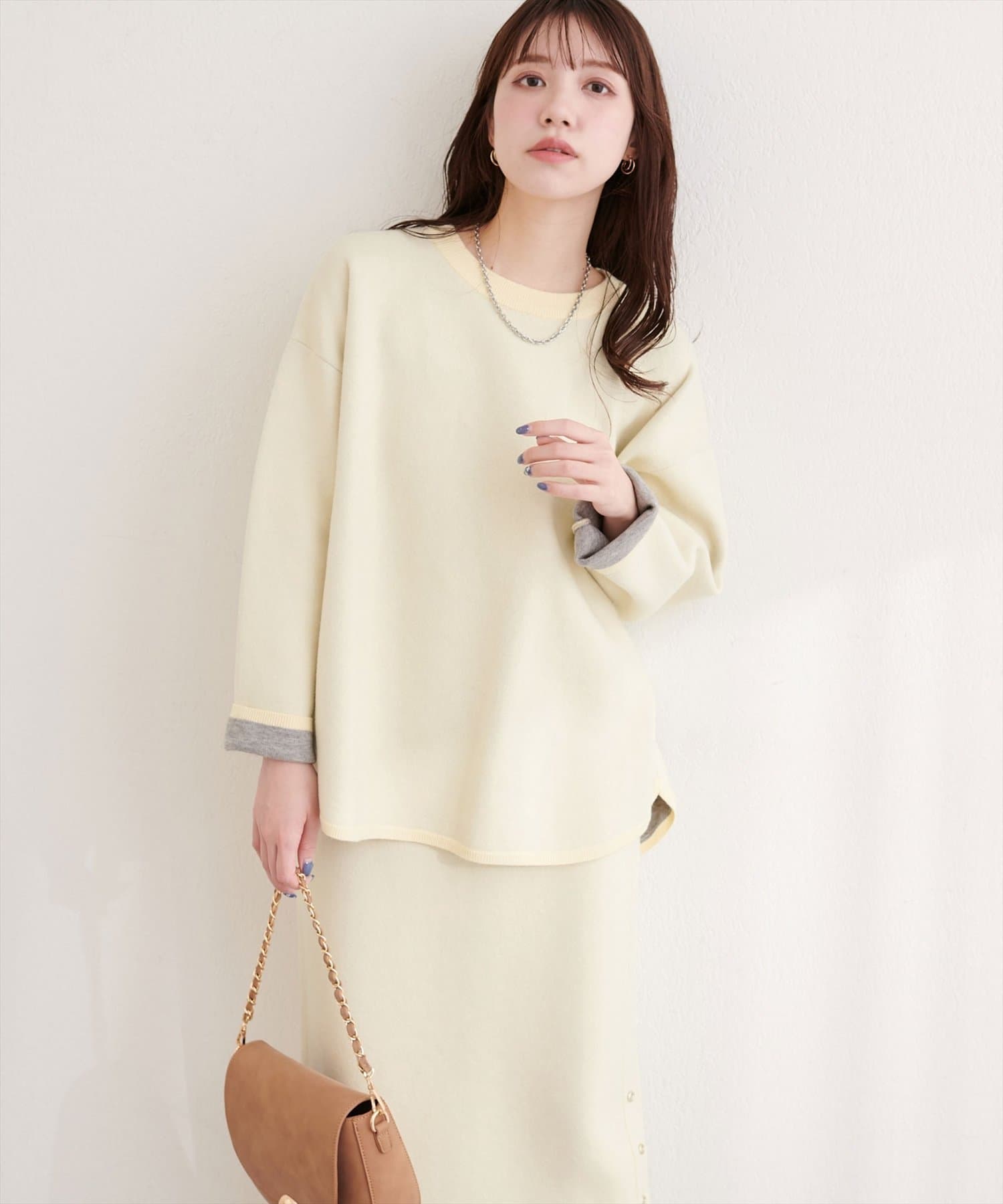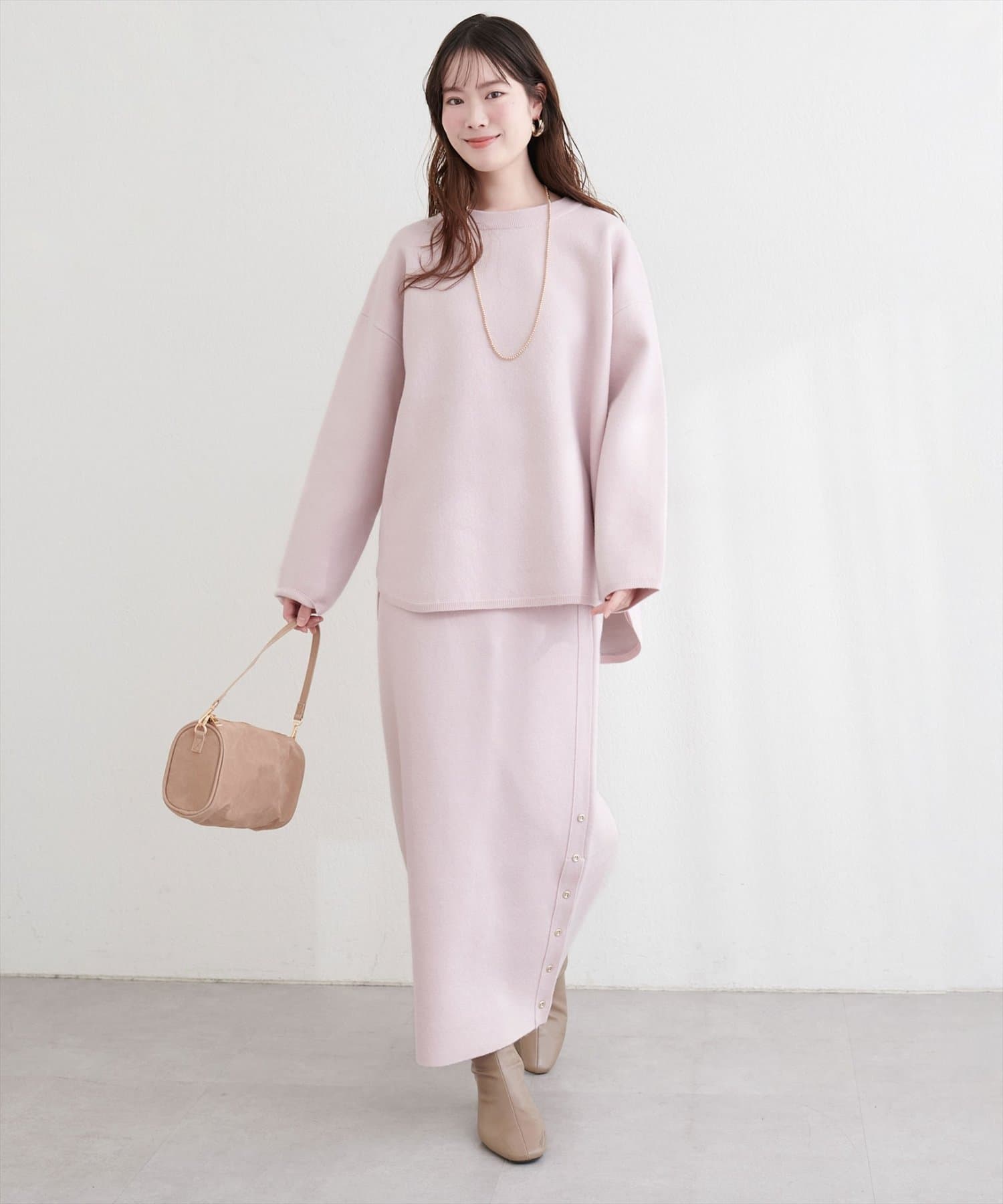 同系色のスカートと合わせて、セットアップ風に着こなすのがおすすめ。