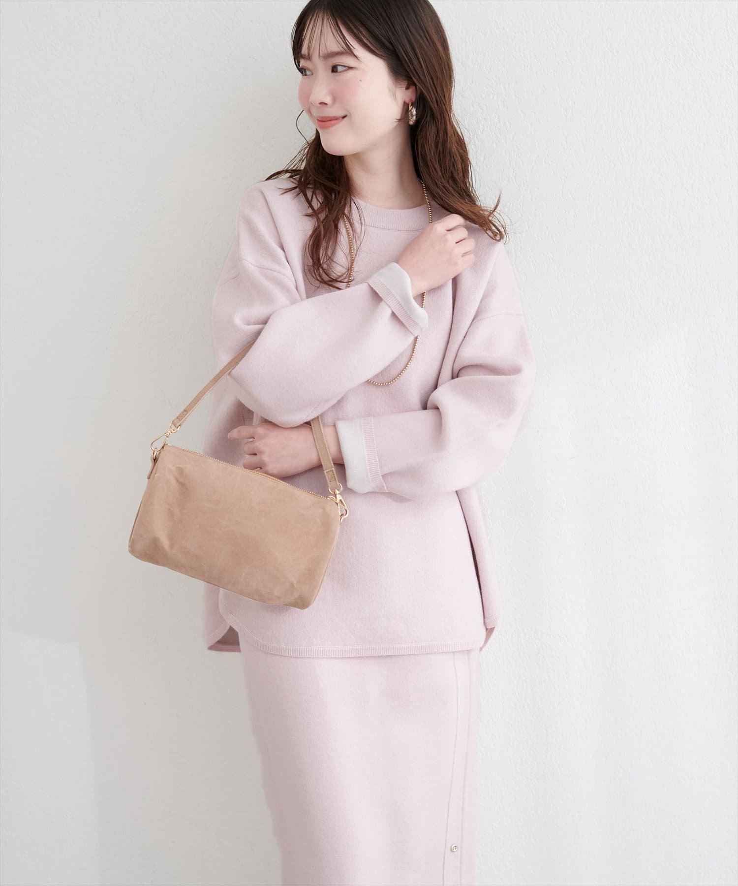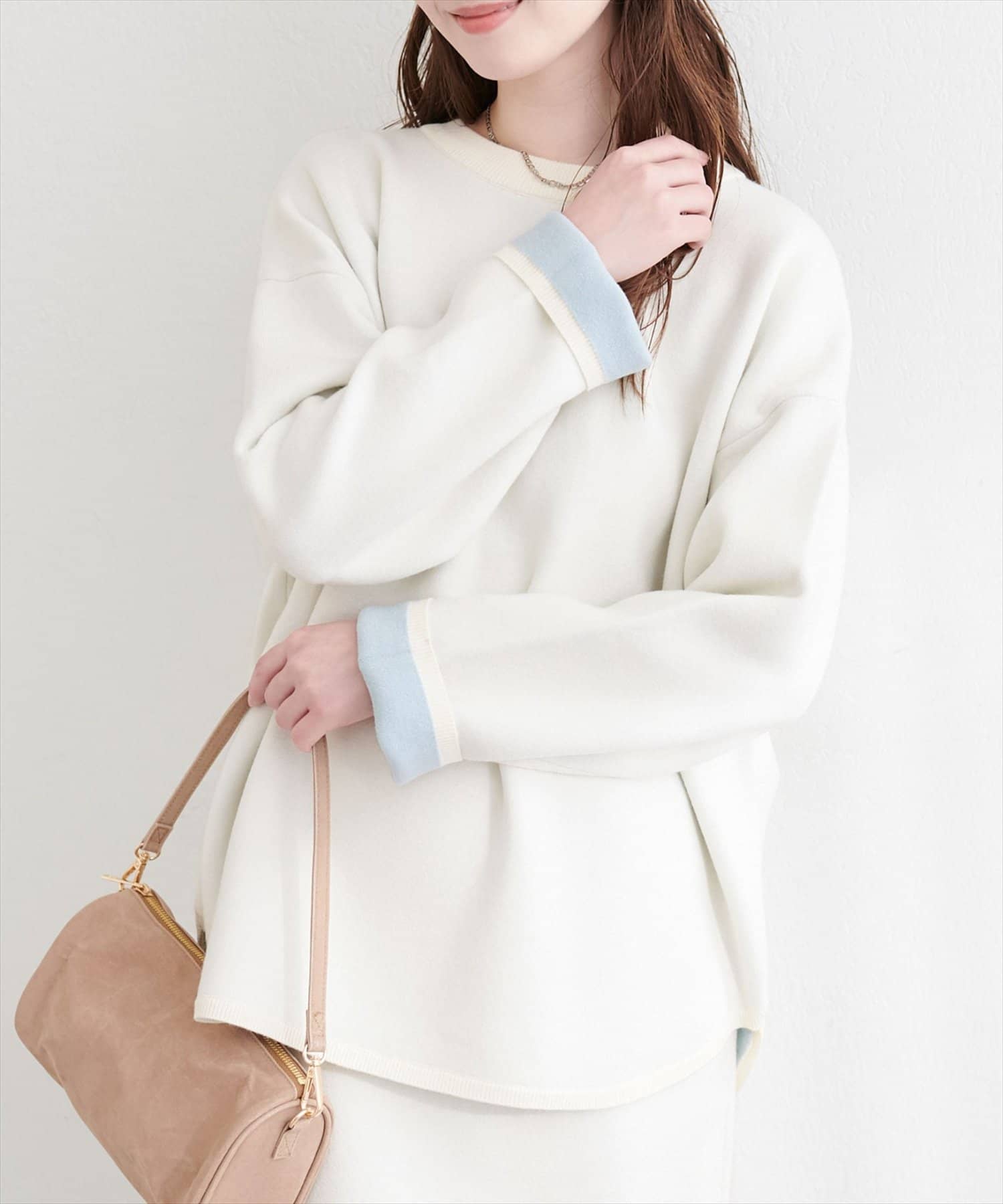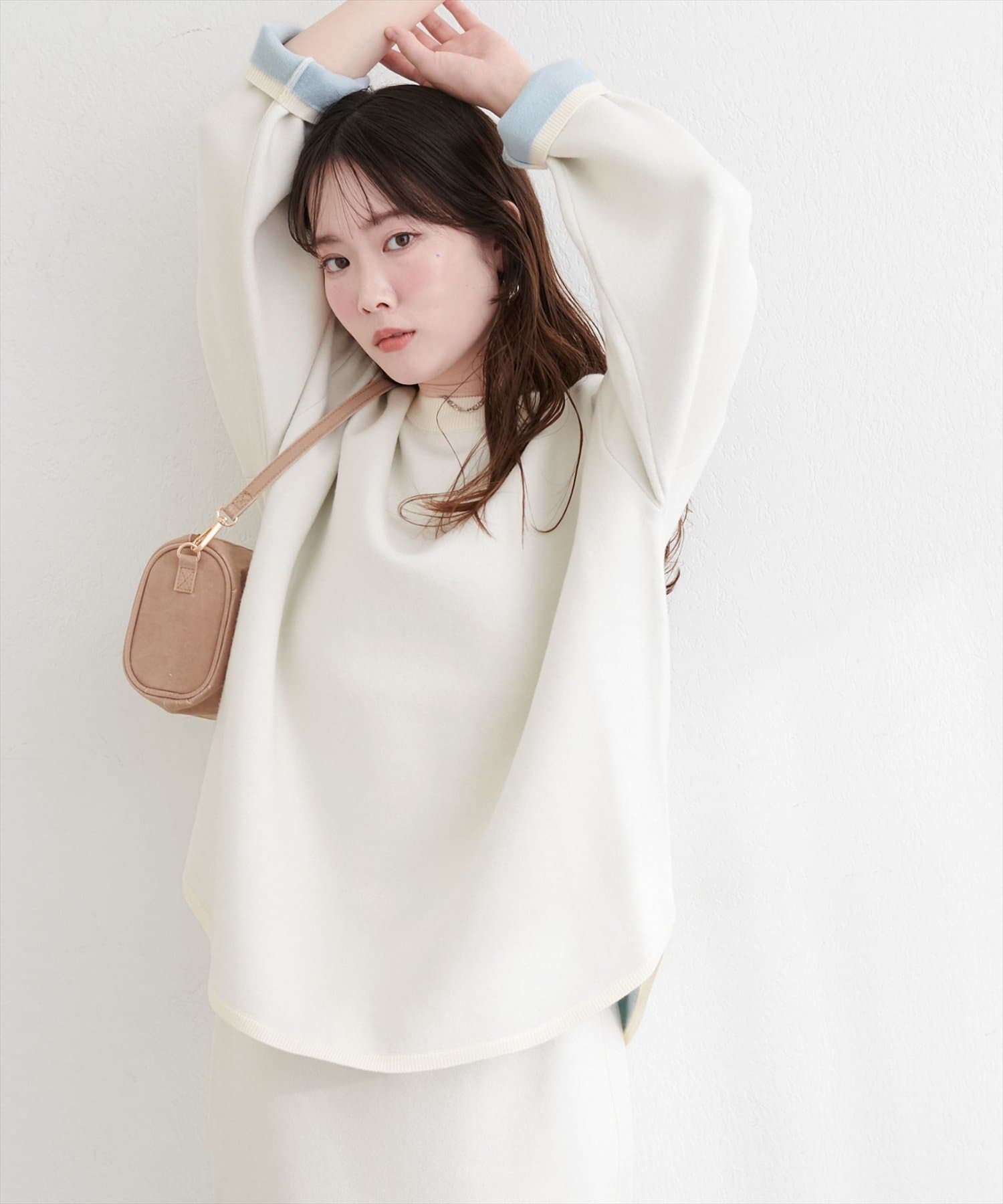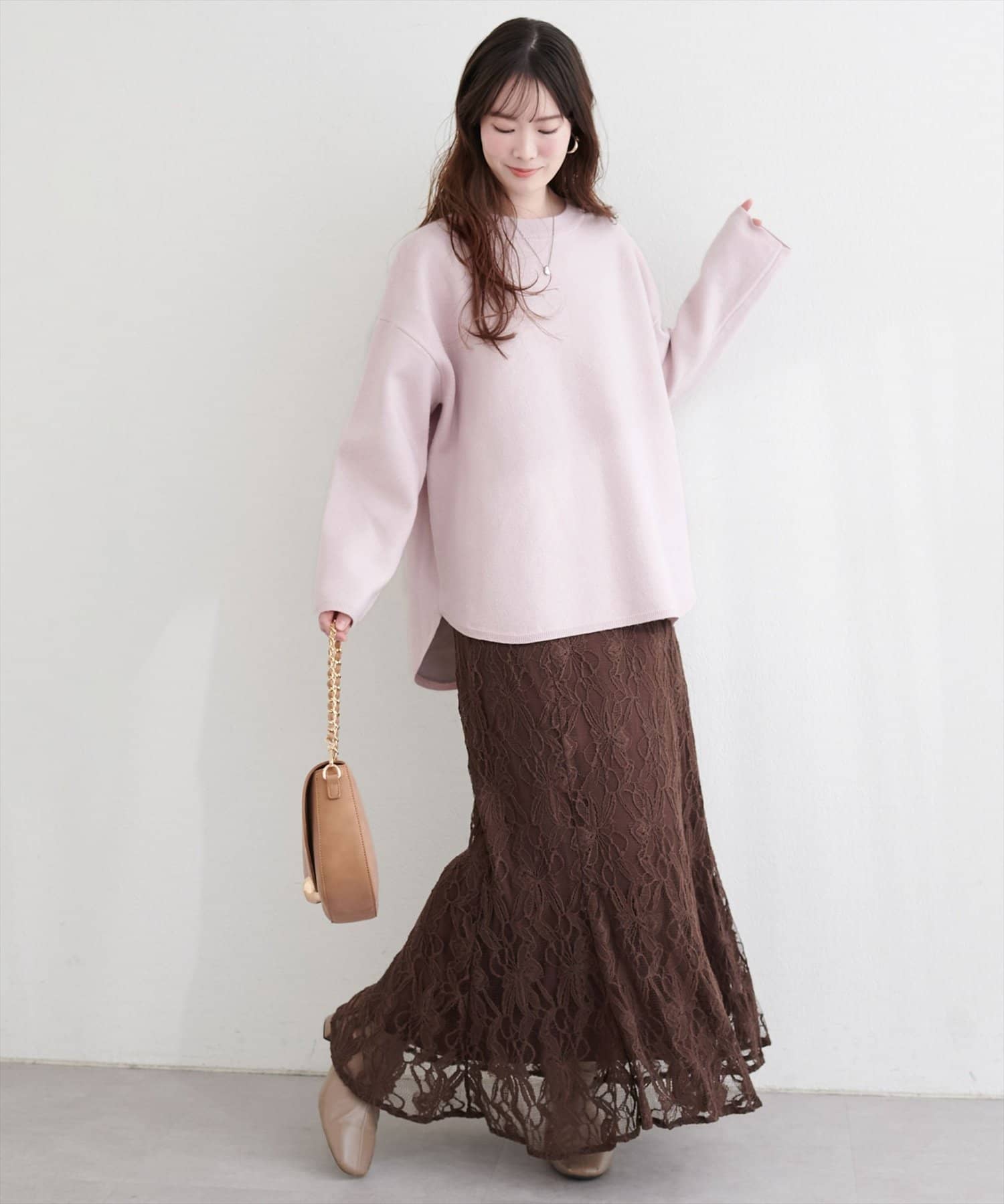 同系色のスカートと合わせて、セットアップ風に着こなすのがおすすめ。