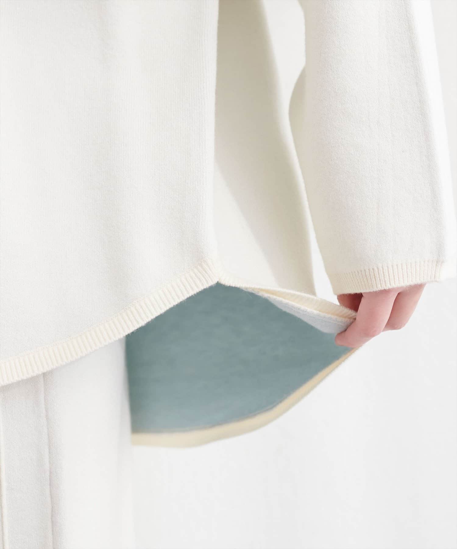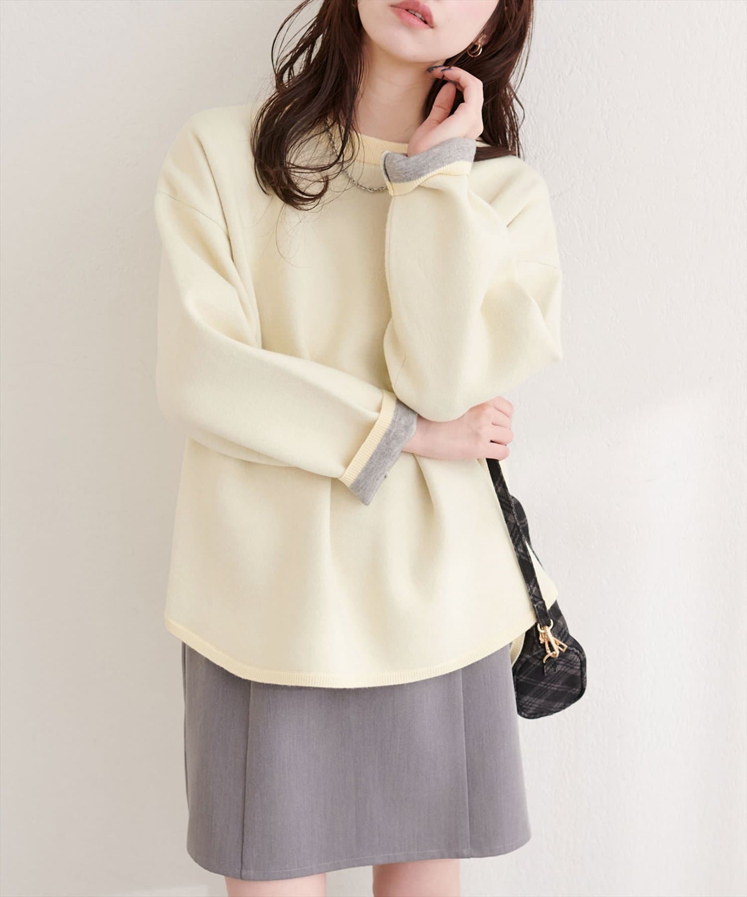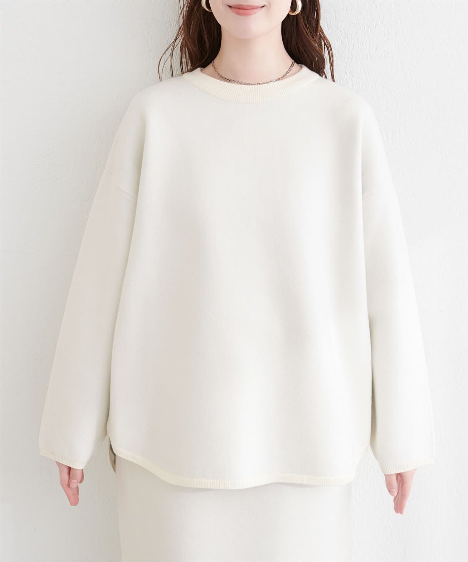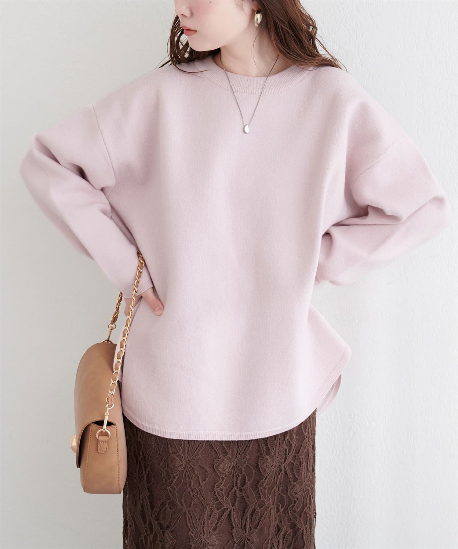 裾口のラウンドカットが、シンプルな中にフェミニンな印象をプラス。