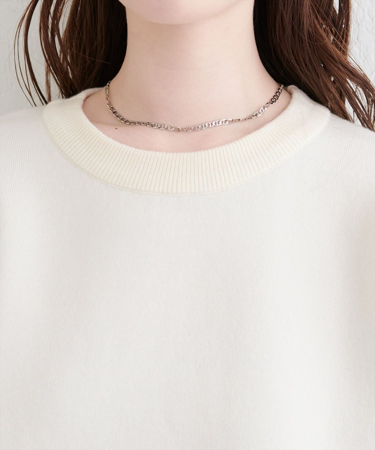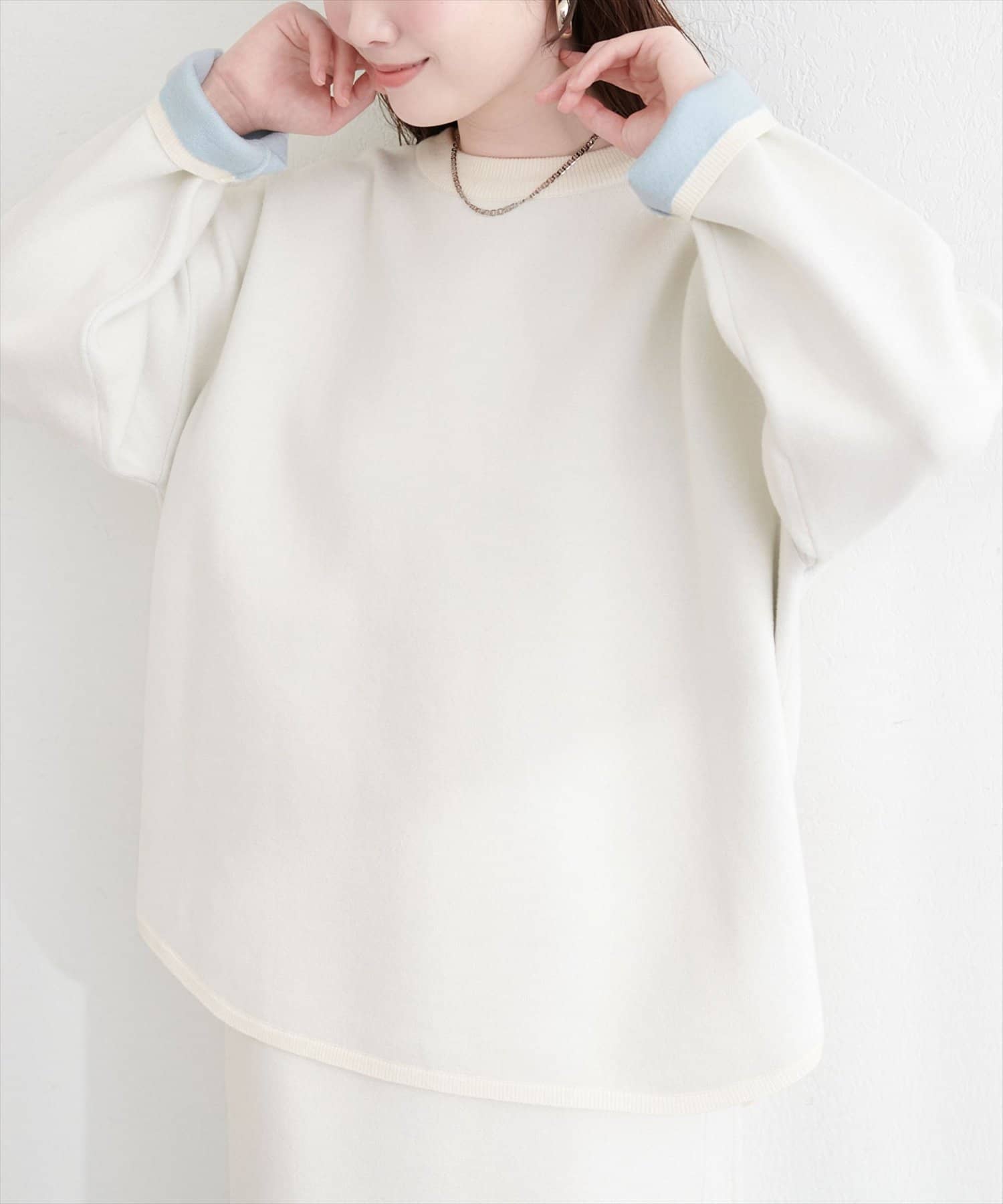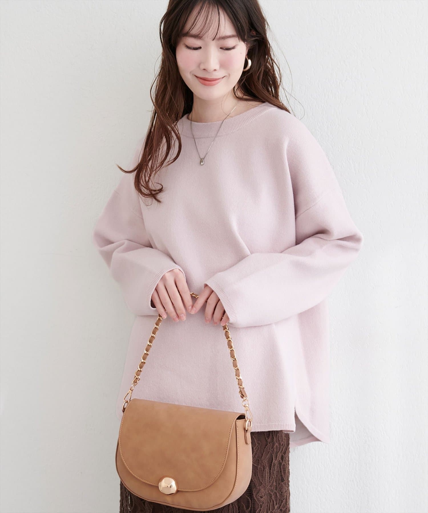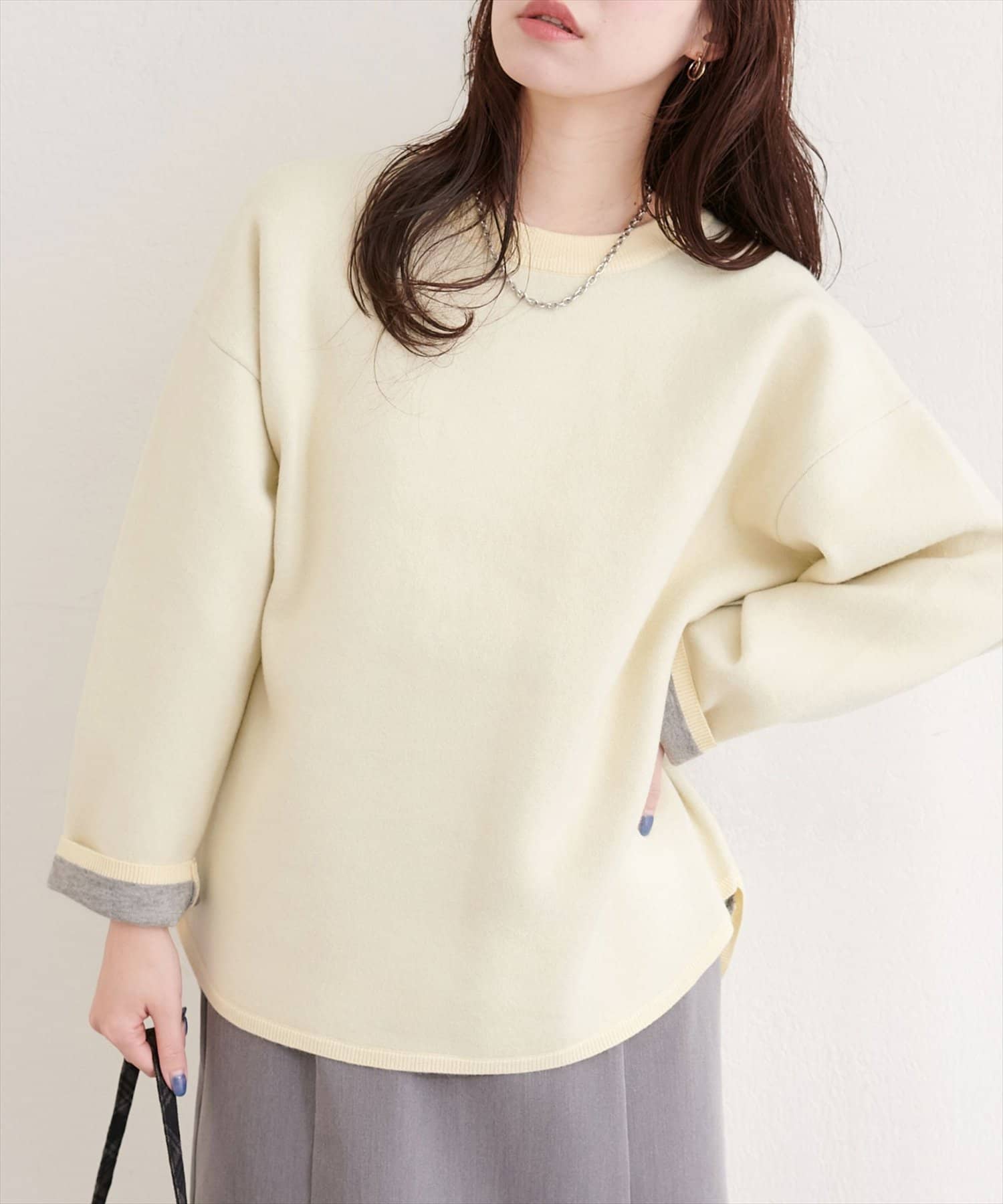 裾口のラウンドカットが、シンプルな中にフェミニンな印象をプラス。