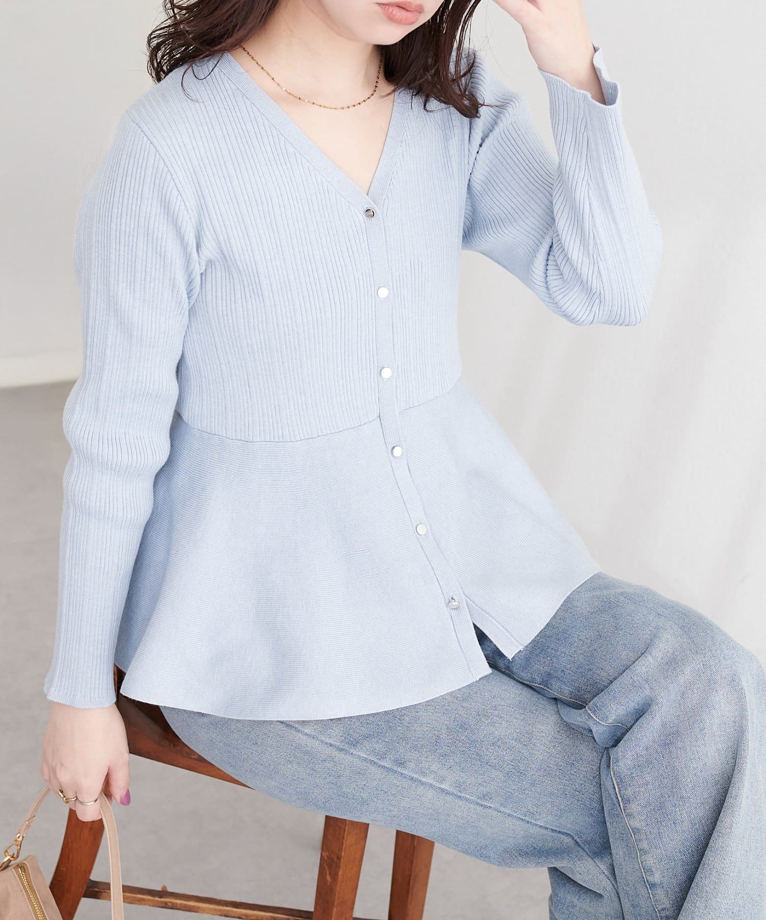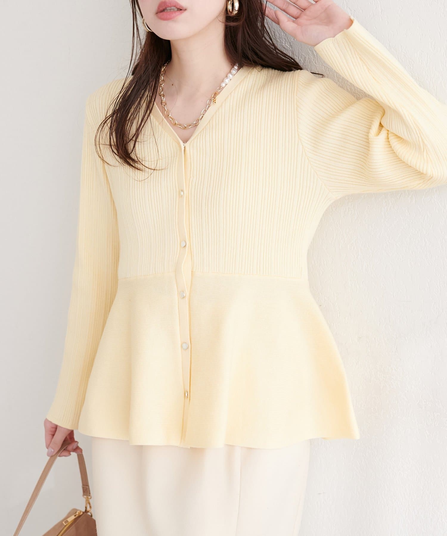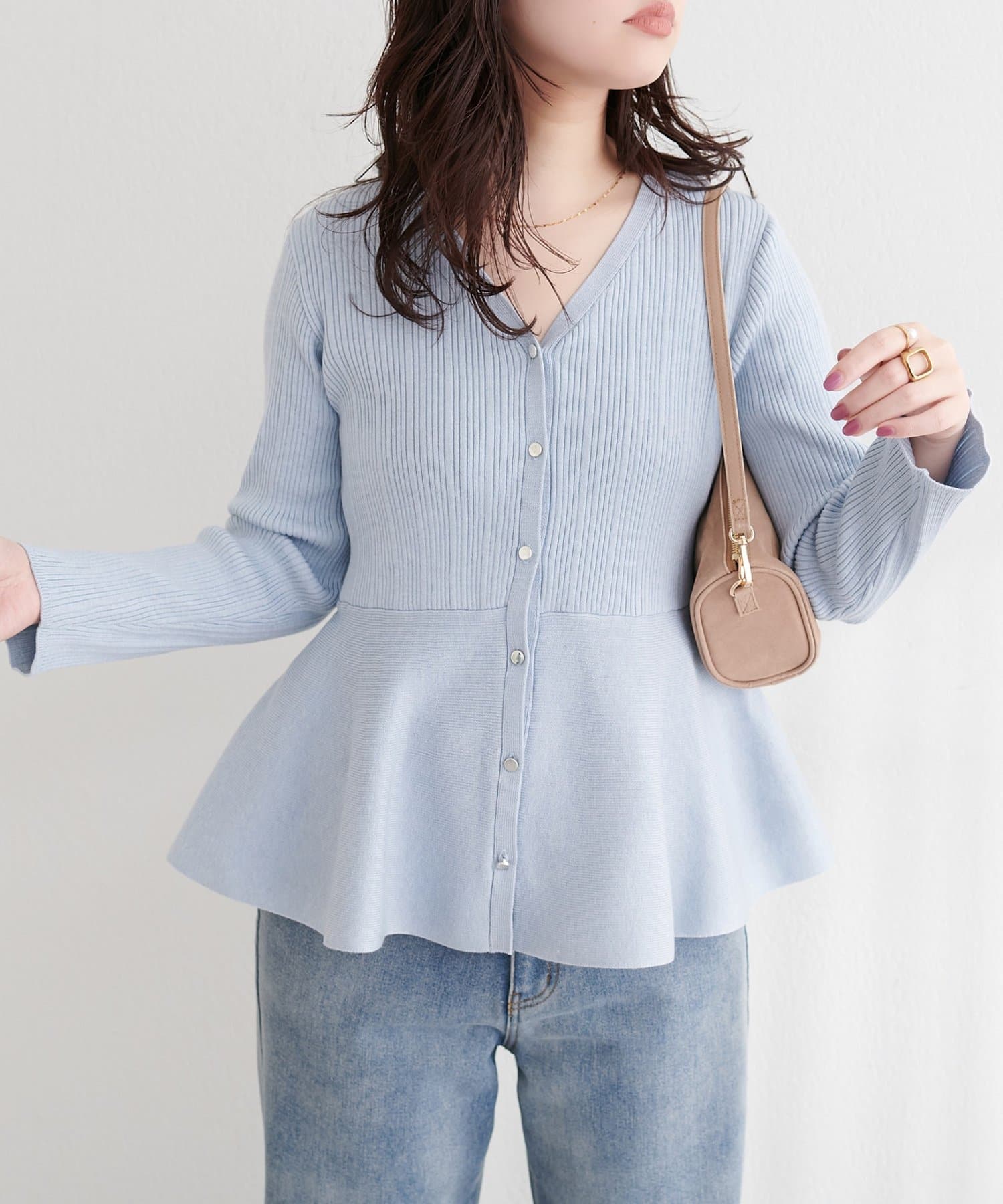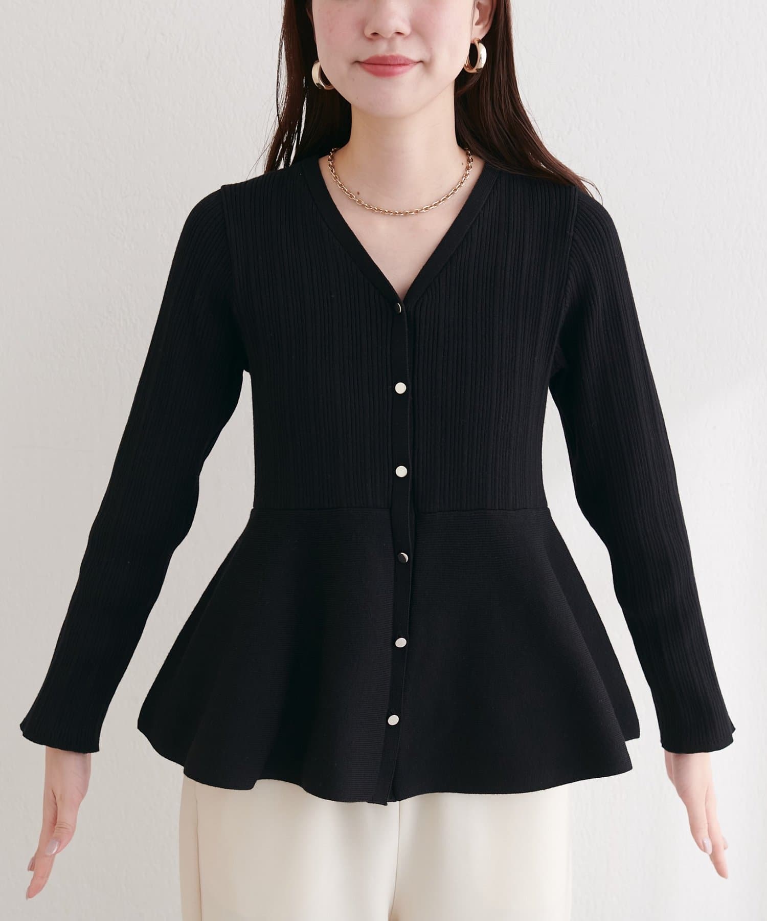 ランダムリブVネックペプラムカーディガン