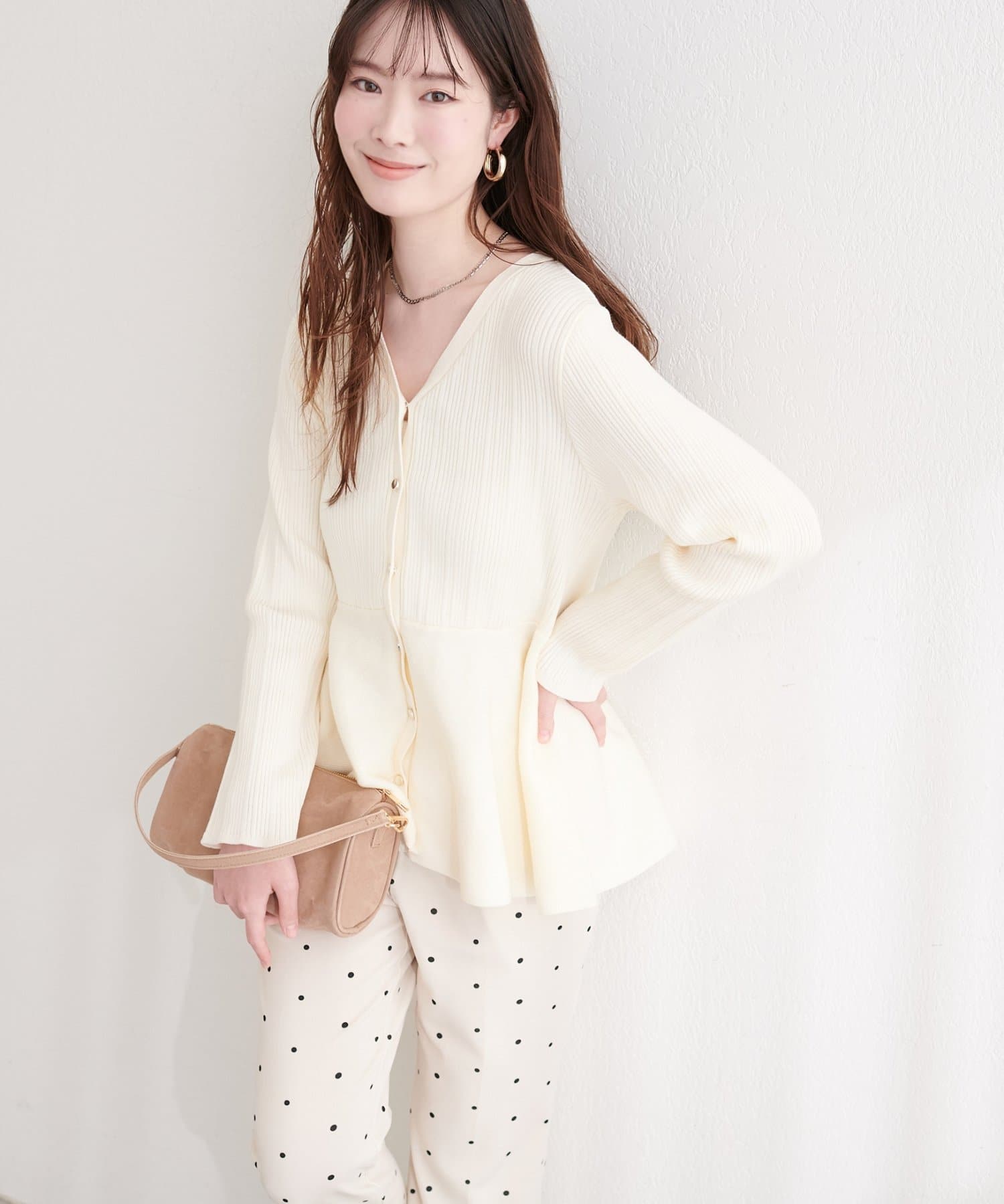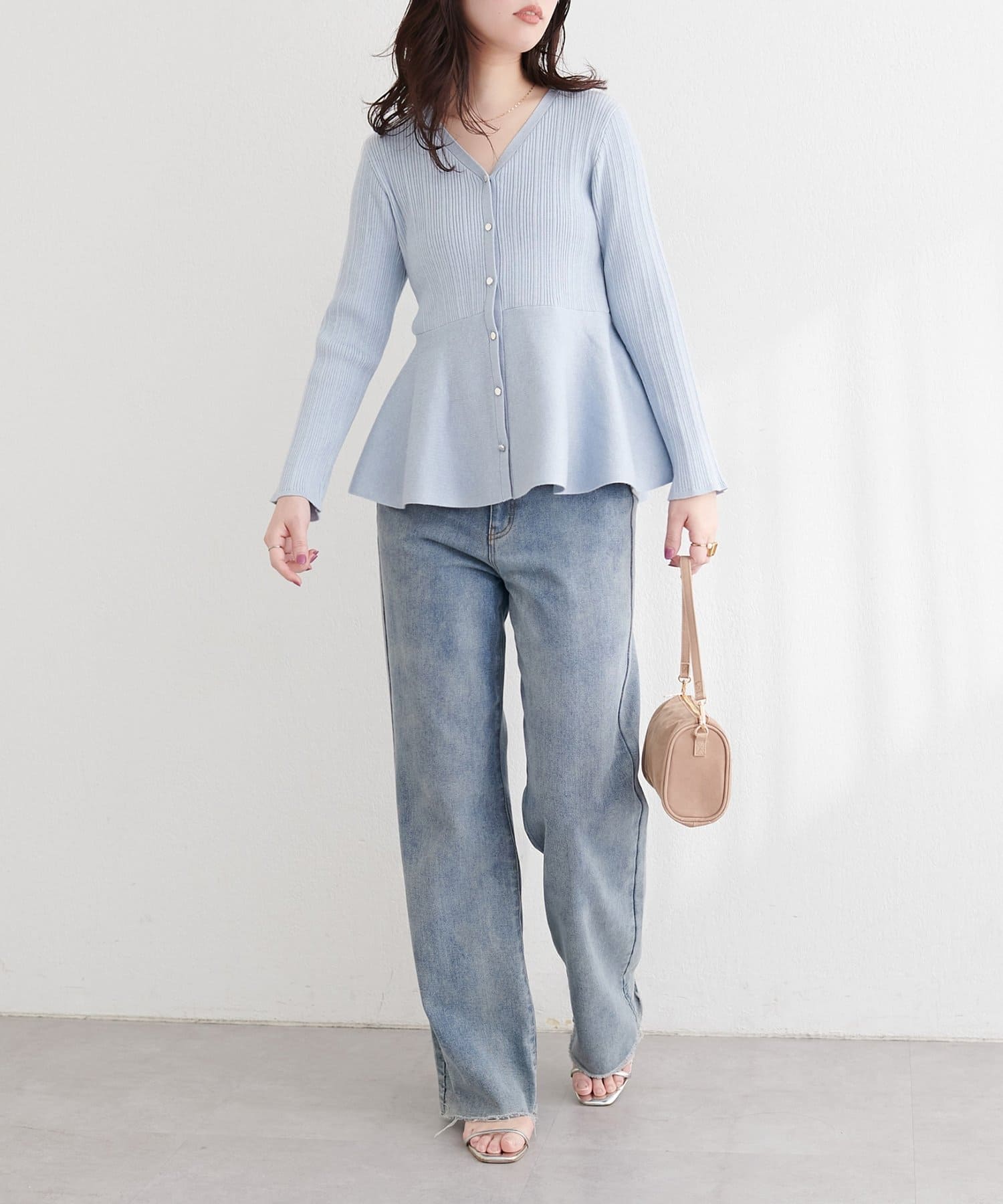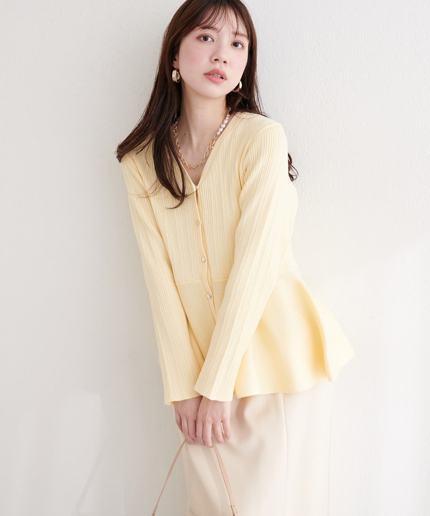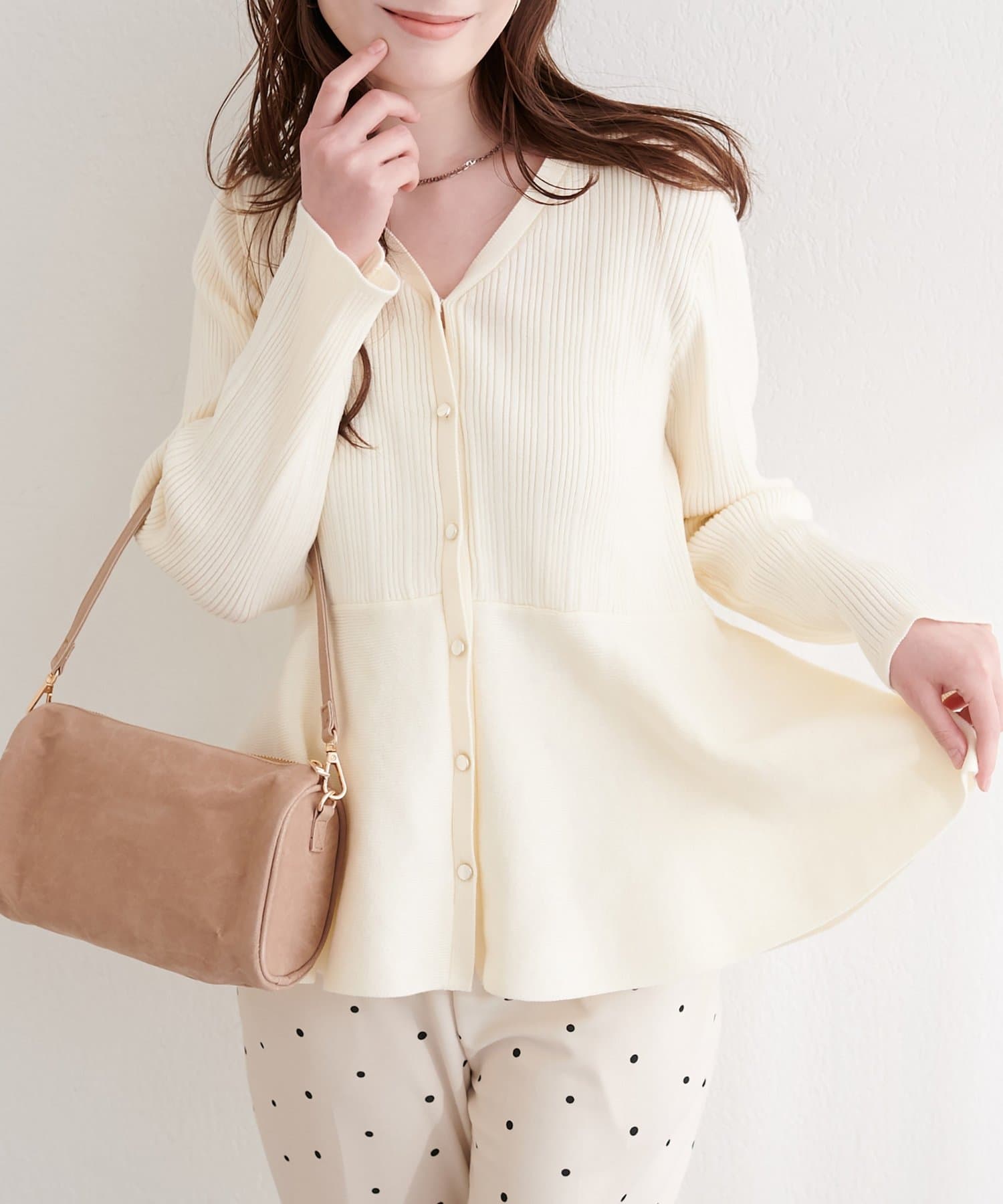 ランダムリブVネックペプラムカーディガン