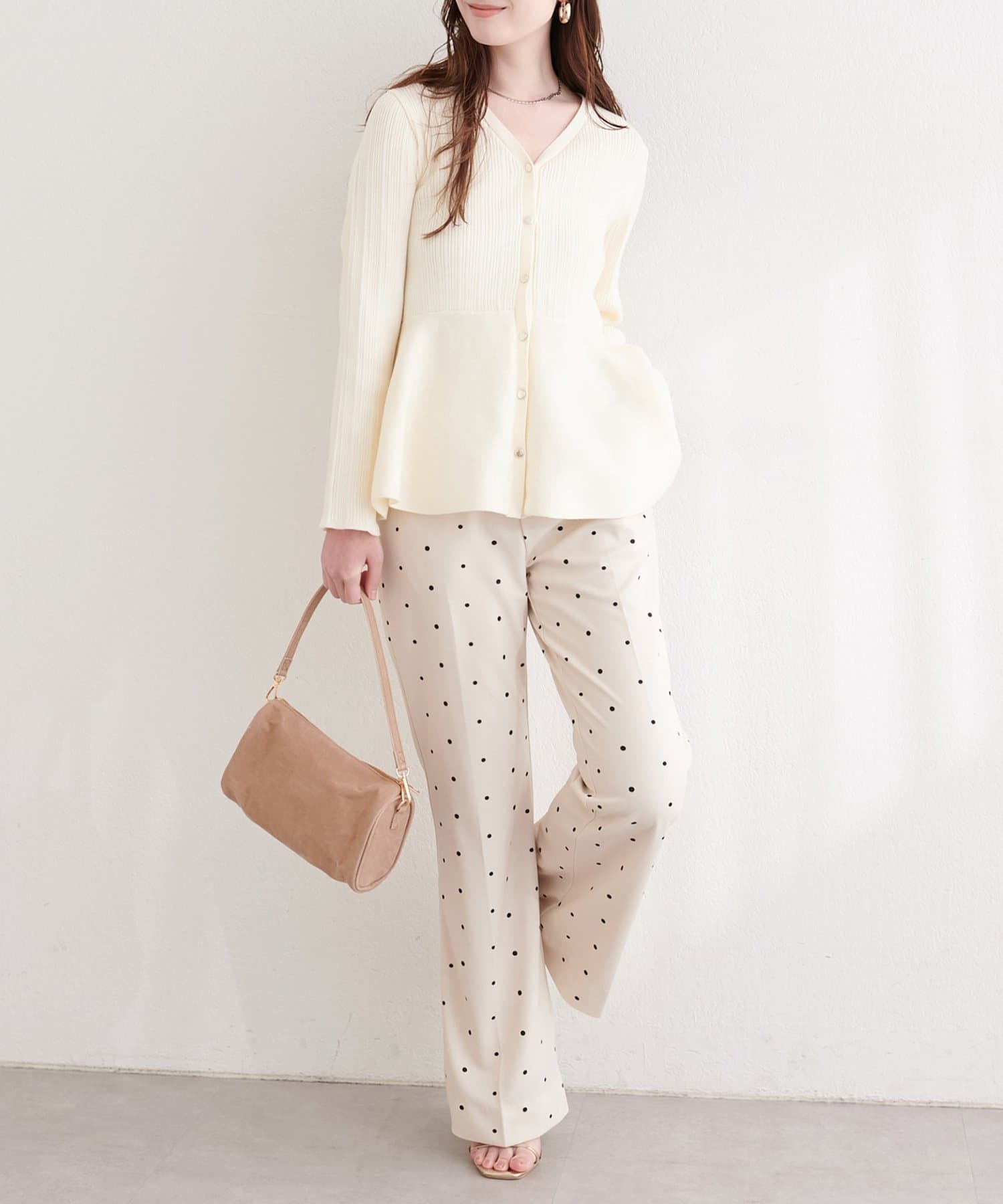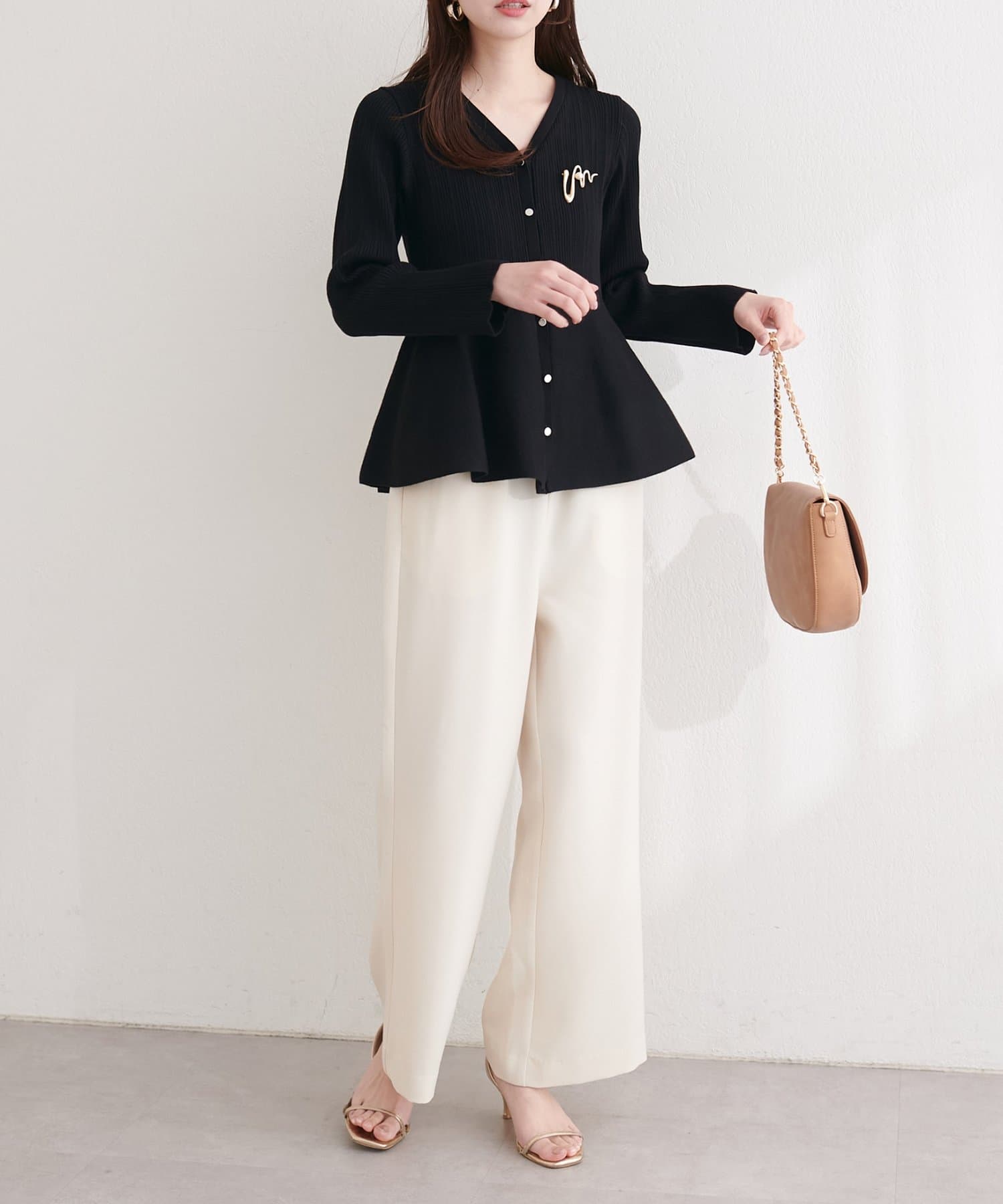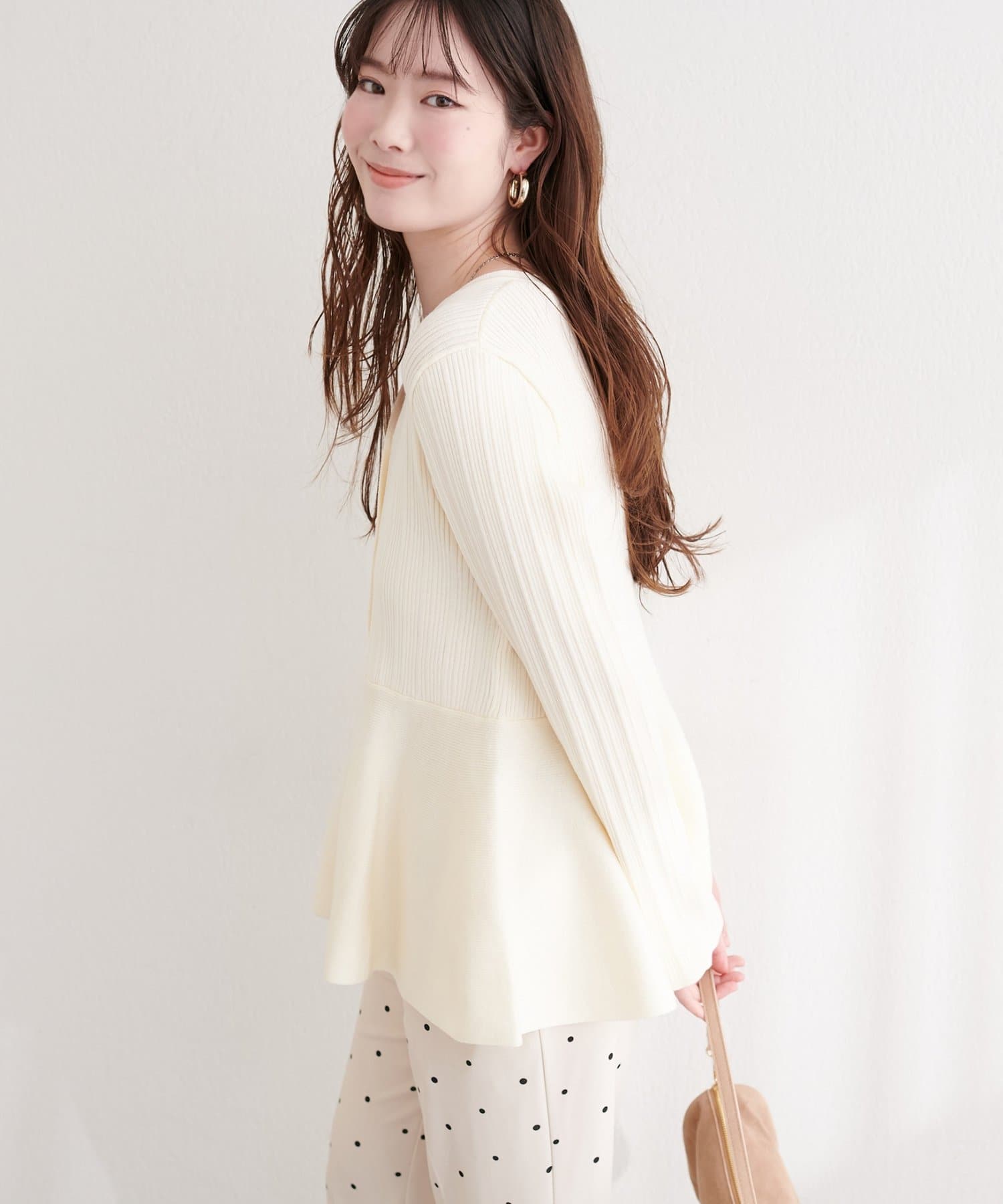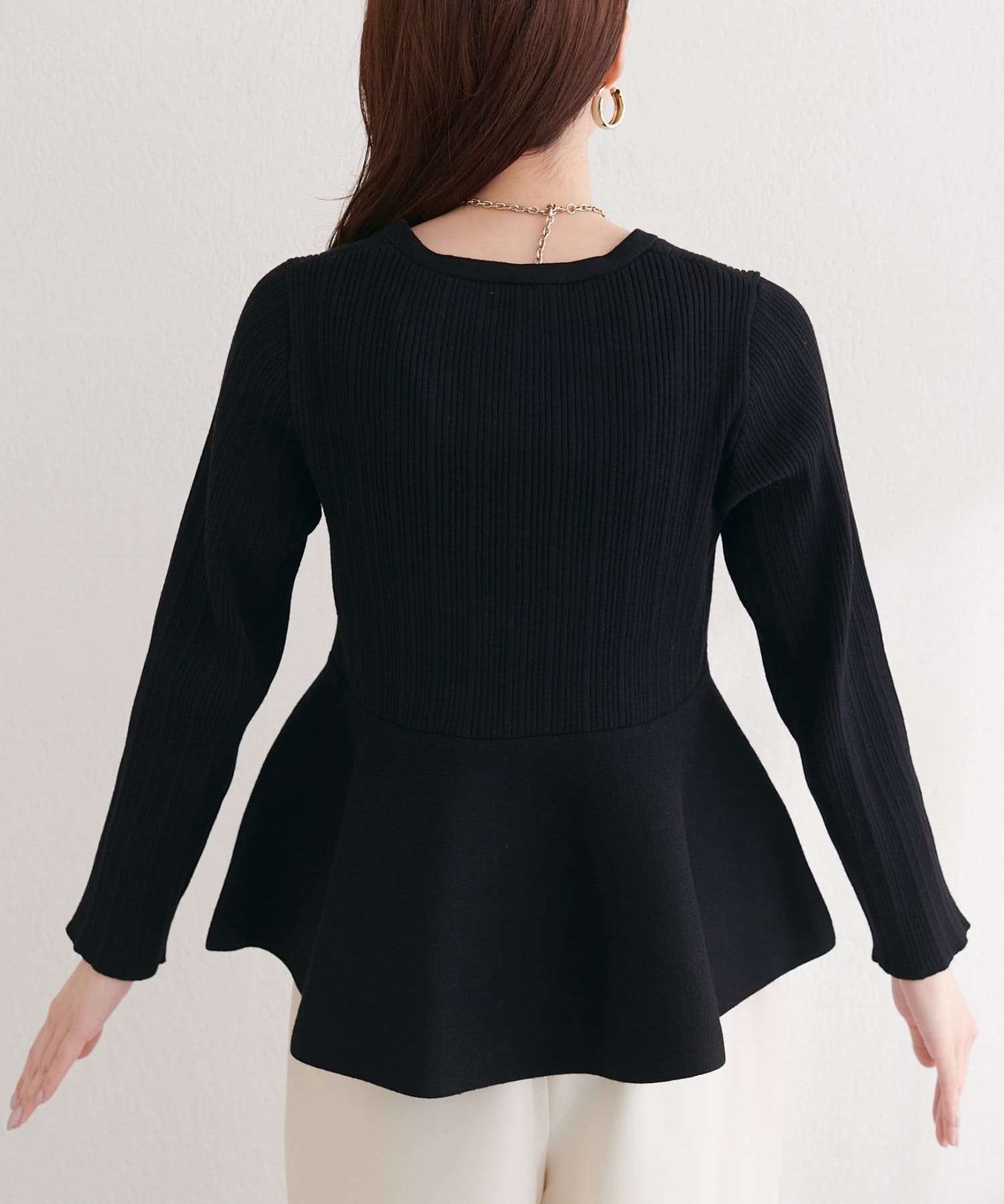 裾に向かってふんわりと広がるペプラムデザインが、女性らしい可愛らしさをプラス。