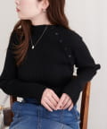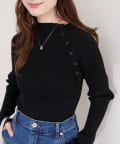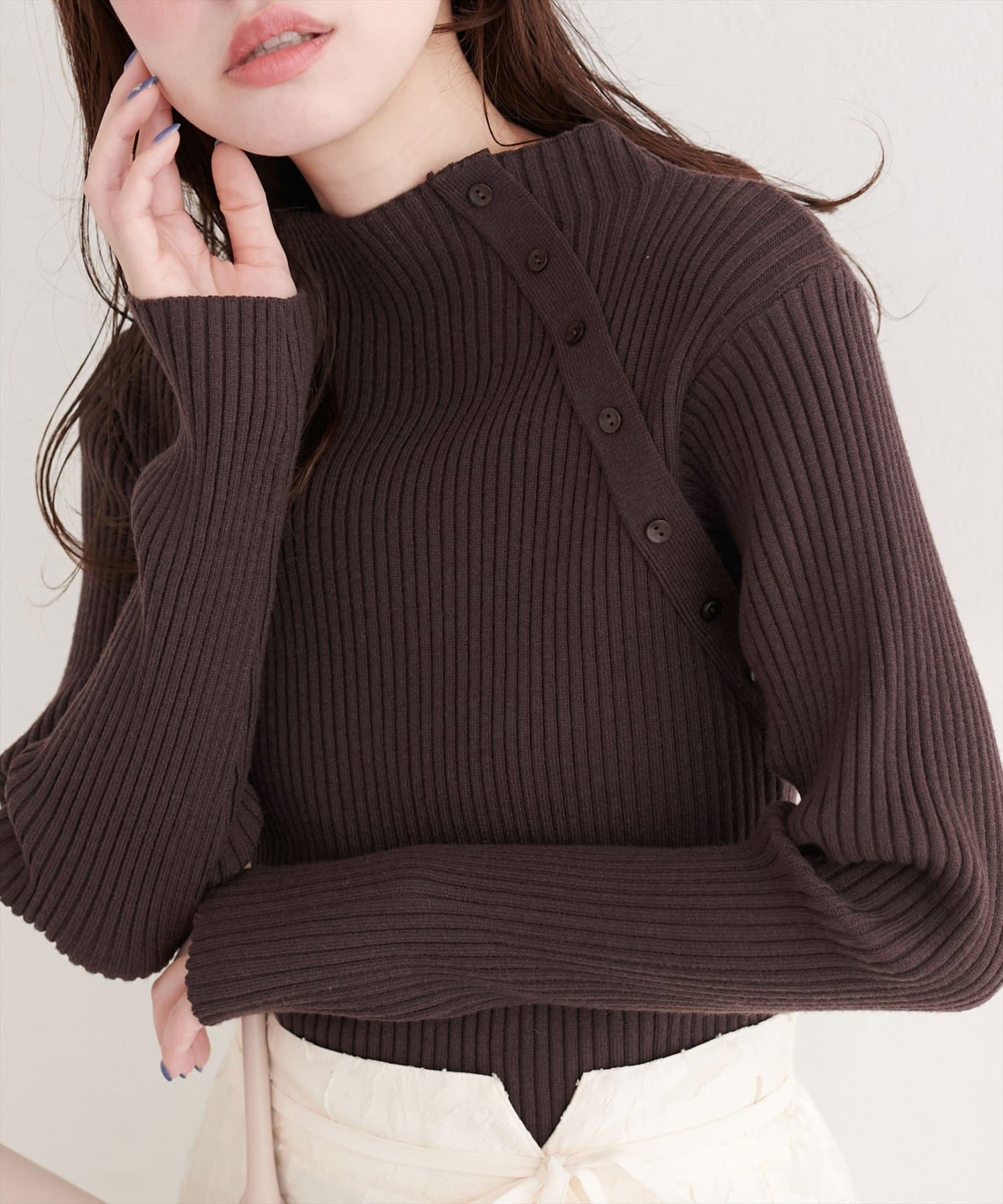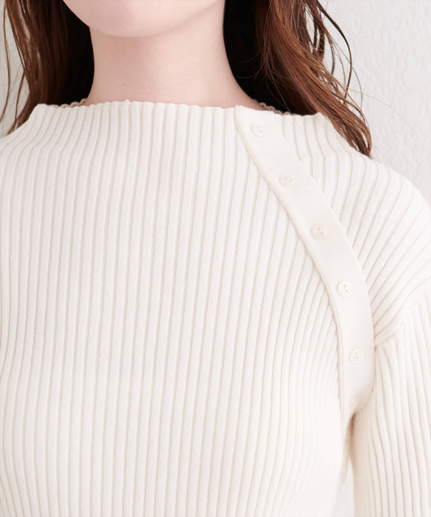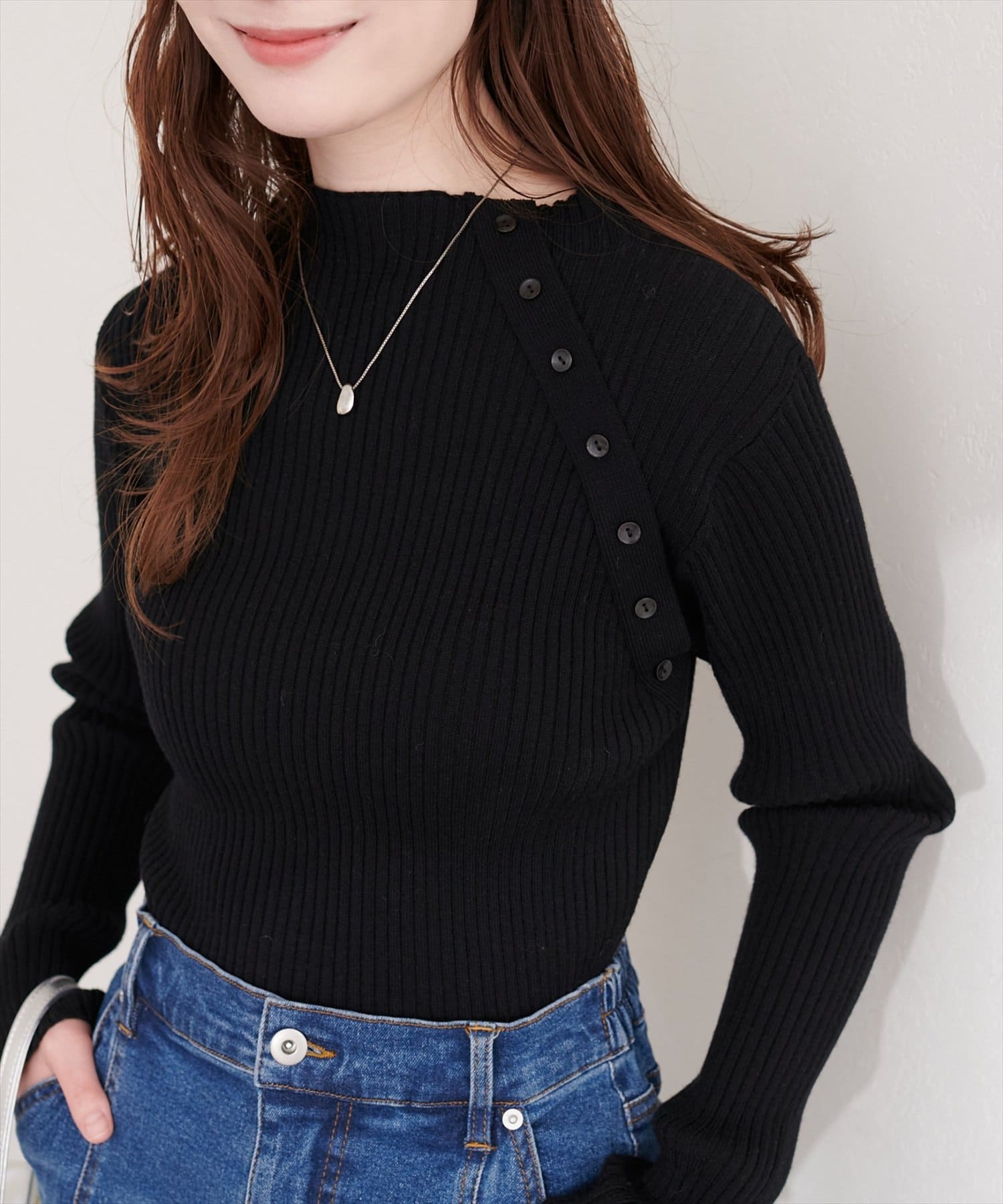 斜めにあしらわれたボタンデザインが特徴的なリブニット。