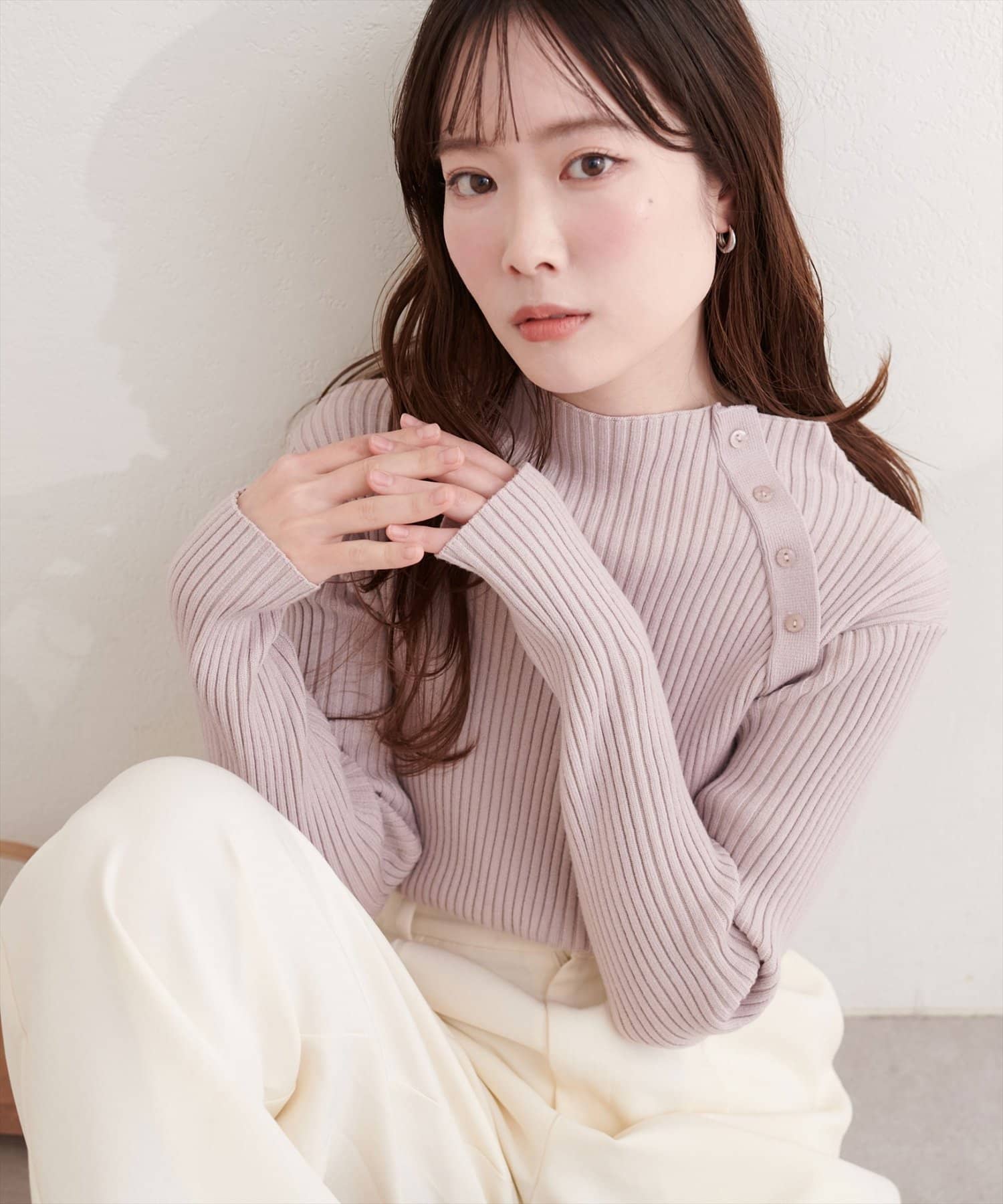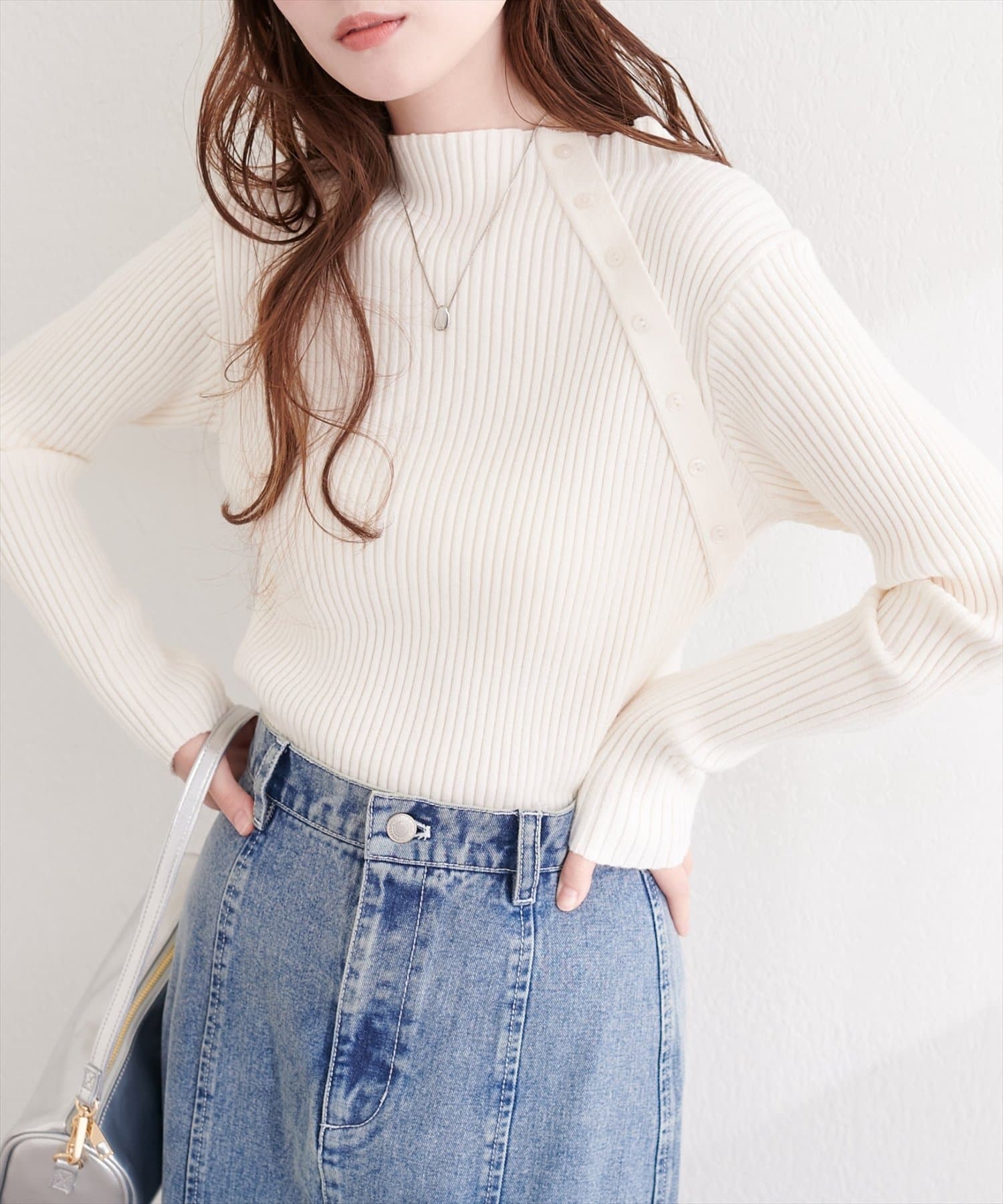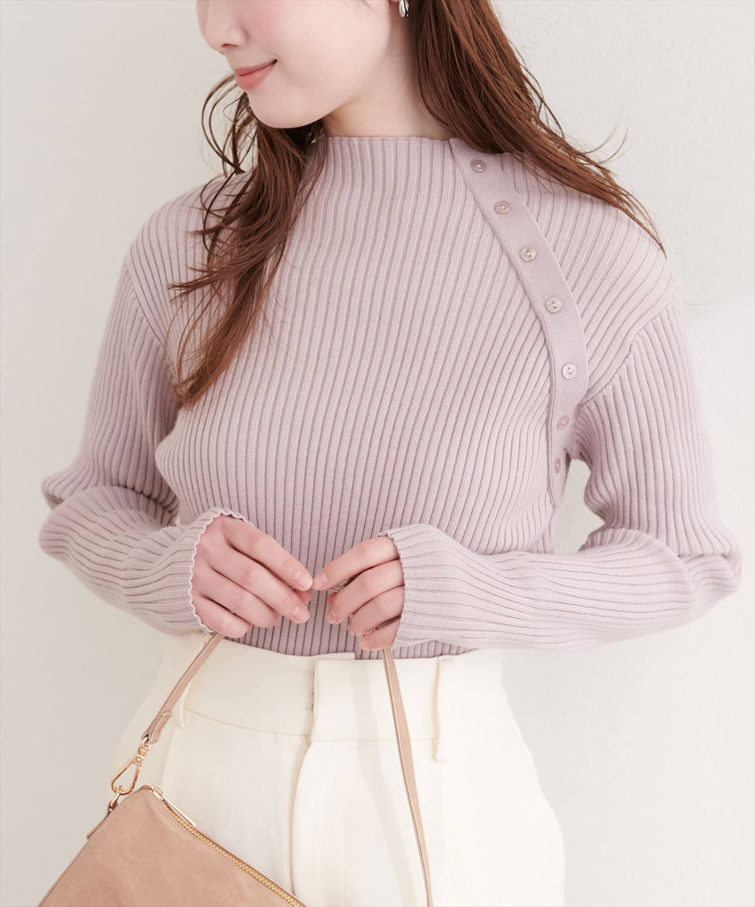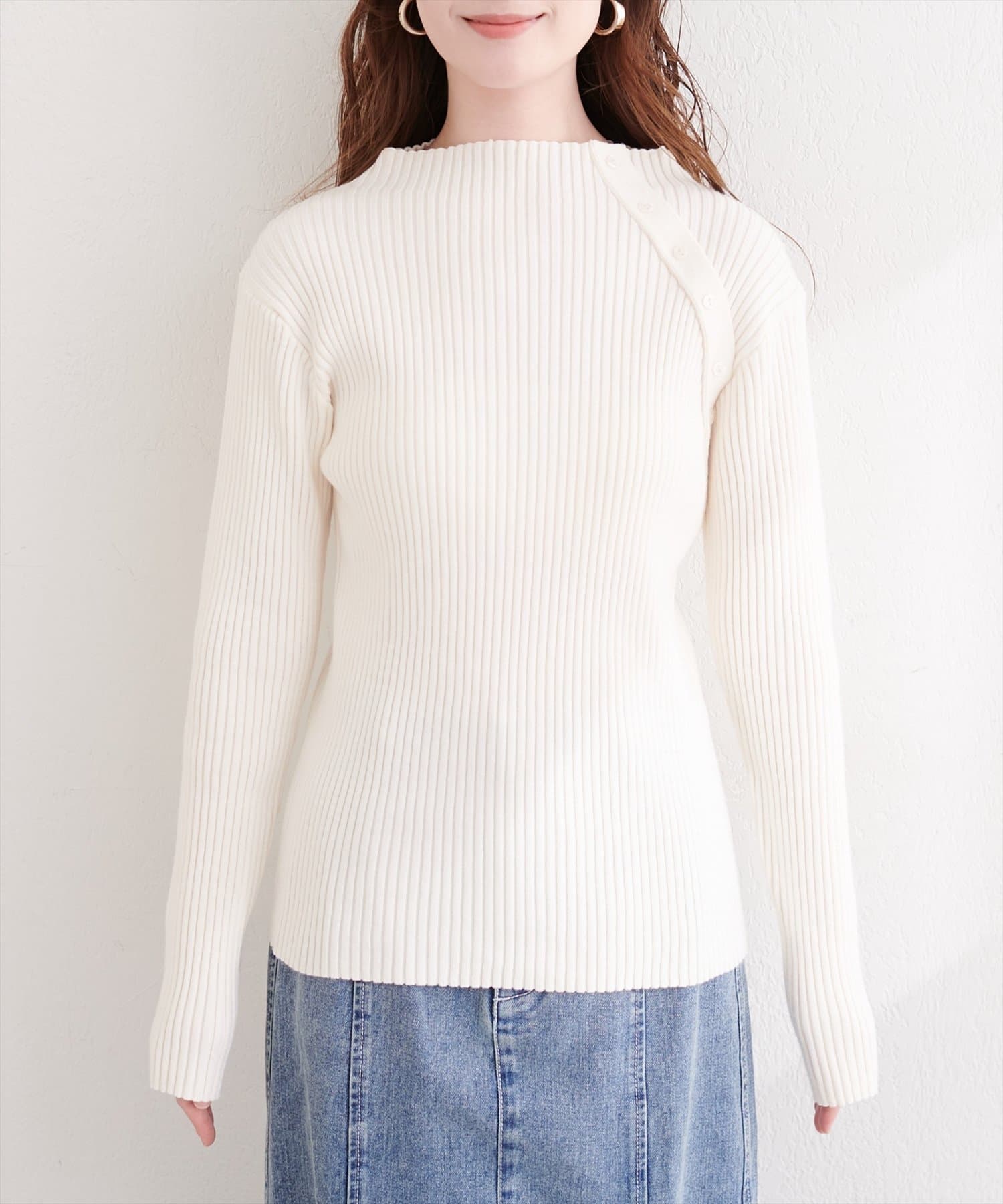 • natural couture(ナチュラルクチュール) 斜めボタンプチハイリブニット