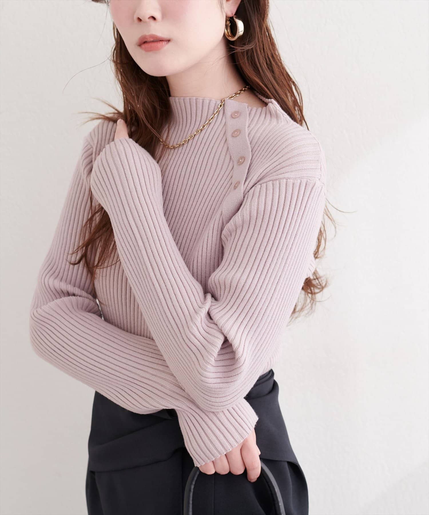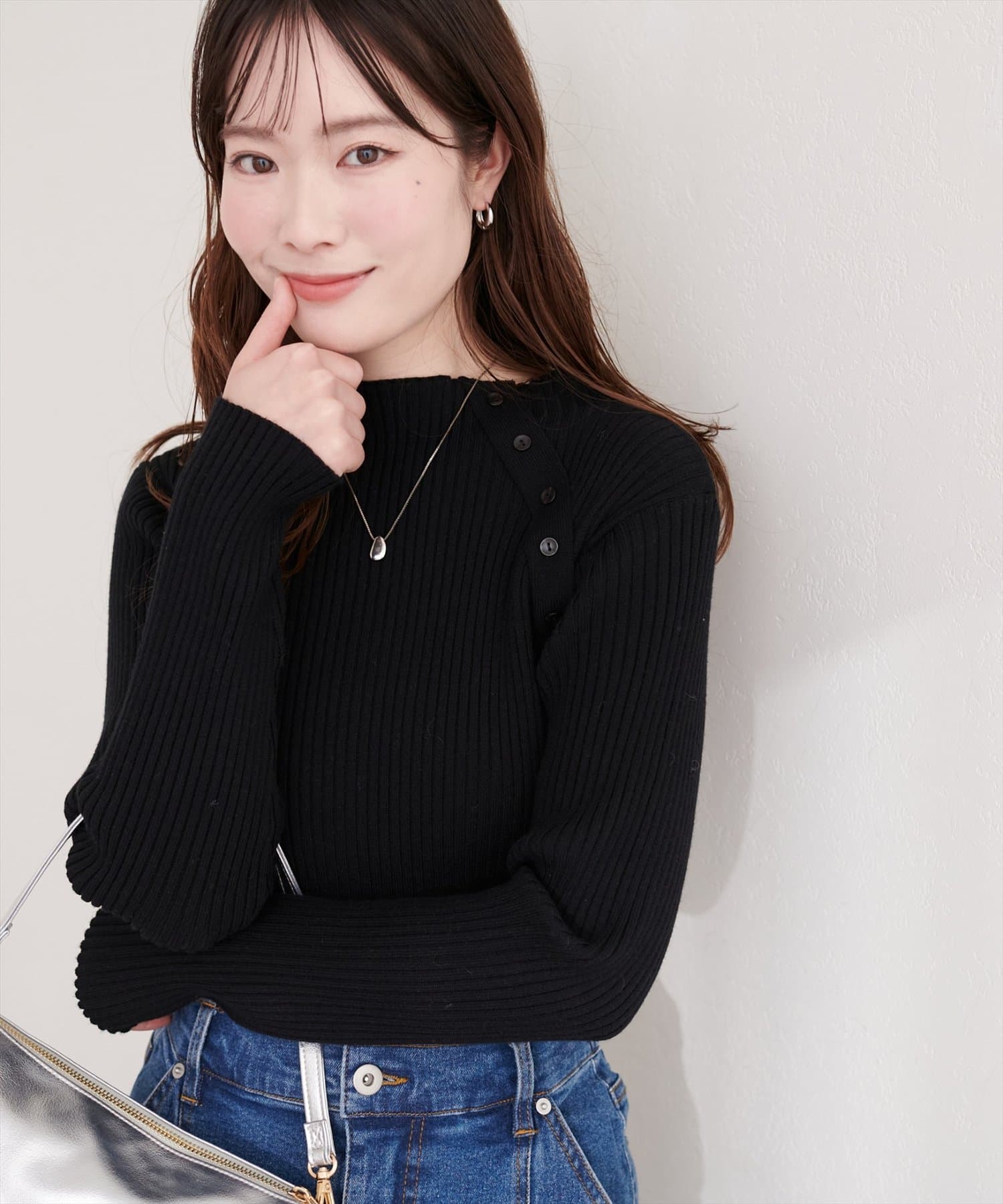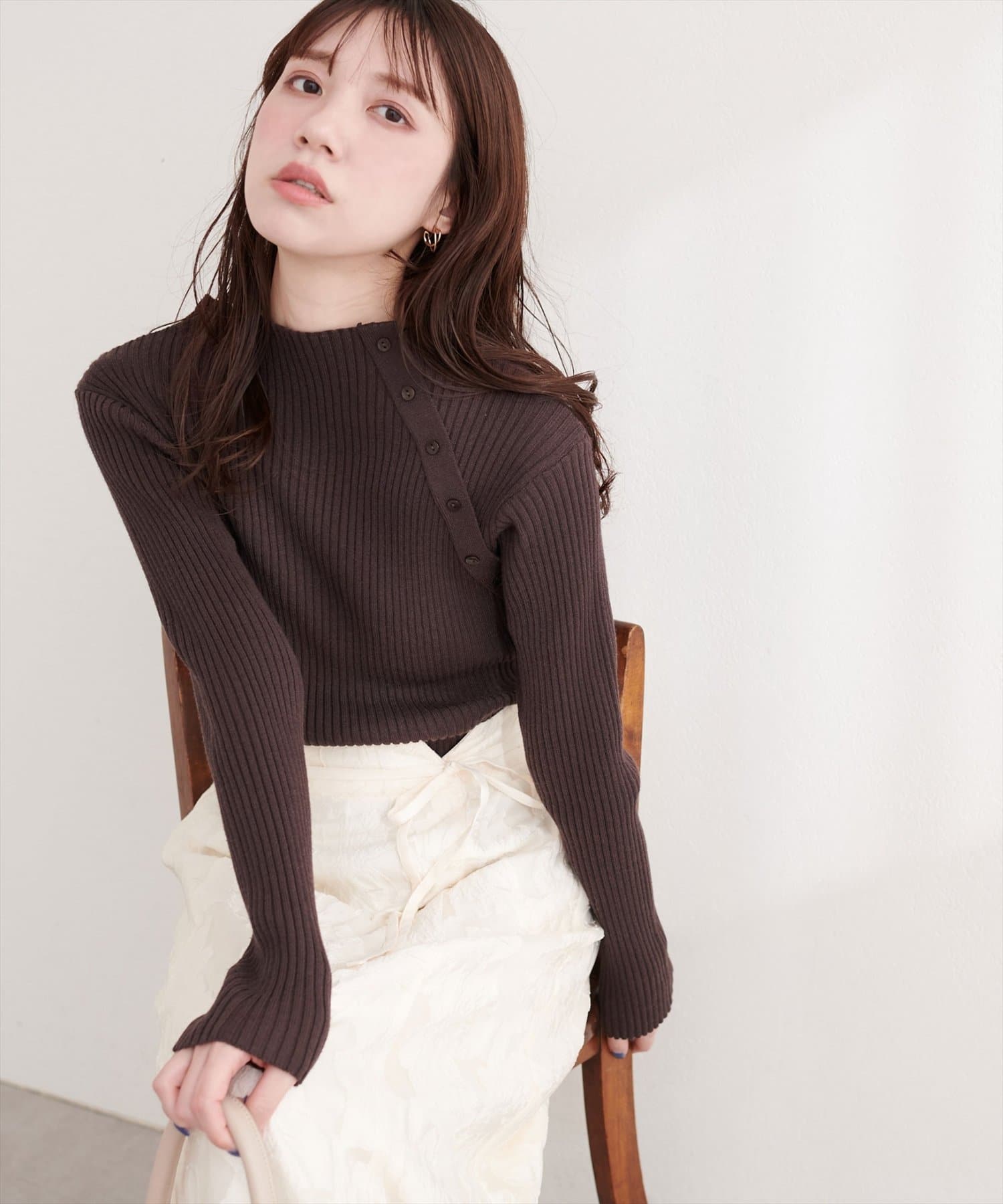 • natural couture(ナチュラルクチュール) 斜めボタンプチハイリブニット