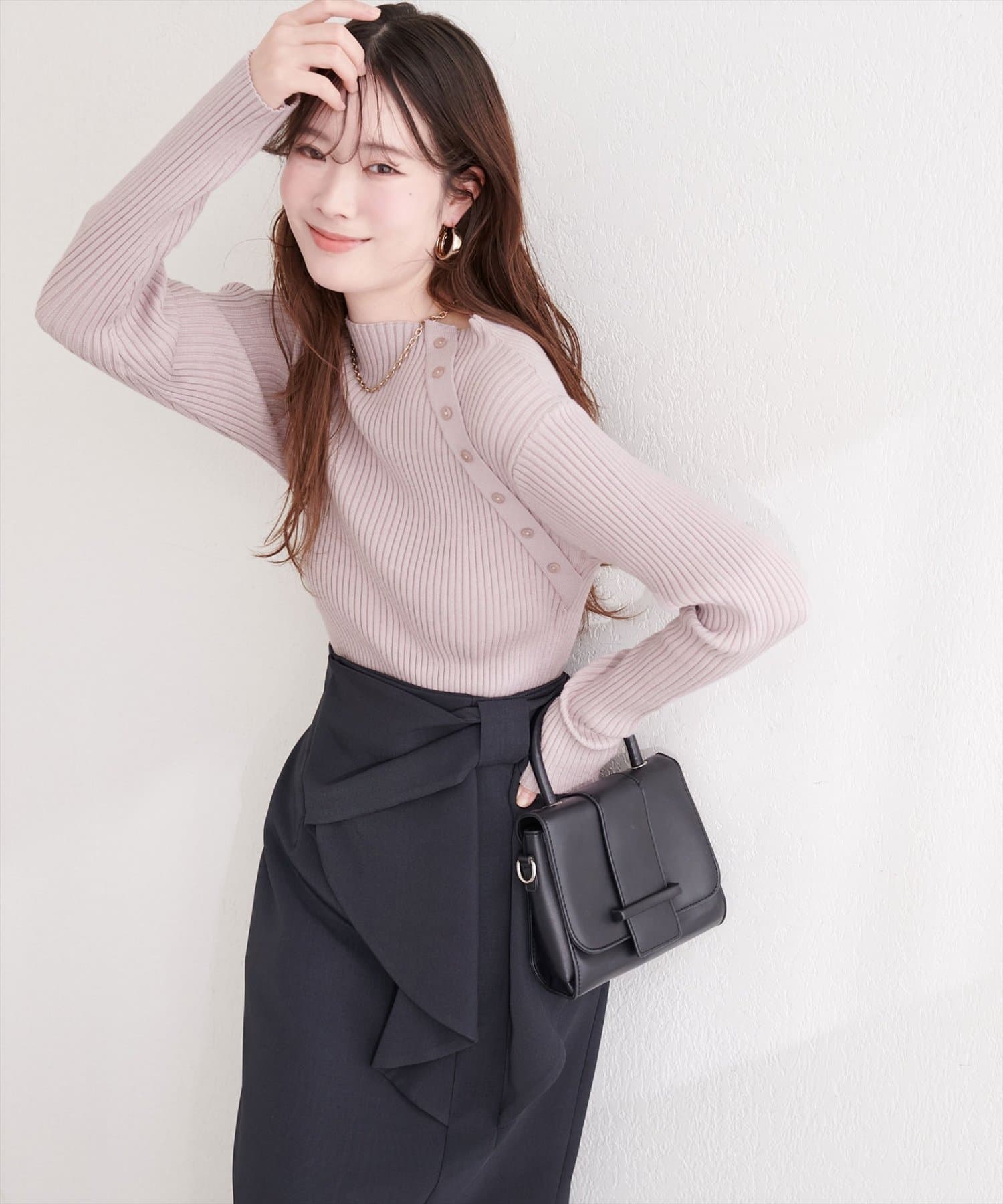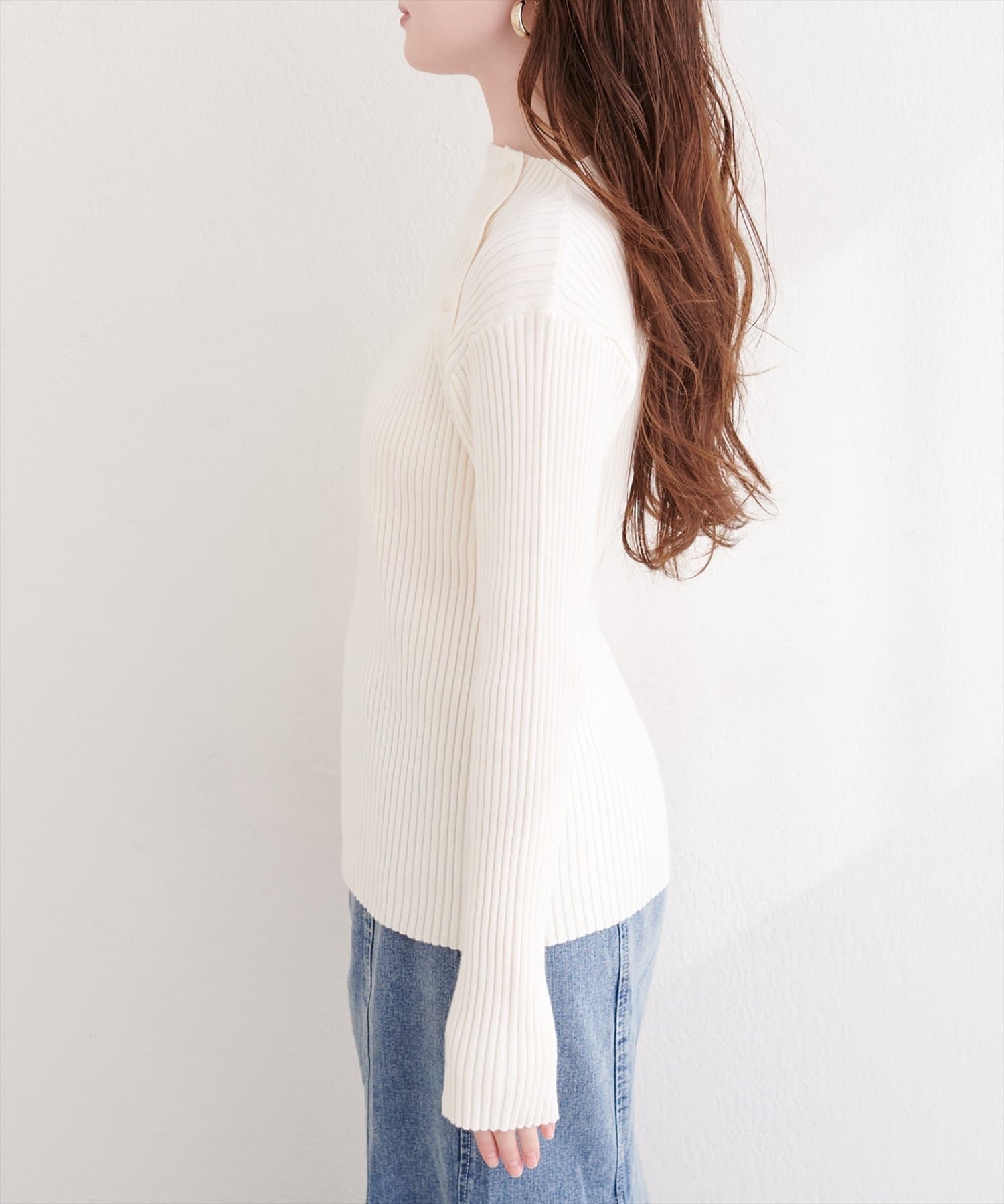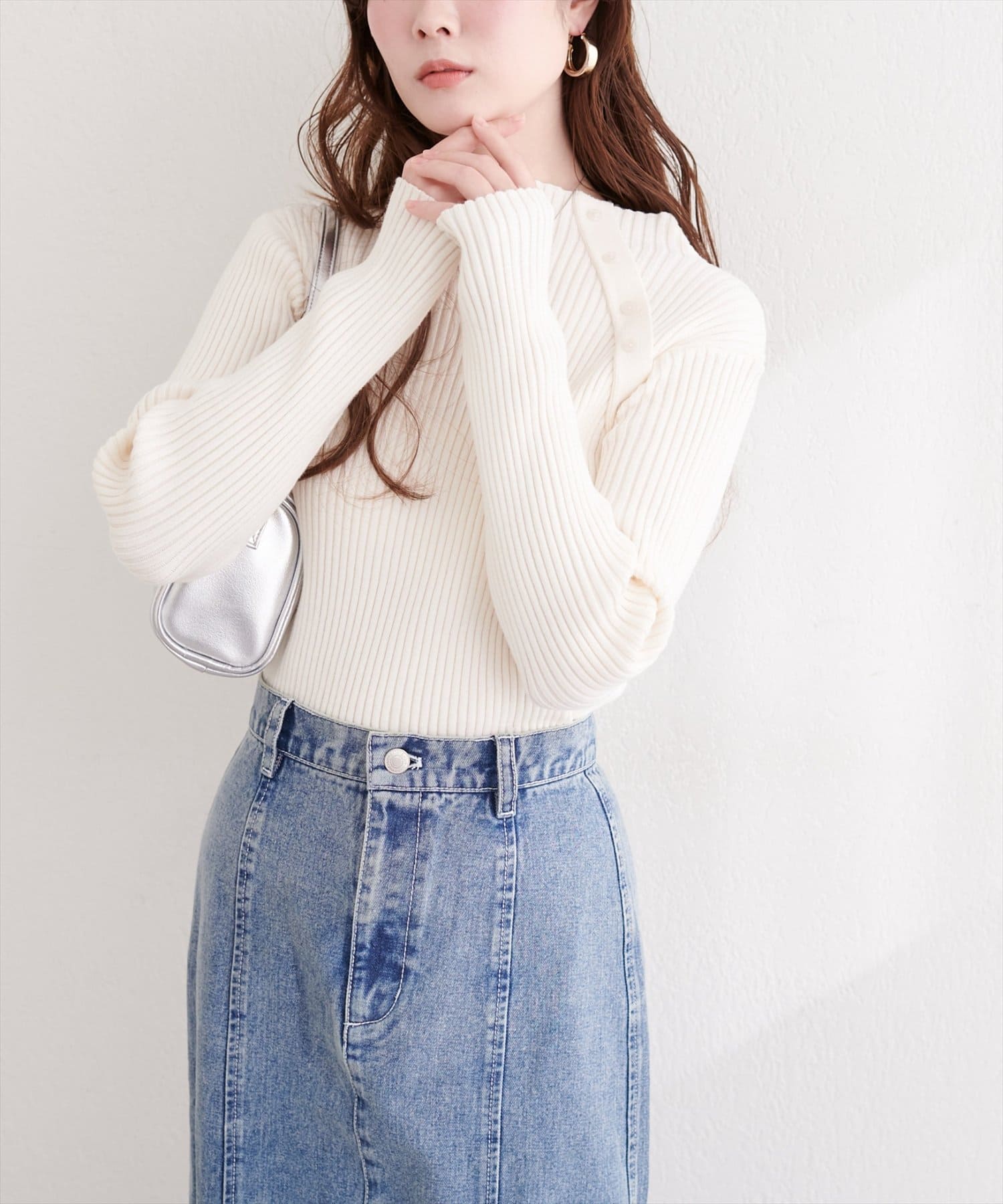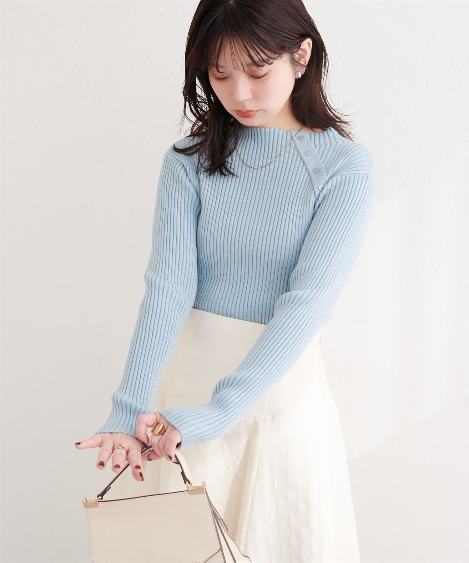 • natural couture(ナチュラルクチュール) 斜めボタンプチハイリブニット