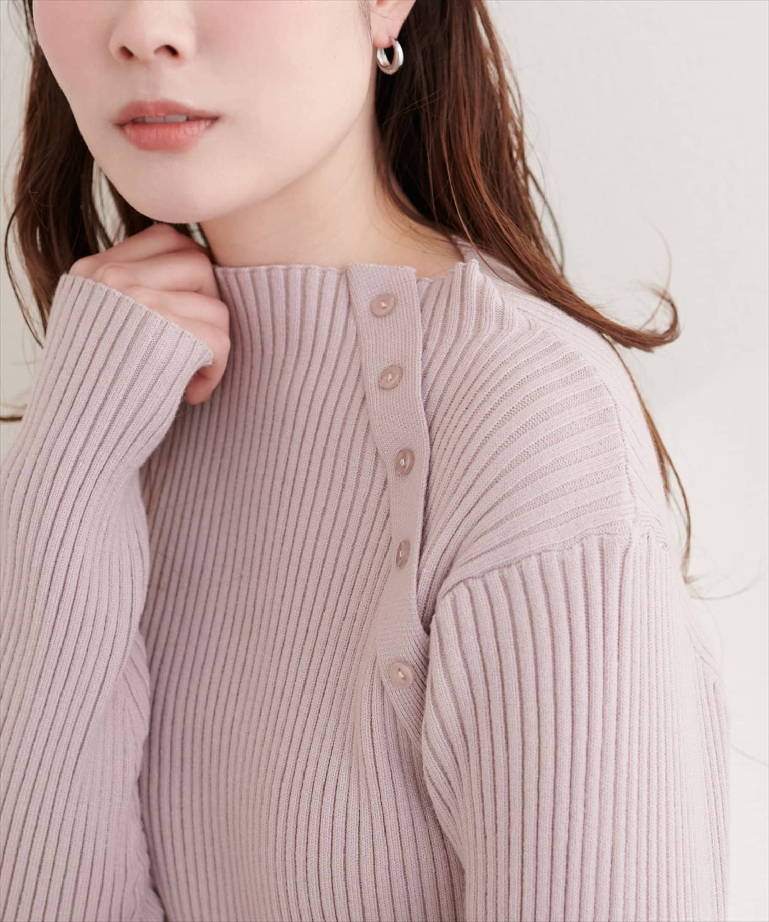 natural couture(ナチュラルクチュール) 斜めボタンプチハイリブニット