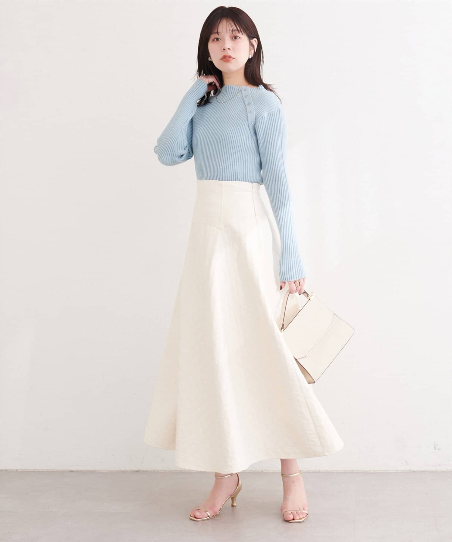 フレアスカートやプリーツスカートと合わせて、上品で女性らしい印象に。