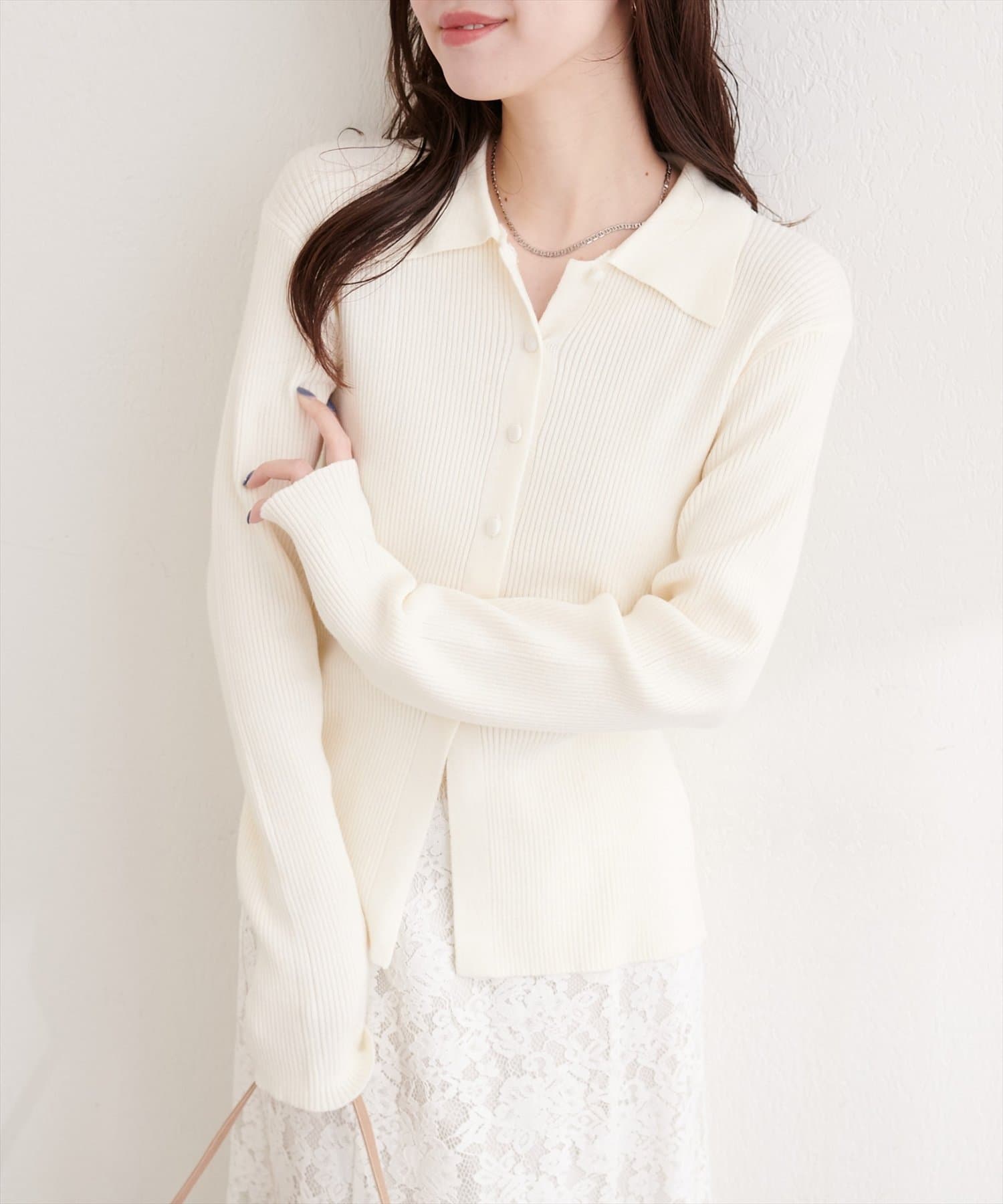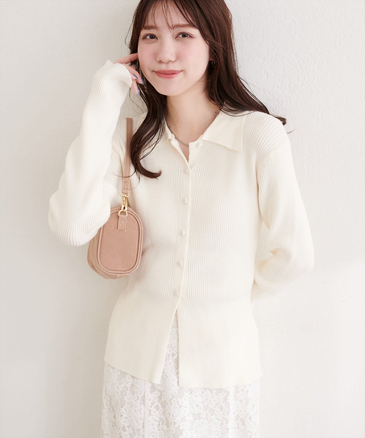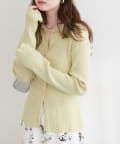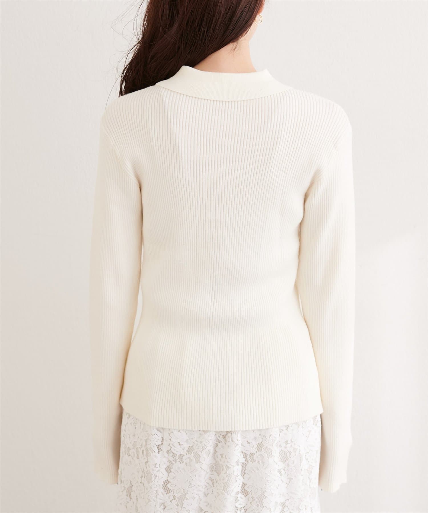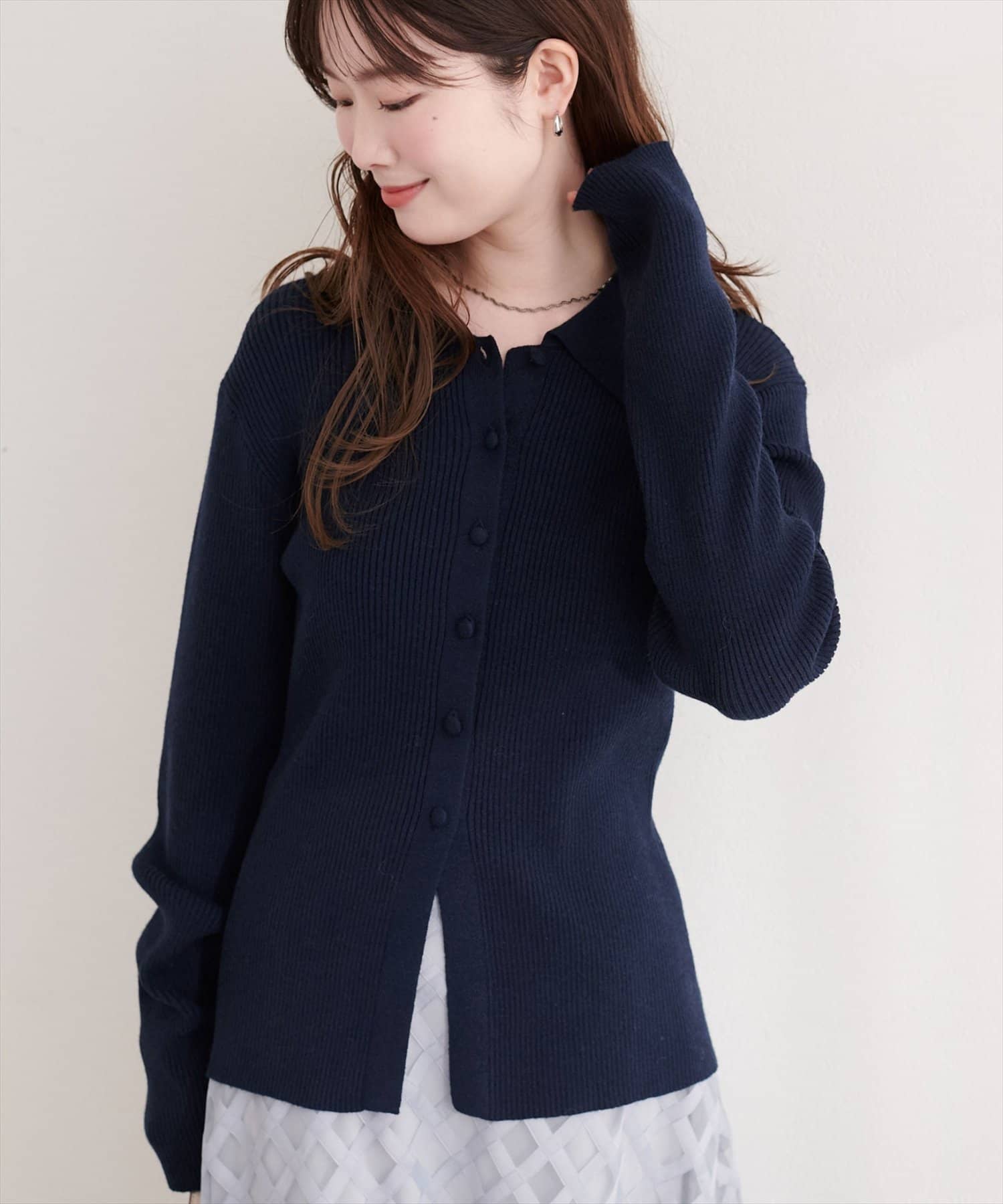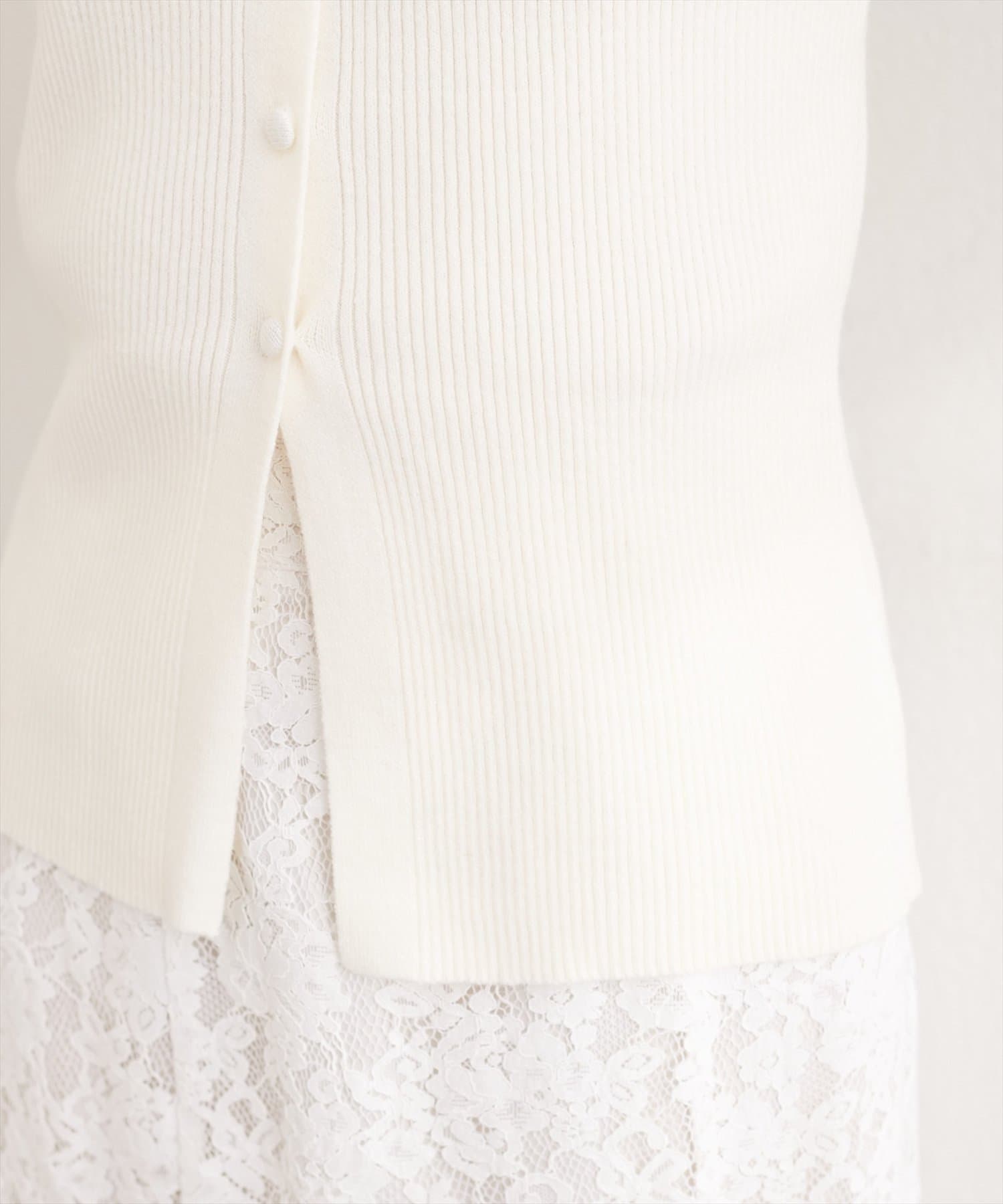 フロントにあしらわれたくるみ釦が愛らしいリブニット。