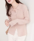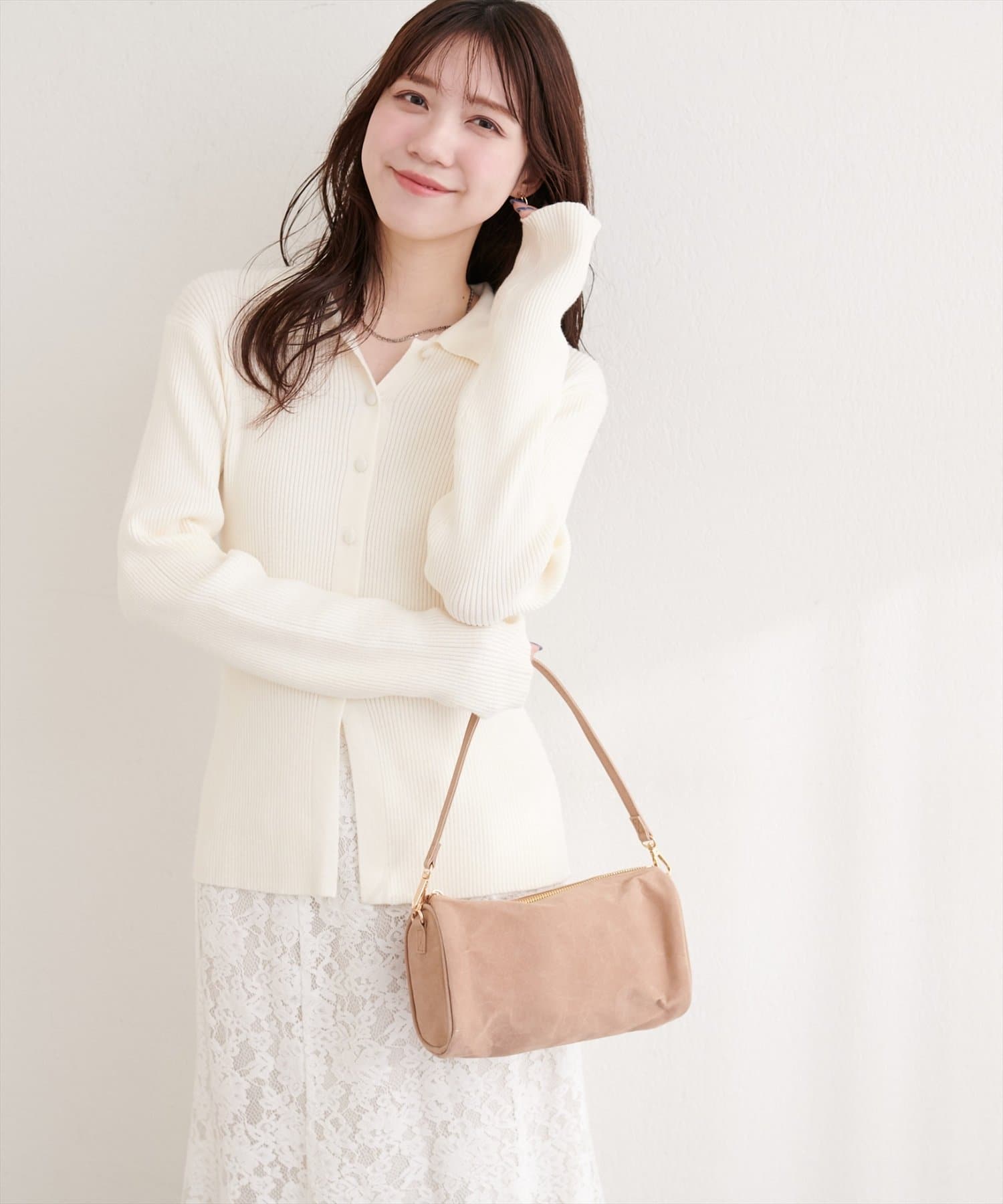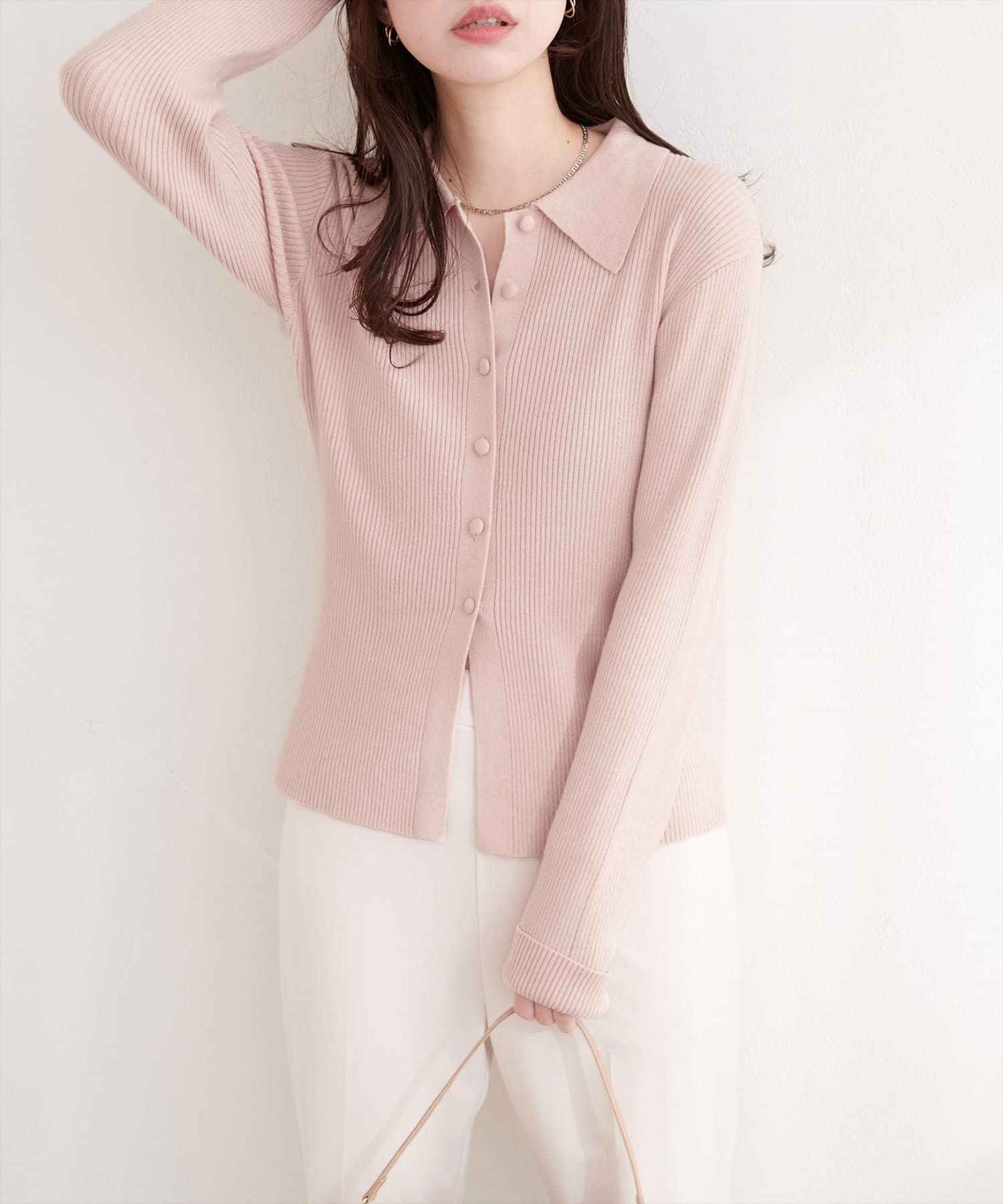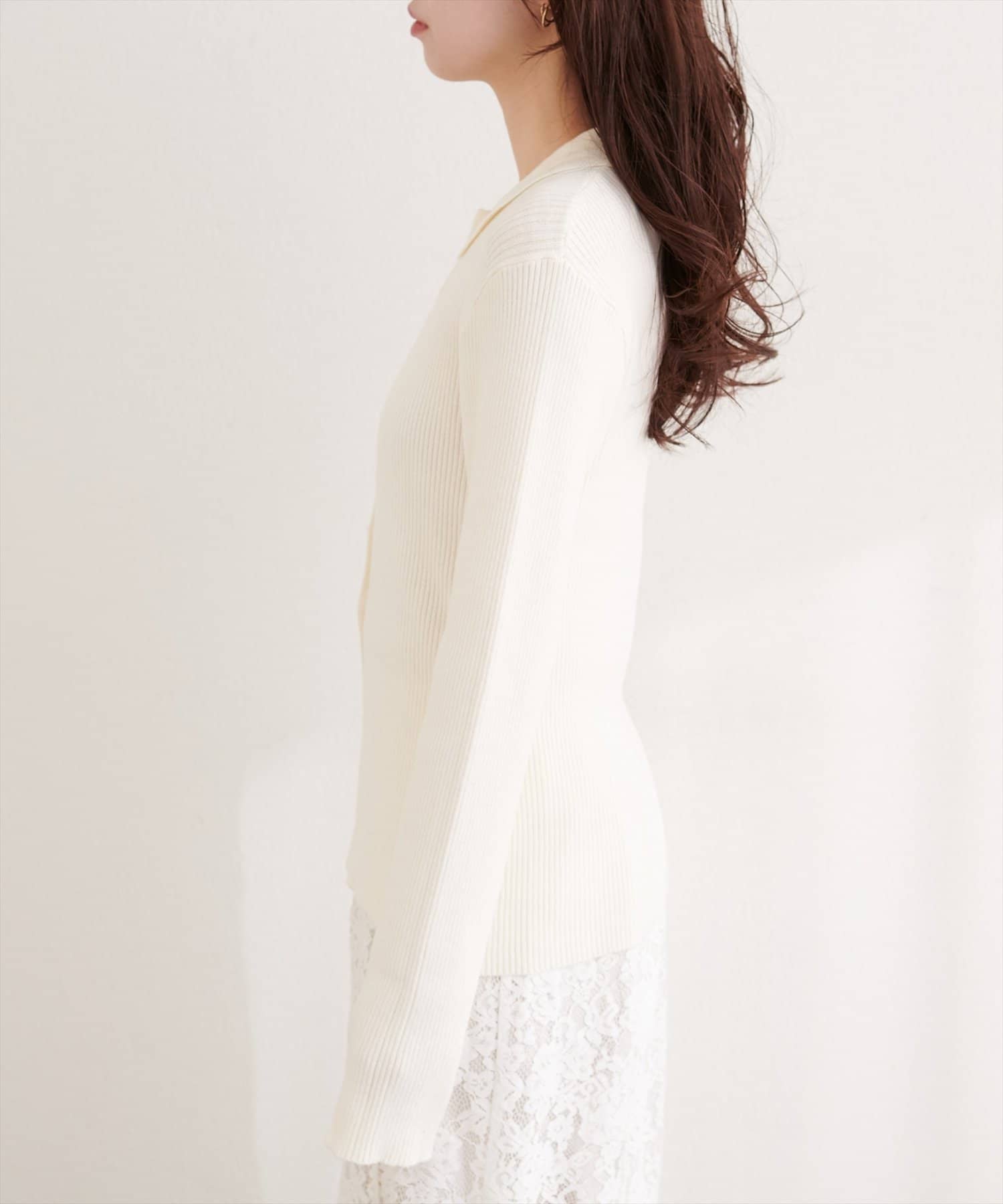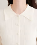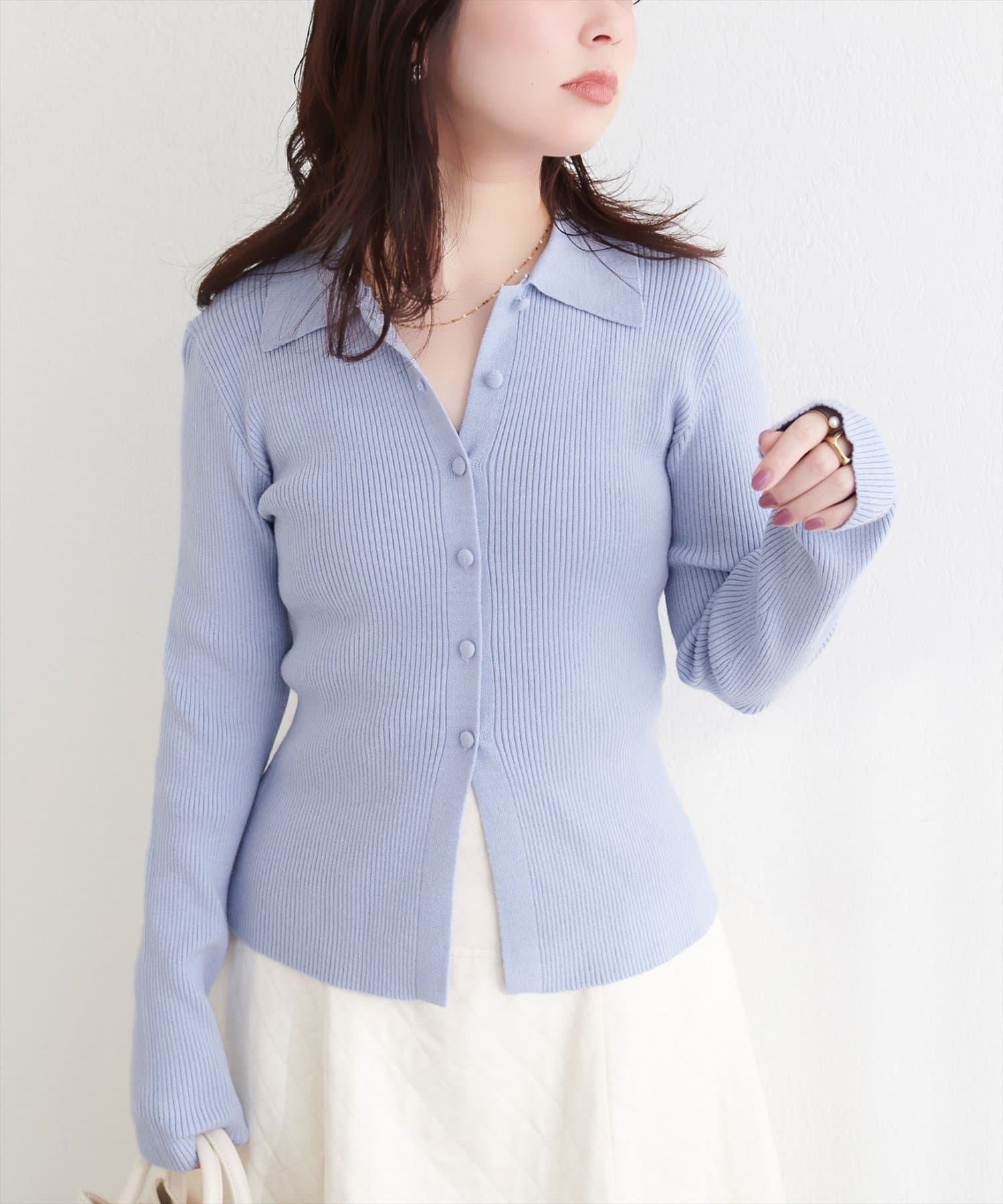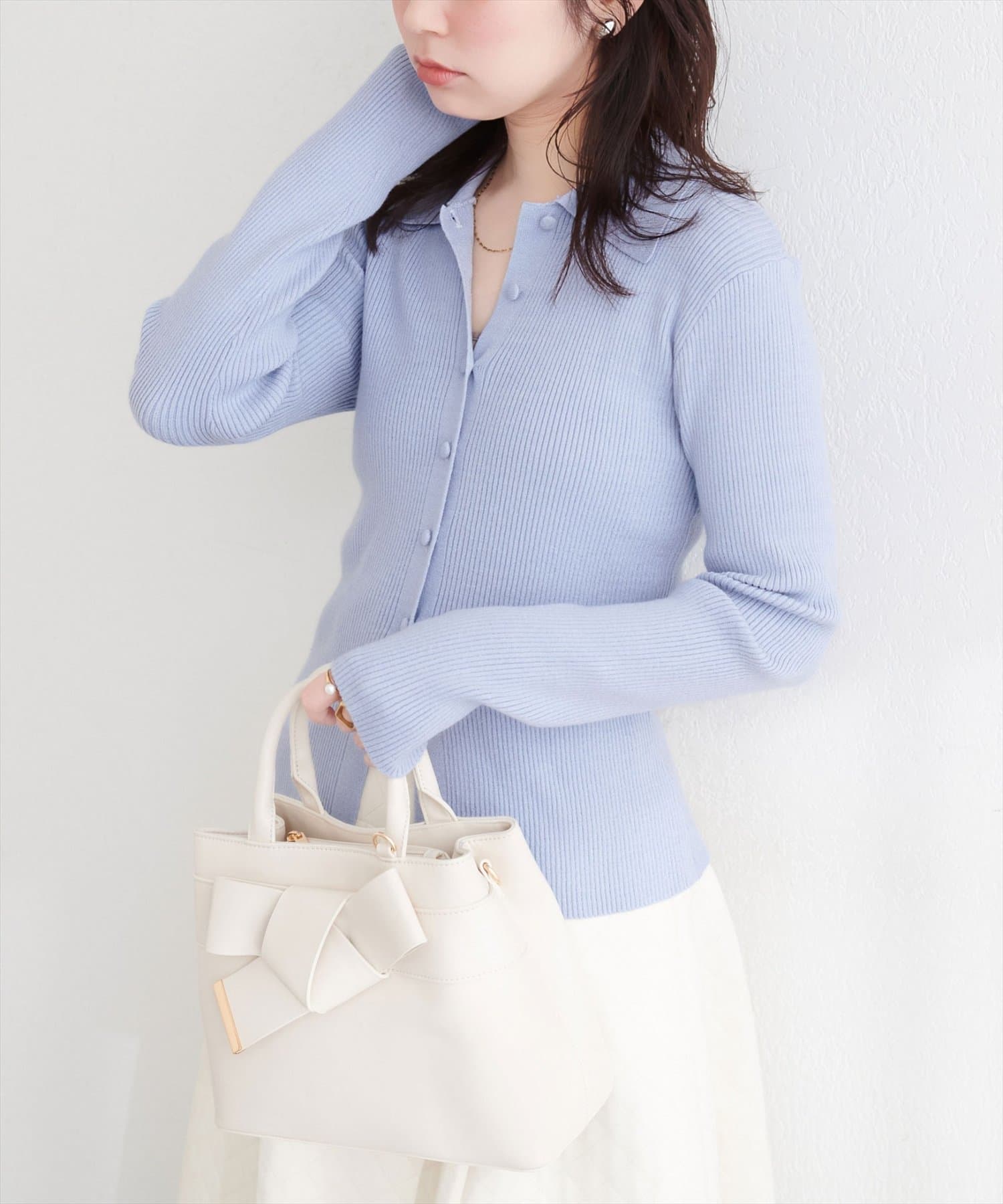 フロントにあしらわれたくるみ釦が愛らしいリブニット。