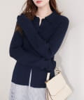 丁寧に施されたくるみ釦は、ニットの柔らかな表情を引き立て、上品で優しい印象を与えます。