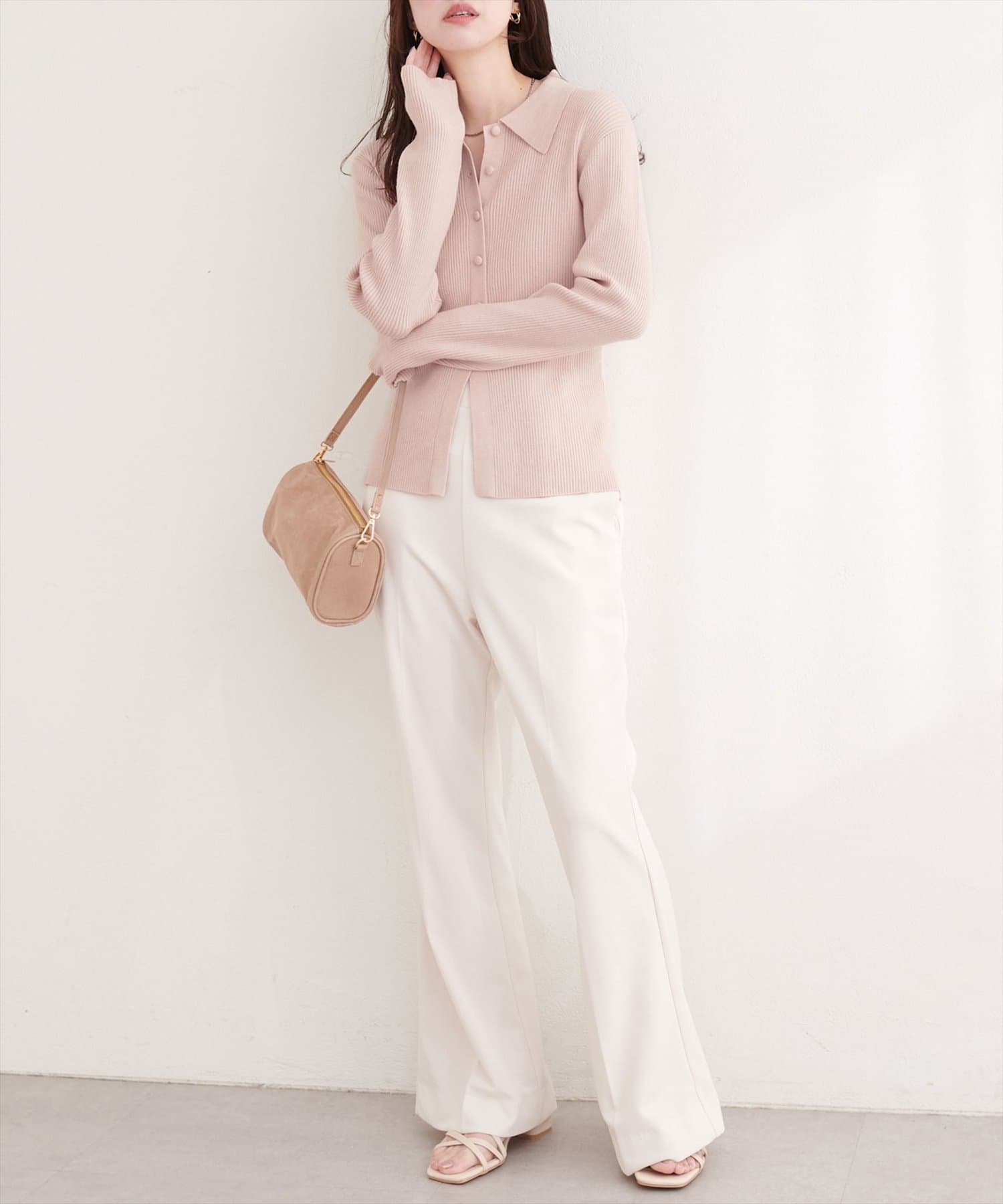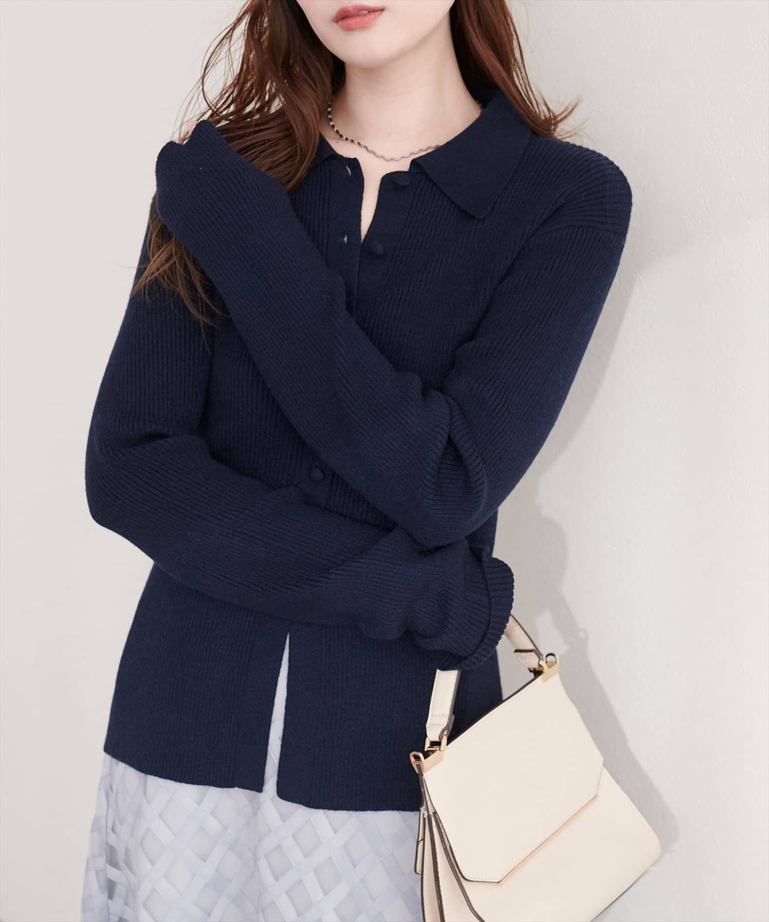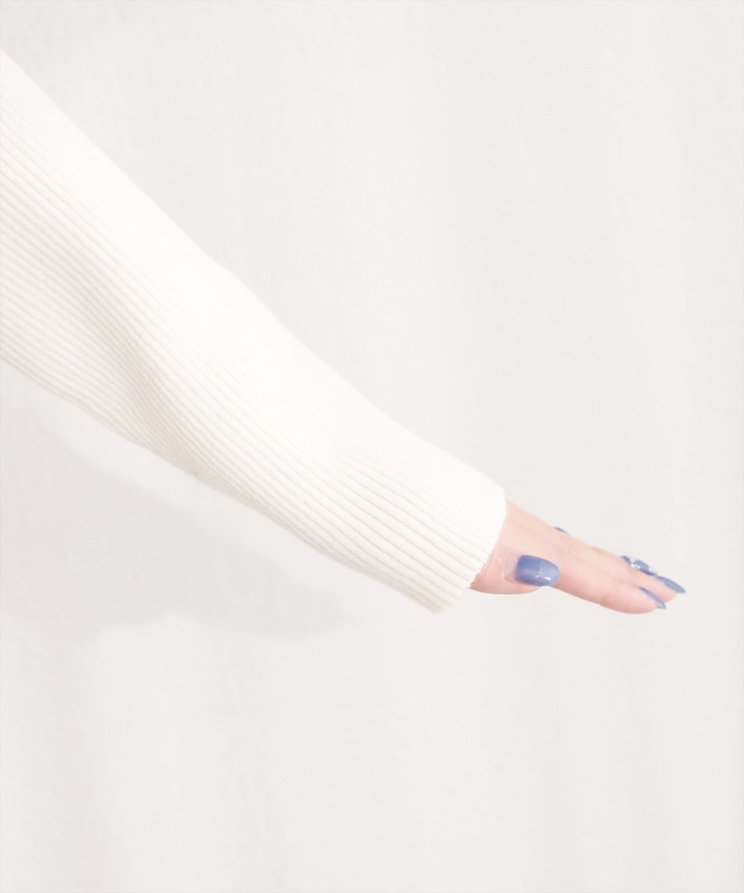 リブ編みの縦ラインは、ボディラインをすっきりと見せる視覚効果も。