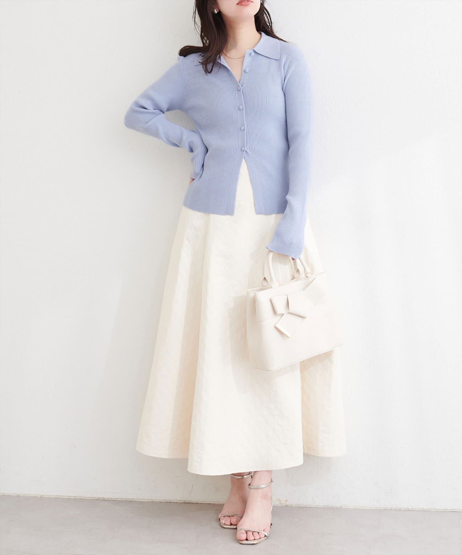 スカートと合わせてフェミニンに、パンツと合わせてマニッシュにと、合わせるアイテムによって印象ががらりと変わります。