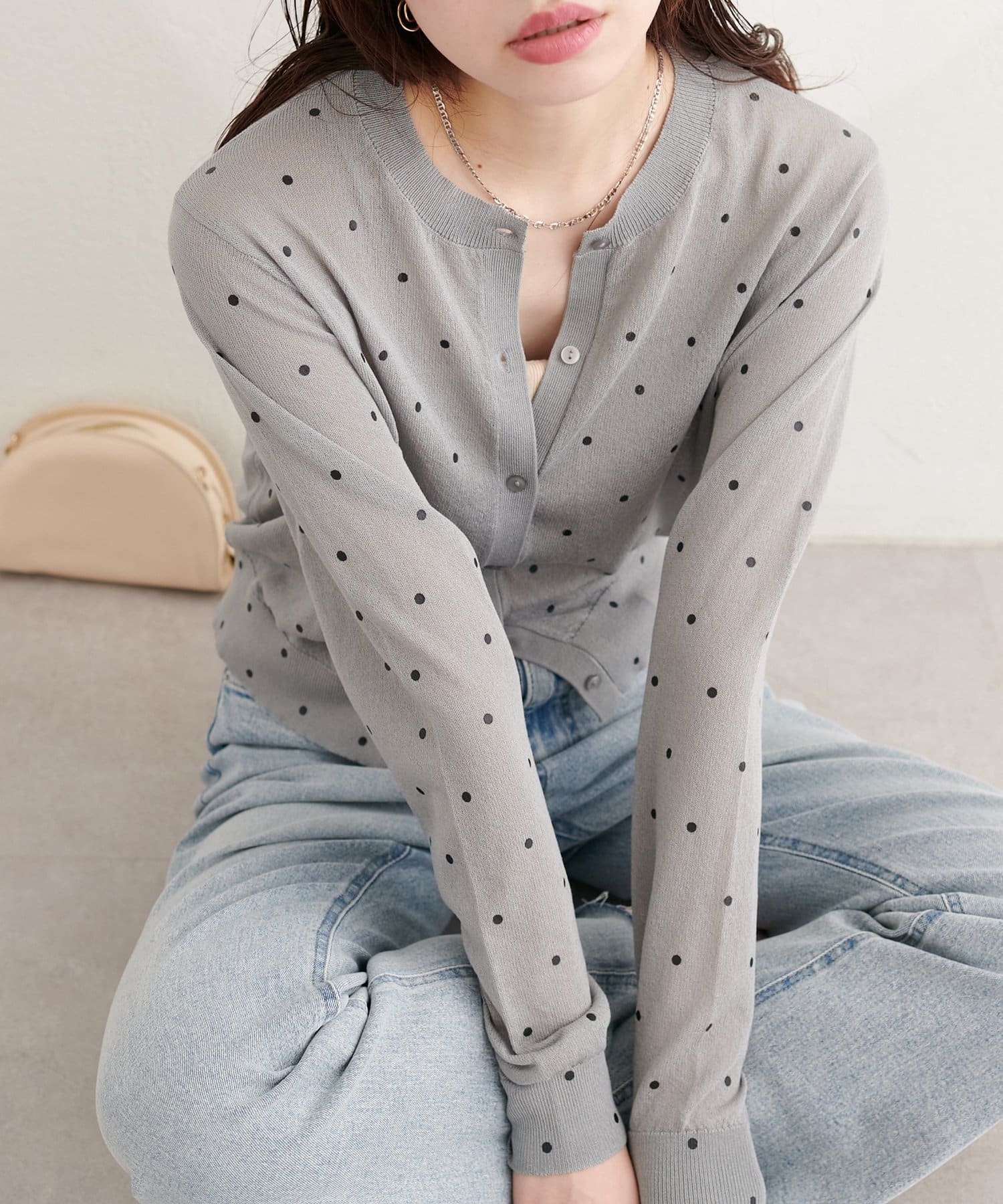 小さめのドットが上品さをプラスし、カジュアルになりすぎないのがポイント。