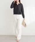 首元はベーシックなクルーネックで、インナーを選ばず着回し力も抜群です。