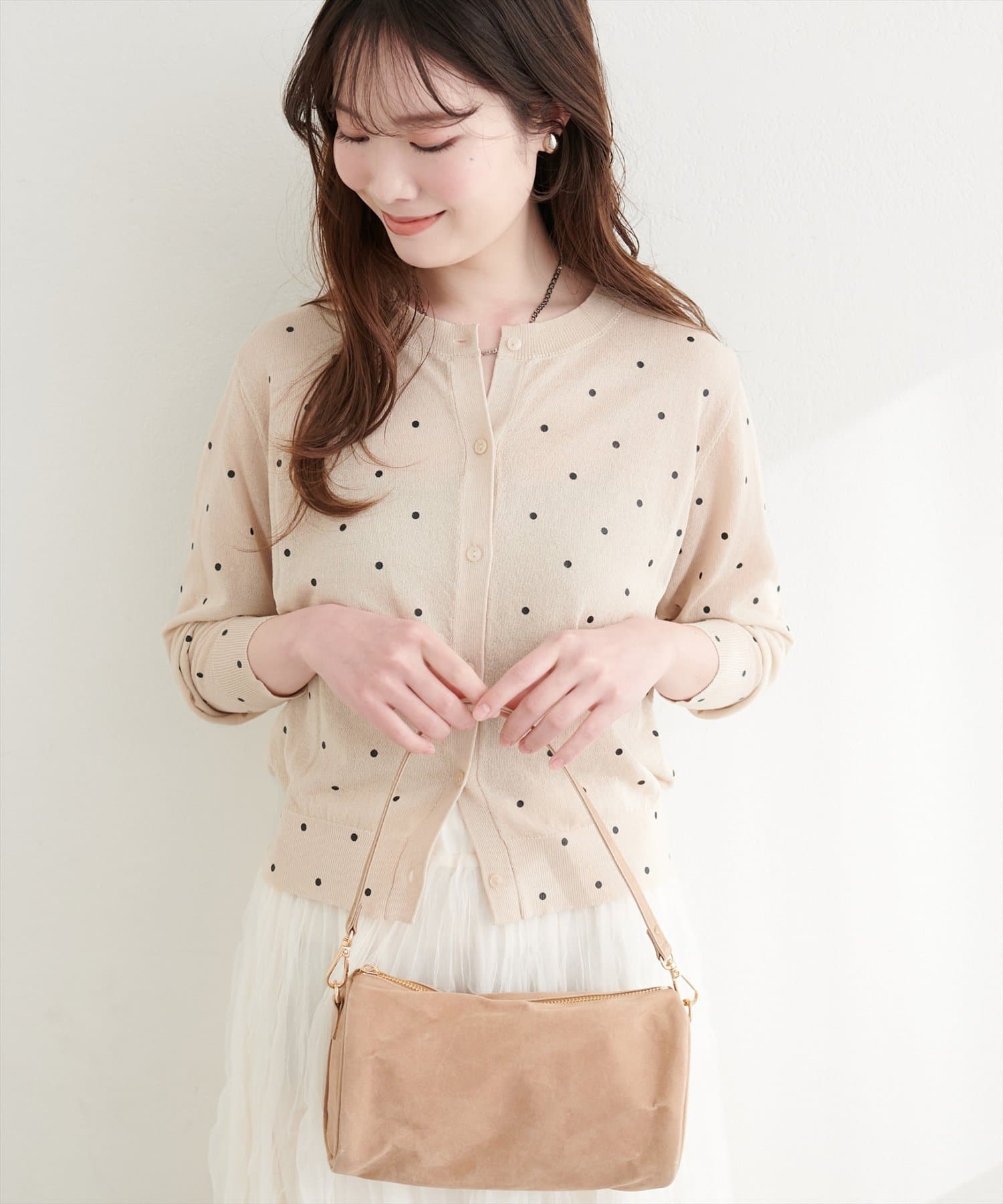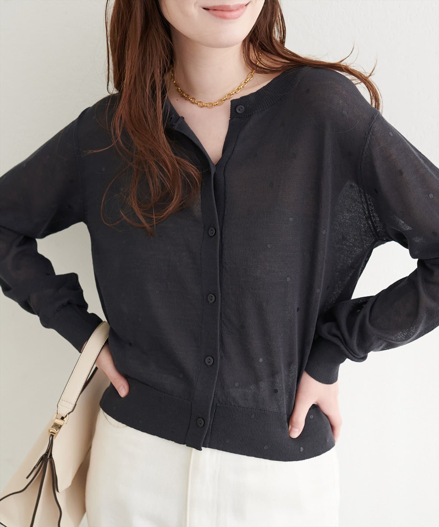 • natural couture(ナチュラルクチュール) ドットシアーカーディガン
