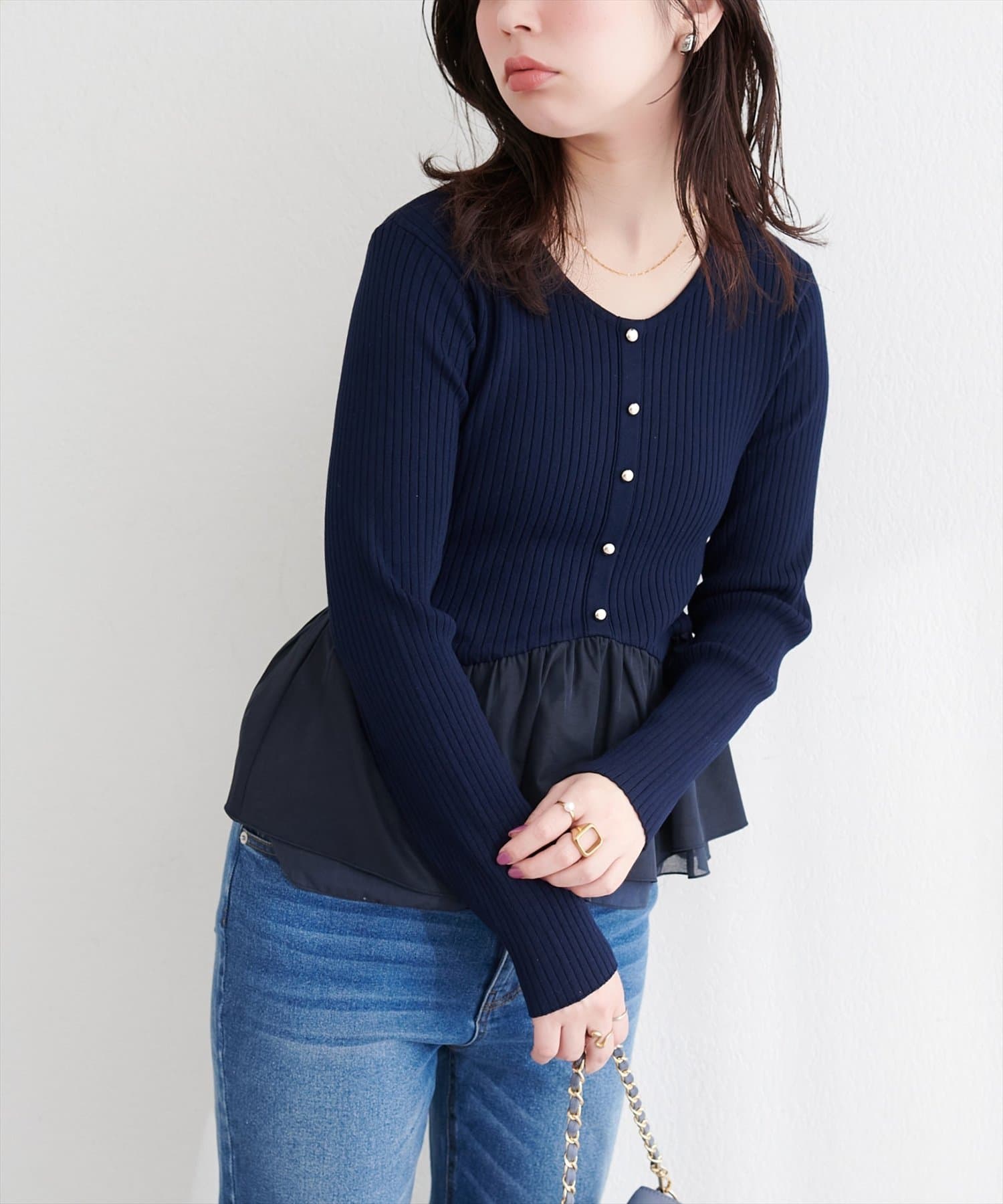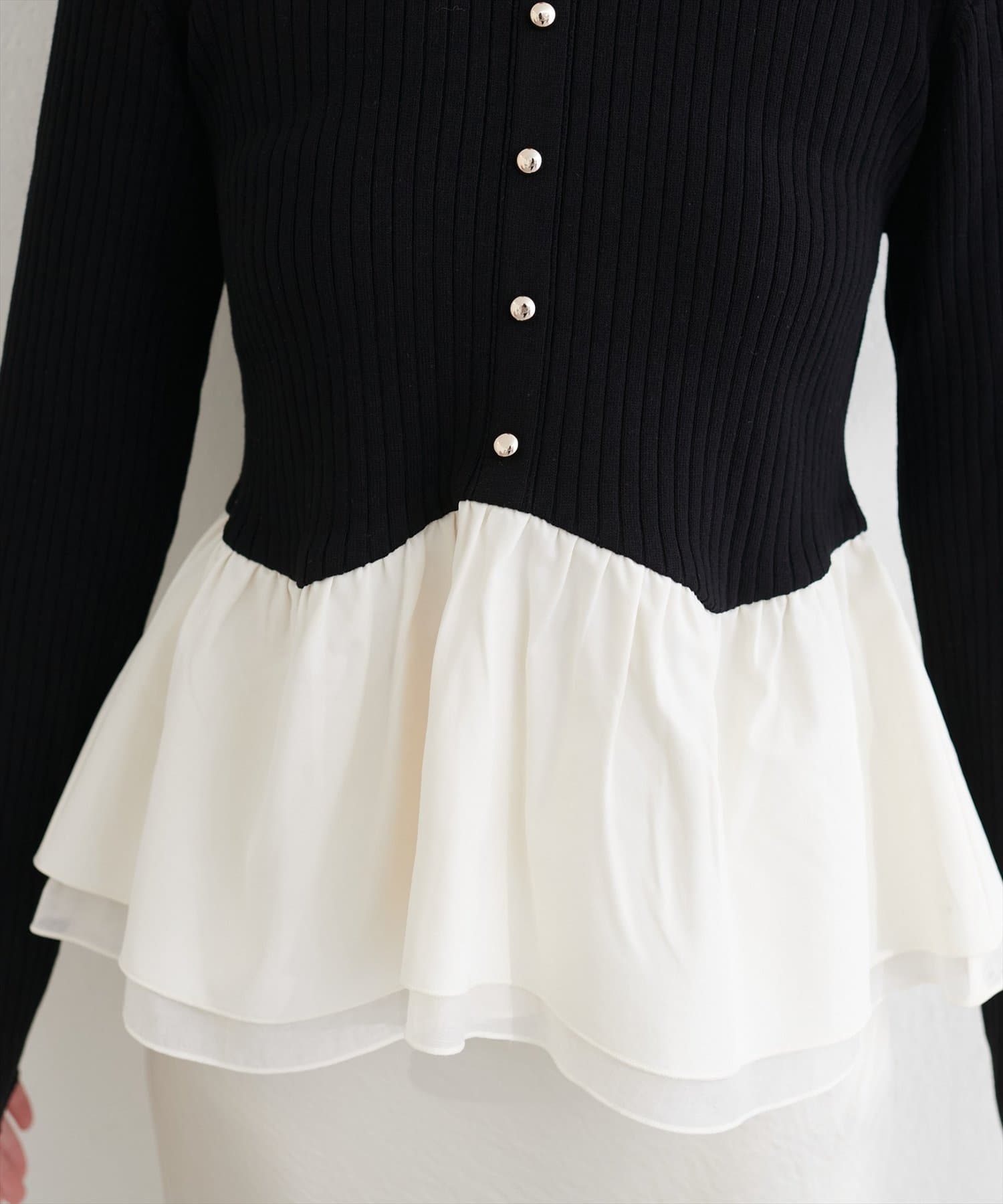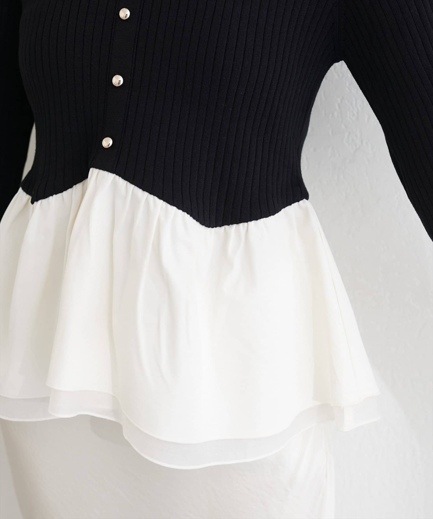 ウエストから広がるペプラム部分は、異素材の組み合わせがポイント。