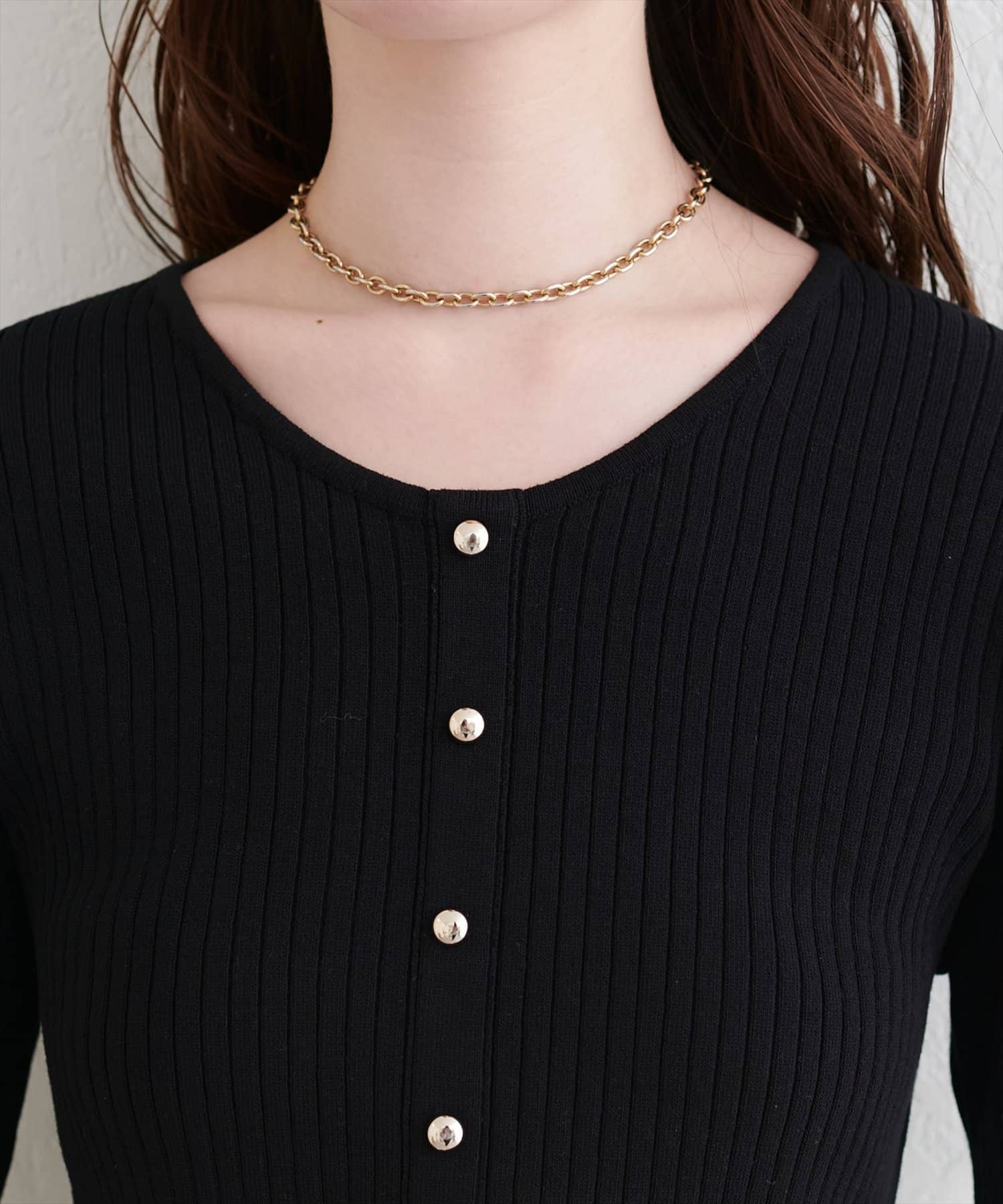 フロントに並んだ上品なボタンが、さりげないアクセントとなり、洗練された印象を与えます。