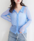 シアー感を活かして、タンクトップやキャミソールとのレイヤードスタイルに。