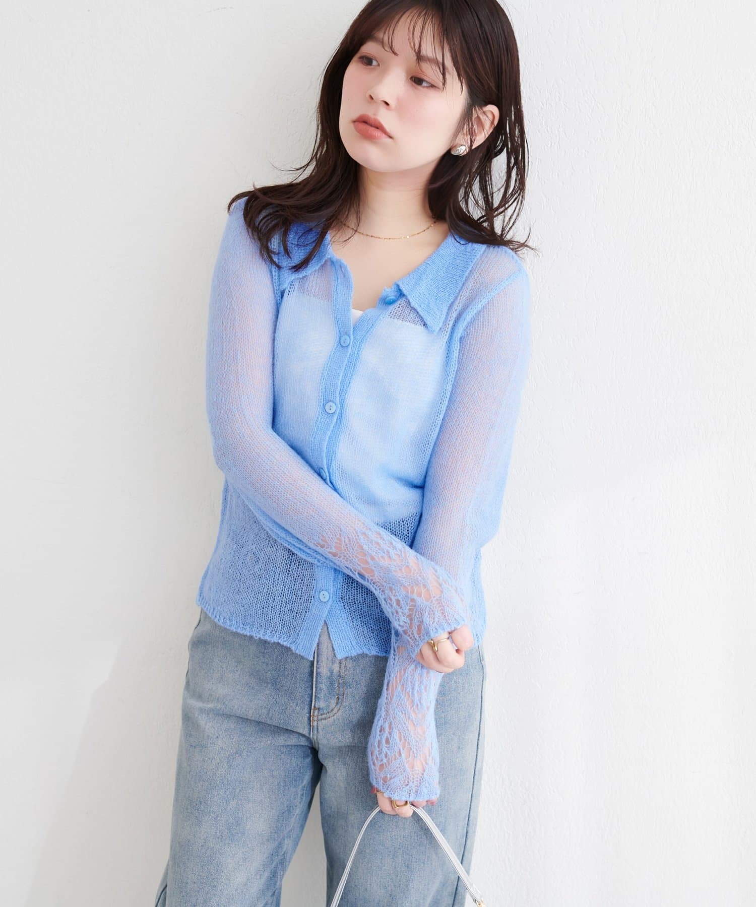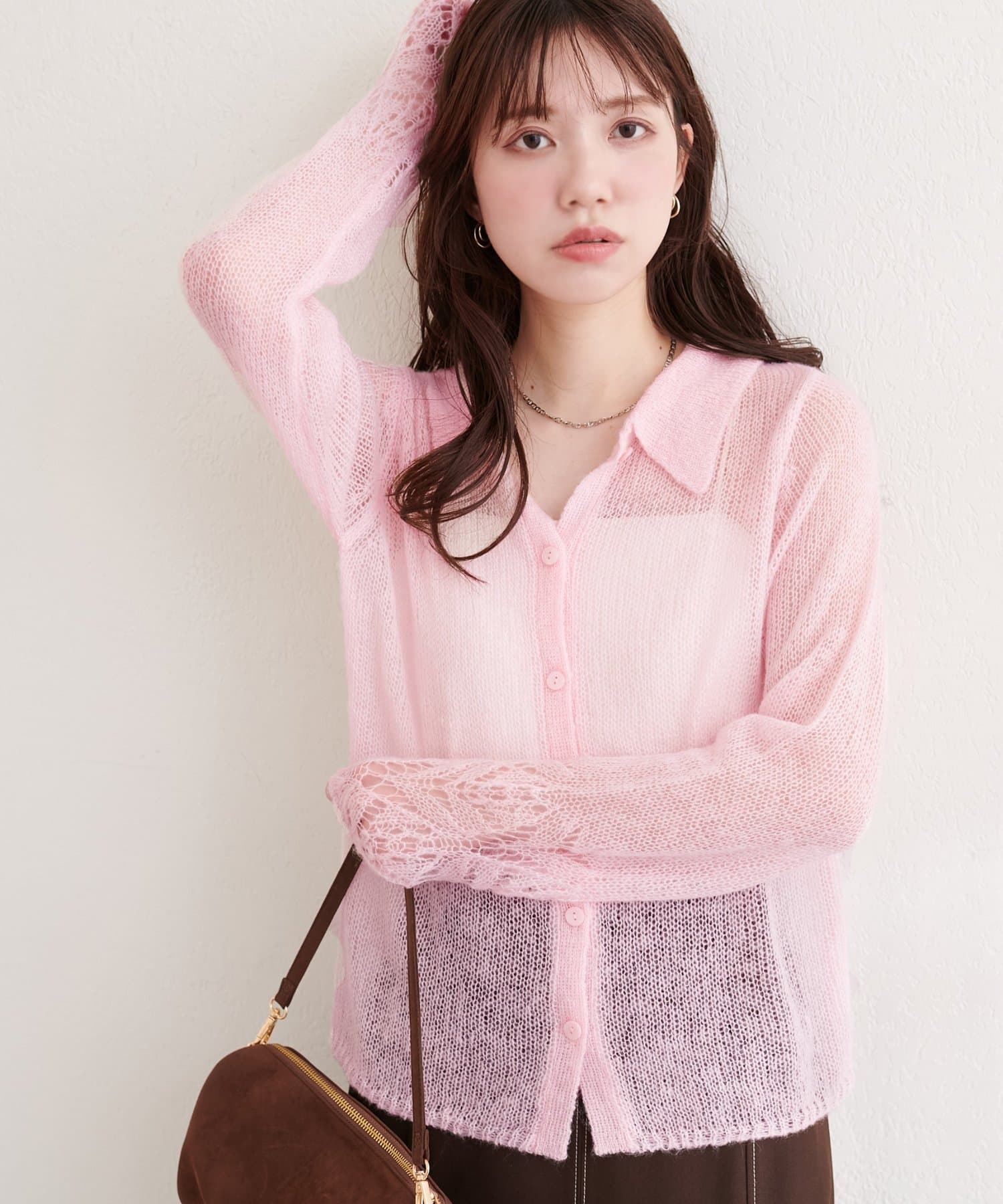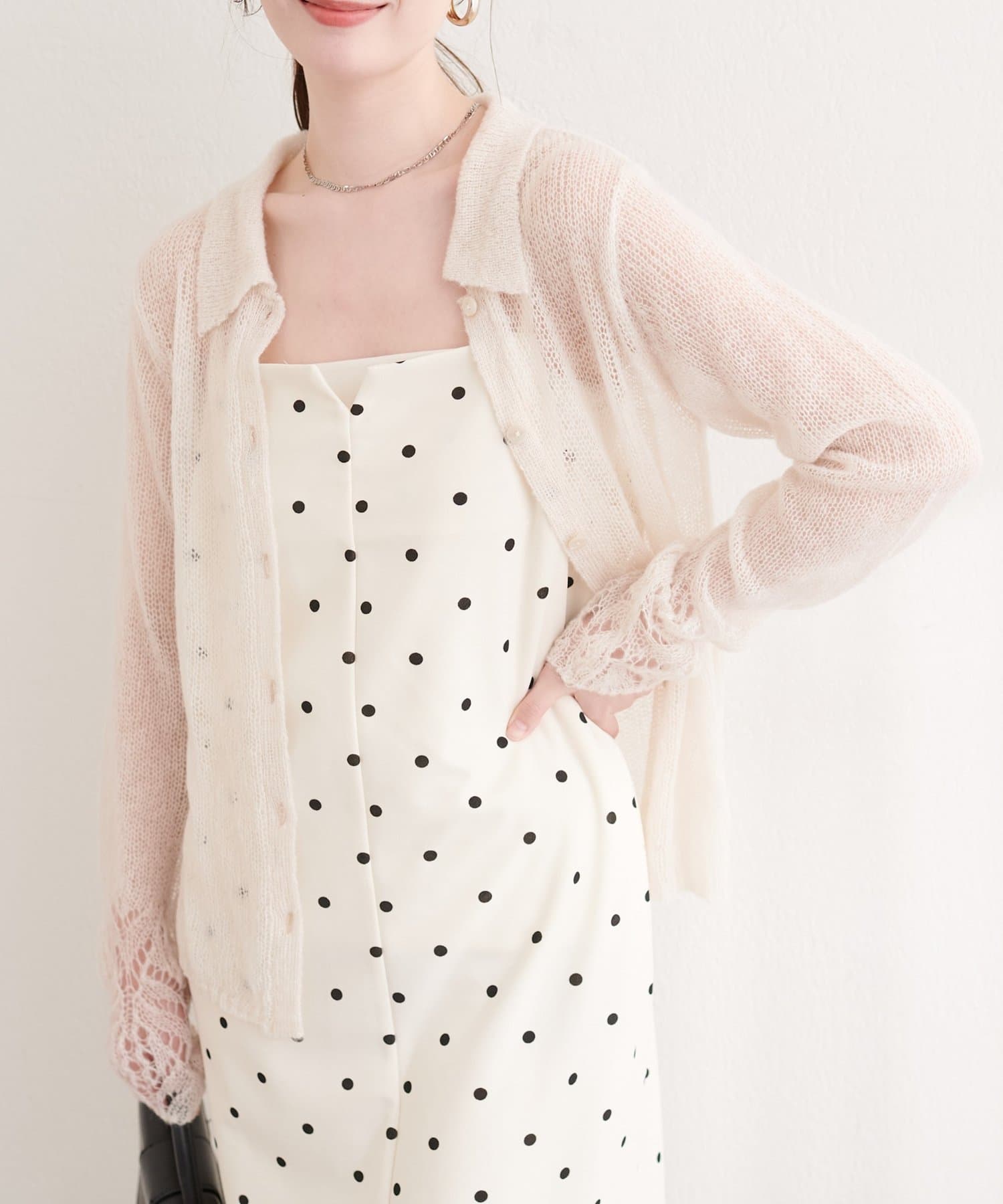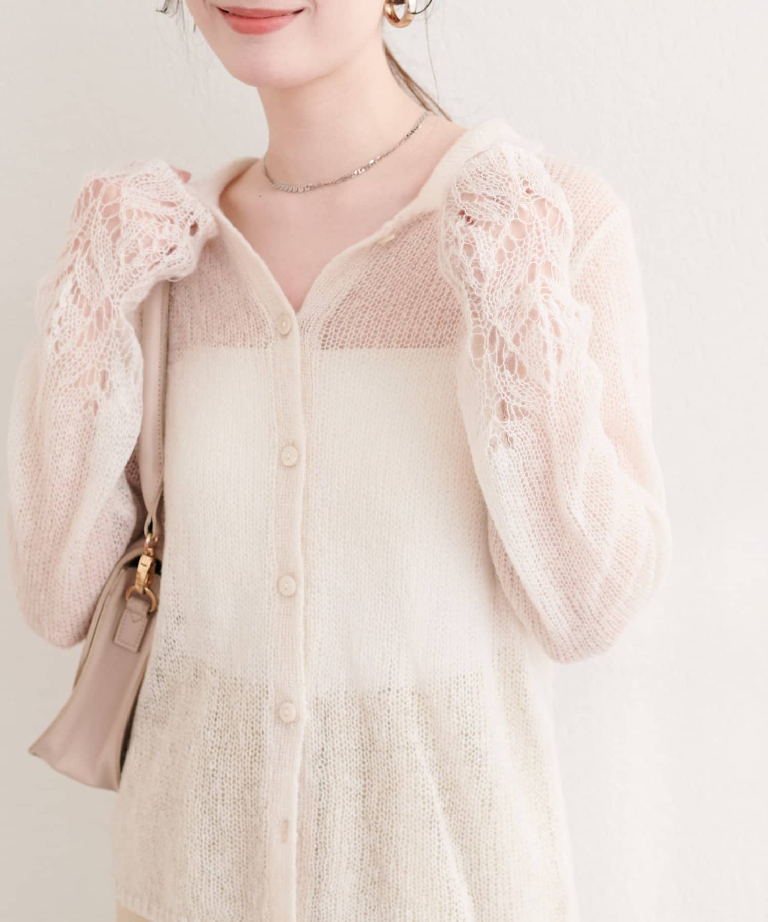 透け感のある編地が、軽やかでフェミニンな印象をプラスしてくれます。