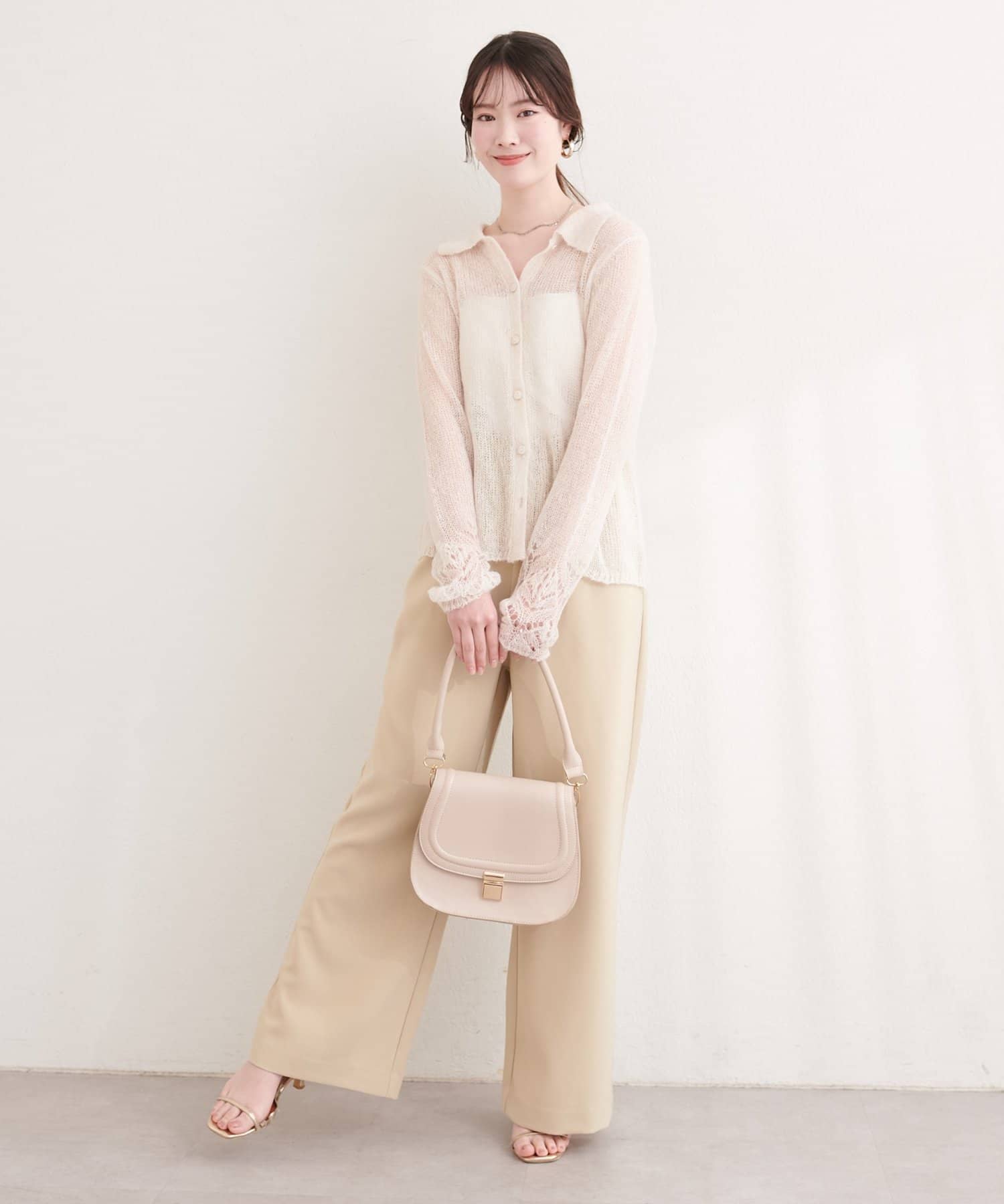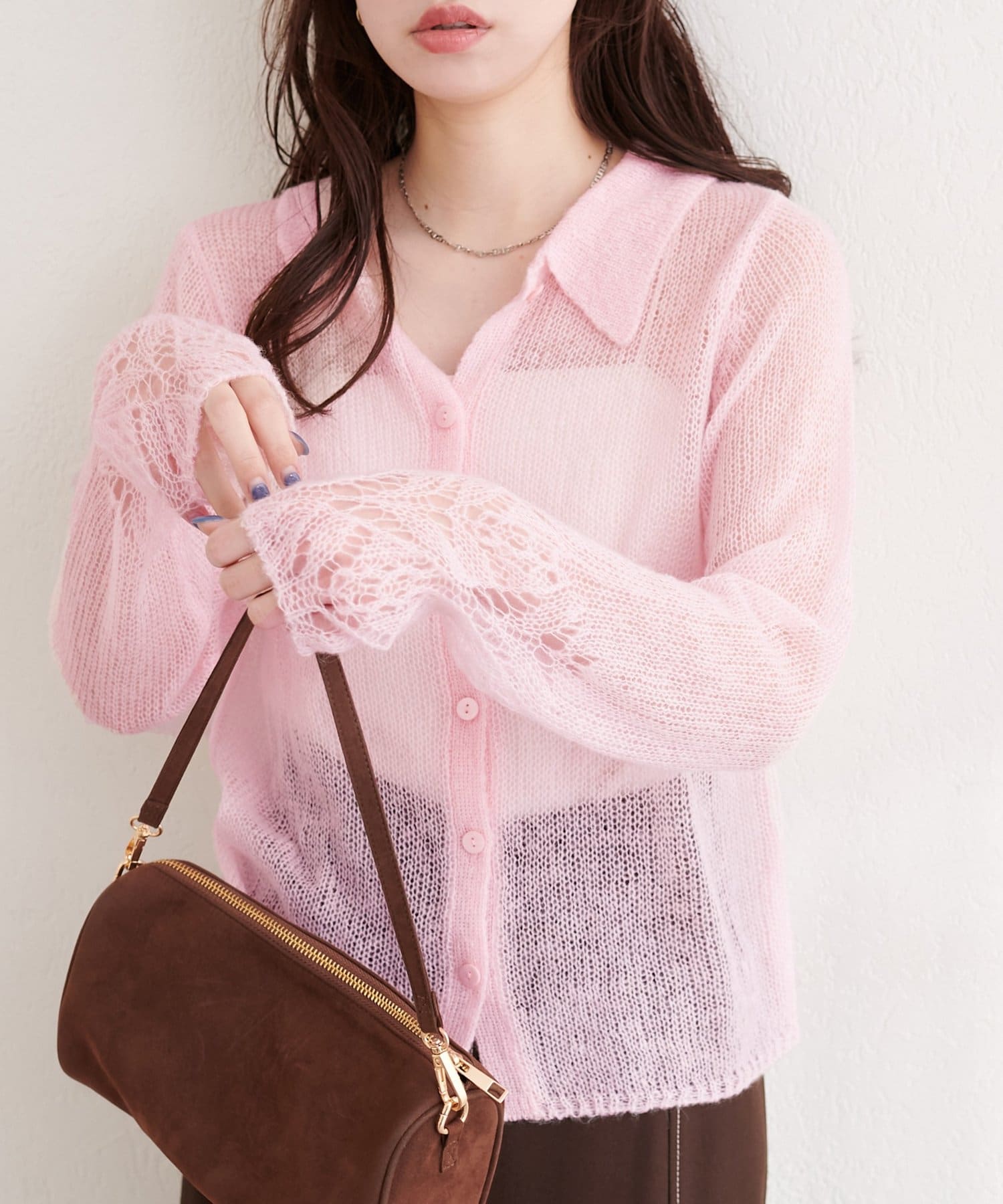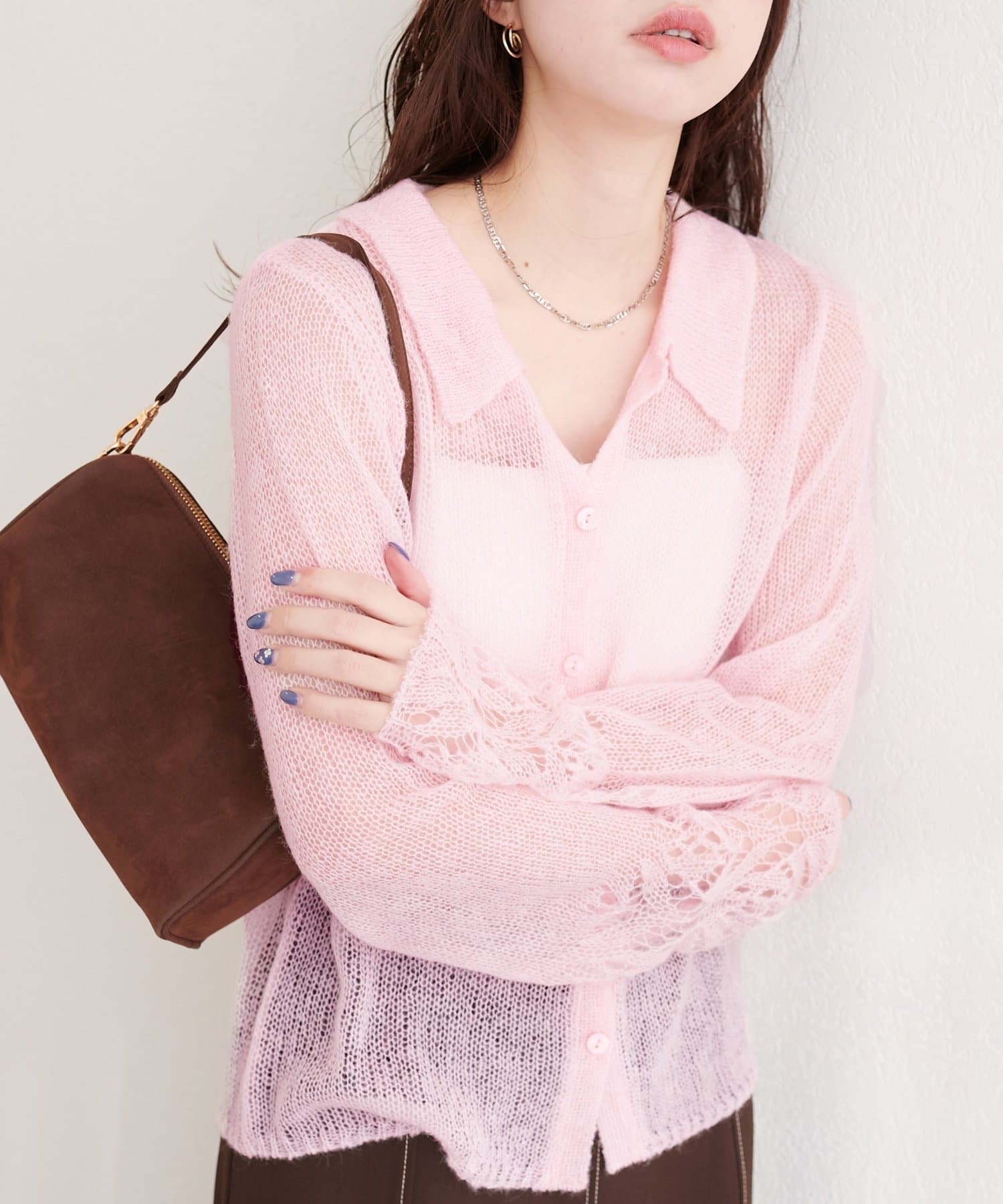 透け感のある編地が、軽やかでフェミニンな印象をプラスしてくれます。