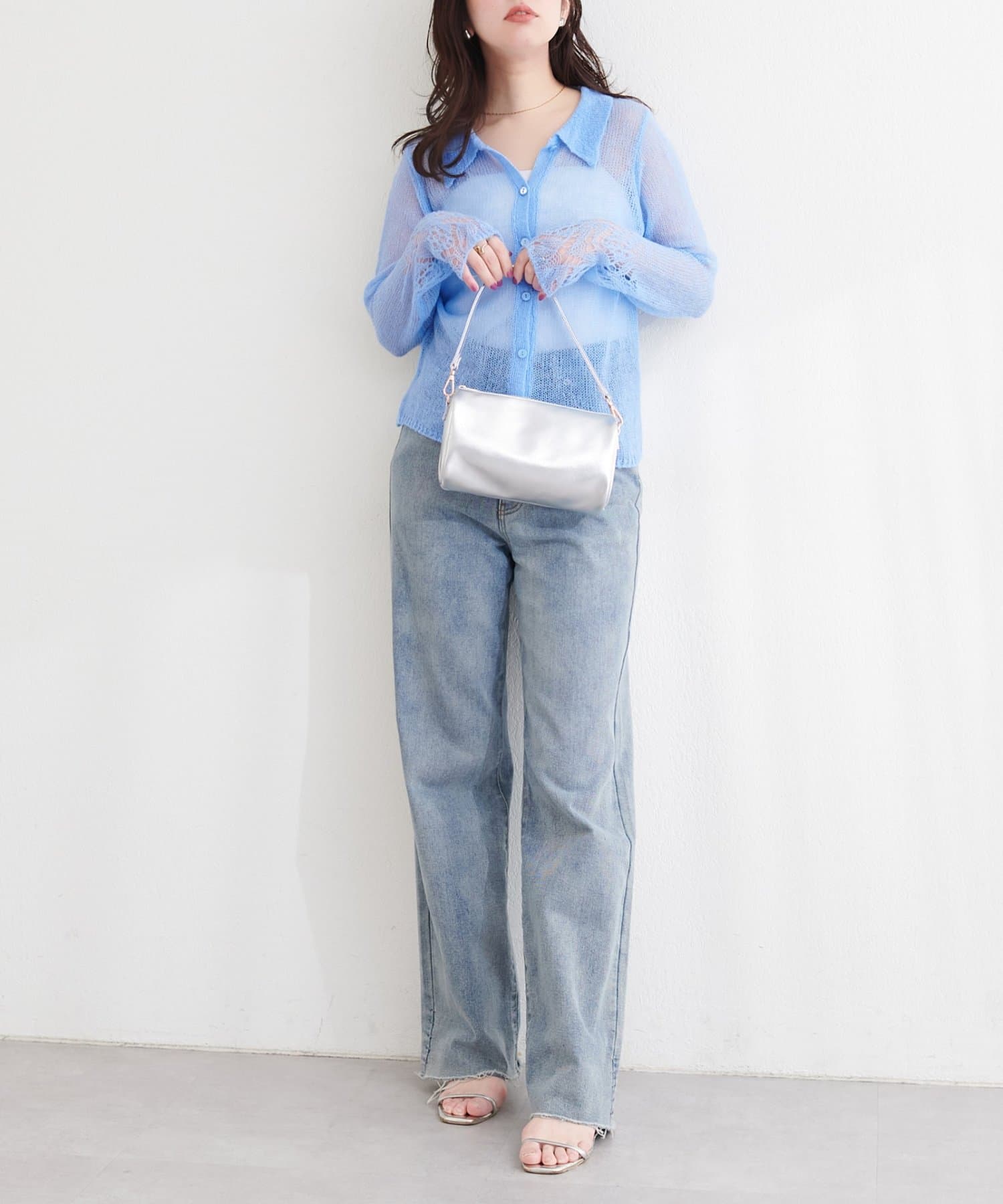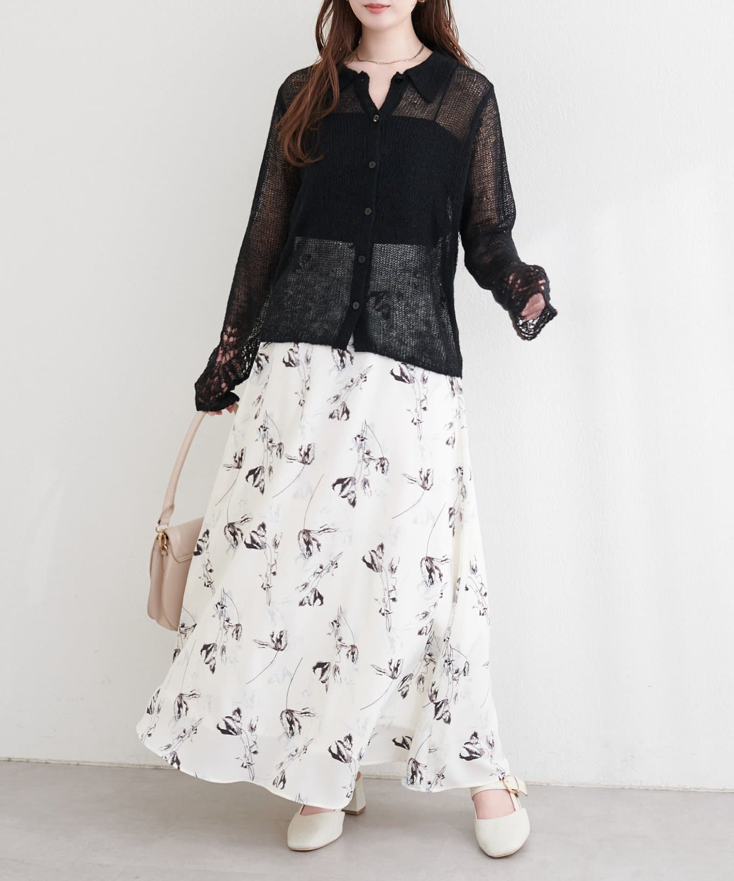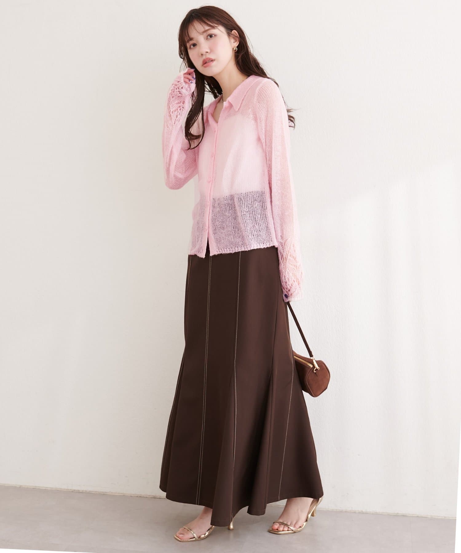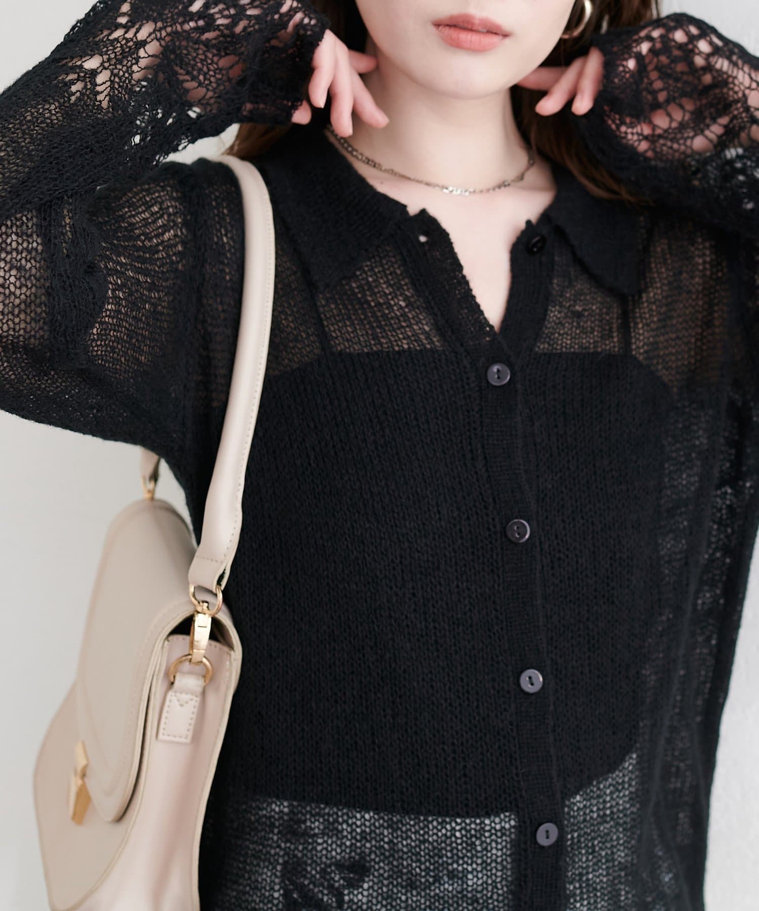 透け感のある編地が、軽やかでフェミニンな印象をプラスしてくれます。