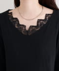 ネックラインと袖口を飾るチュールレースは繊細な模様で、胸元と手元を上品で、華やか印象にしてくれます。