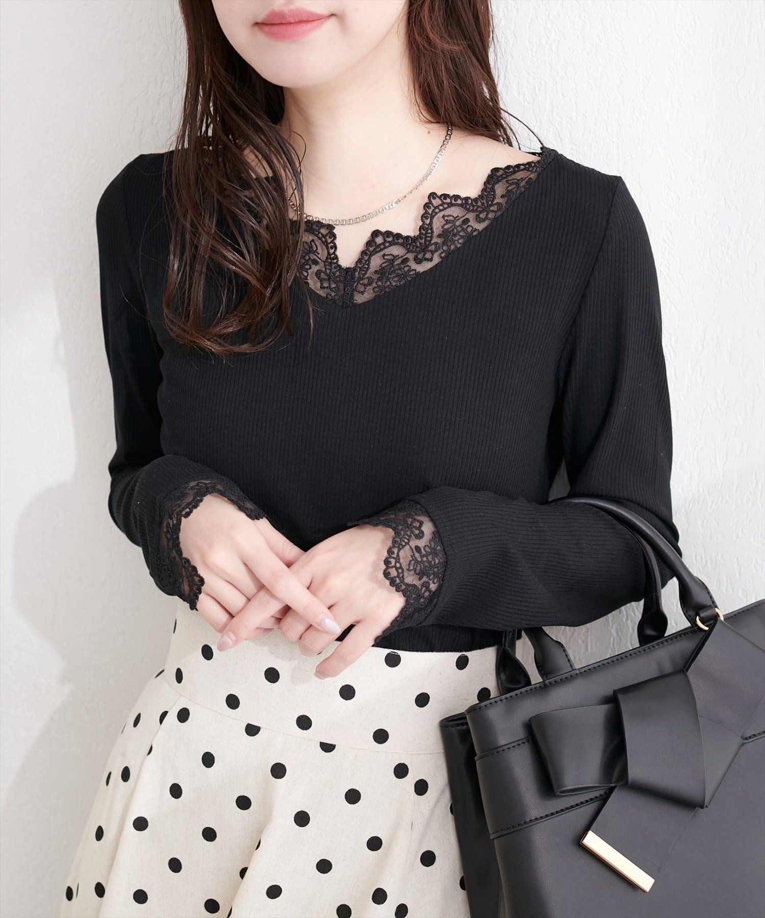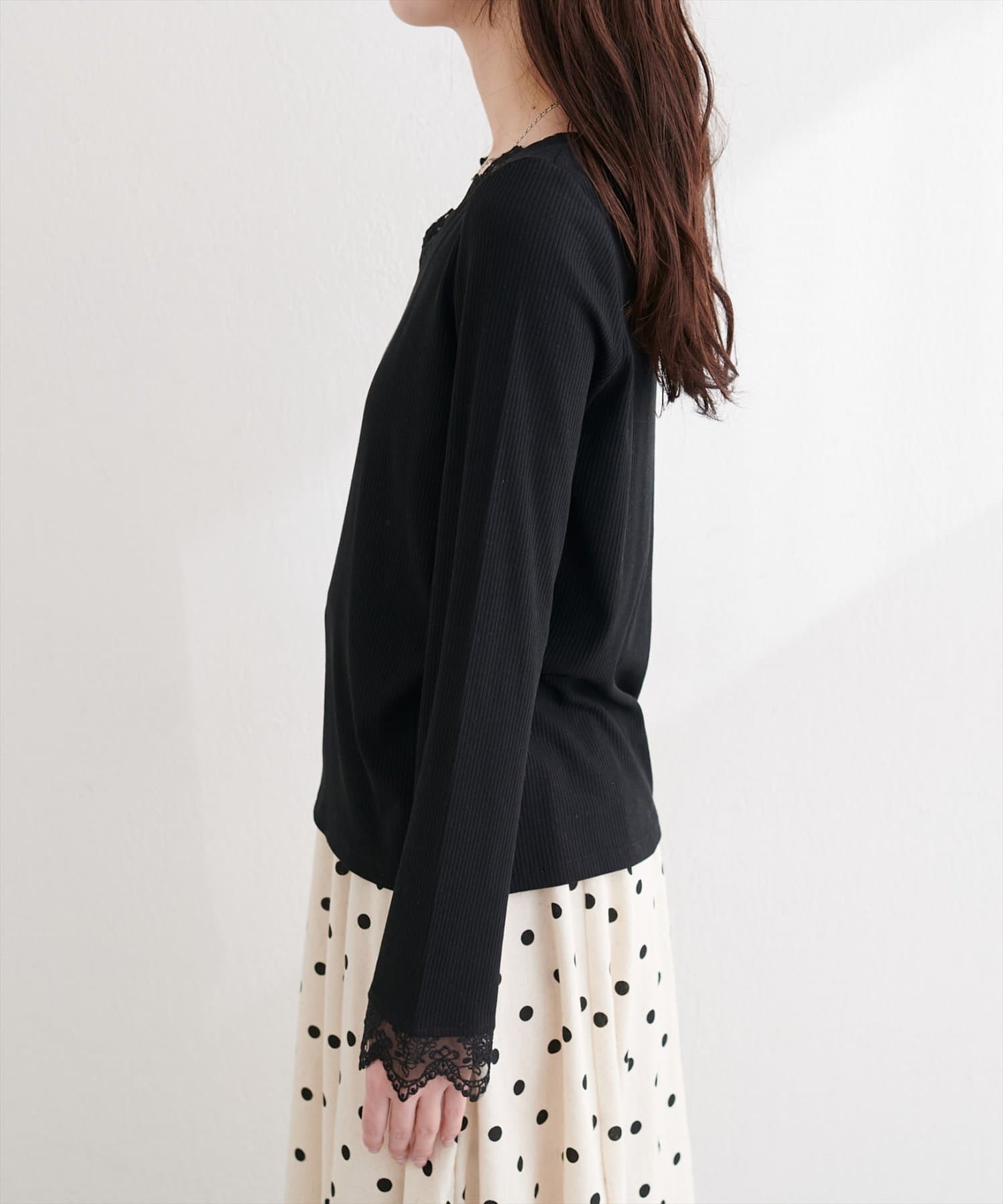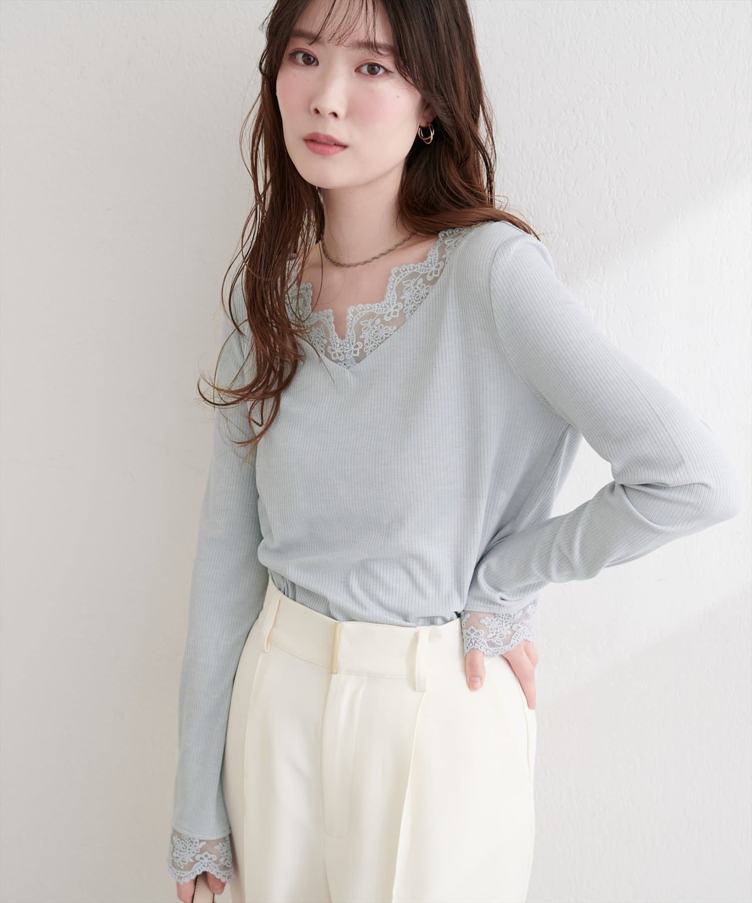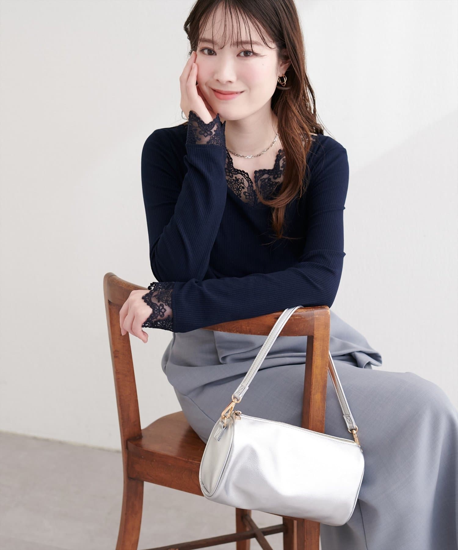 袖口のレースは、さりげないアクセントとして、手元を華奢に演出。