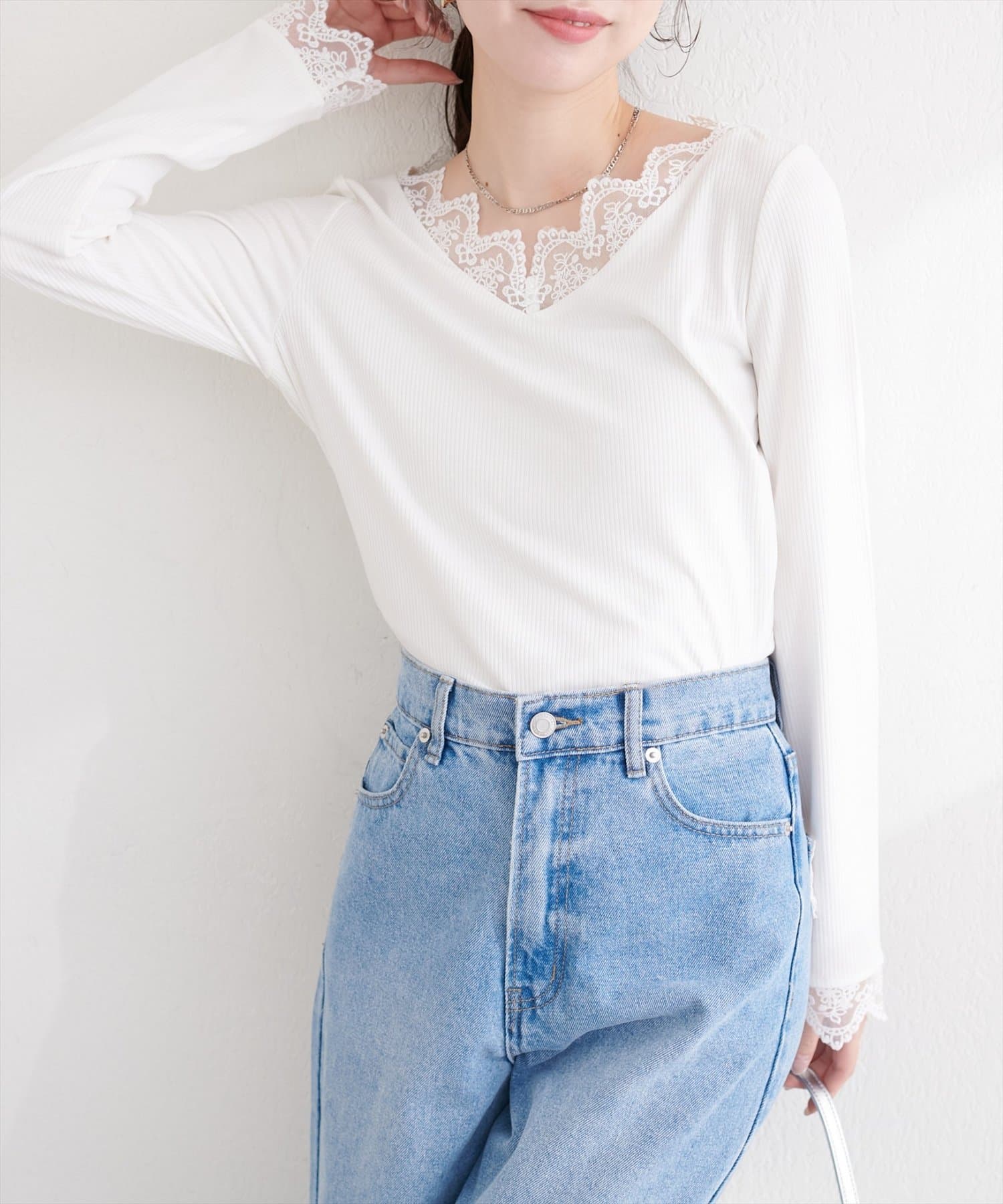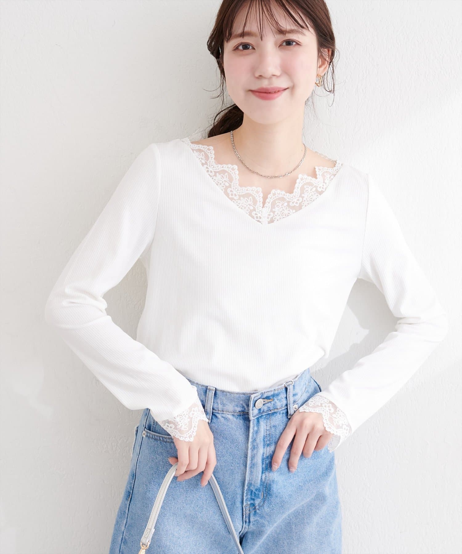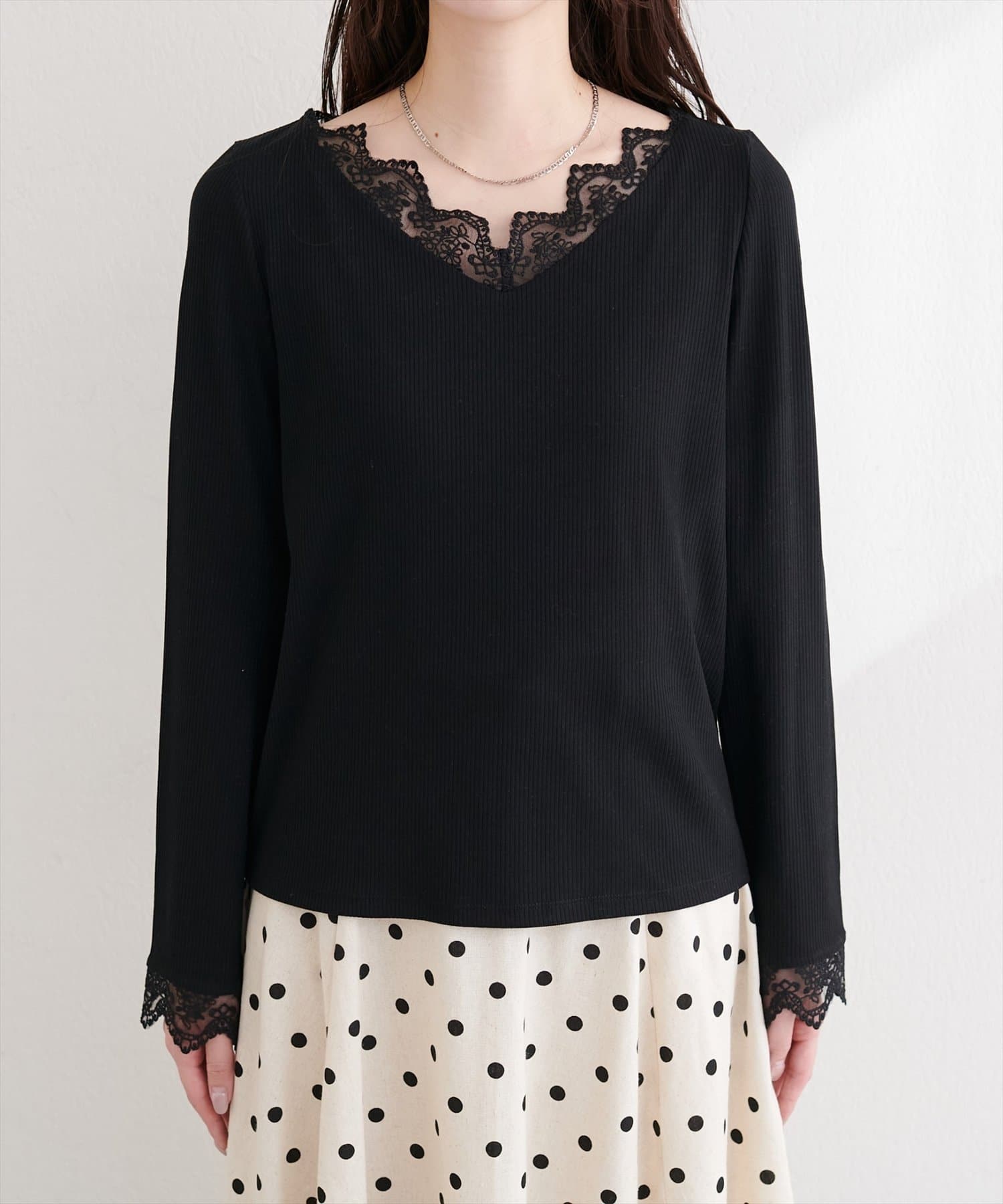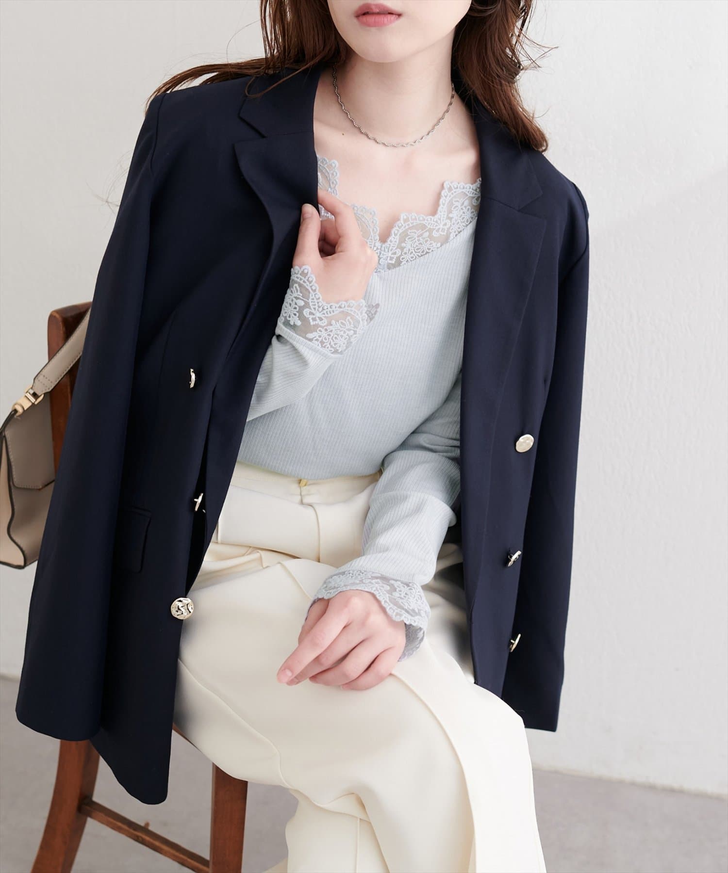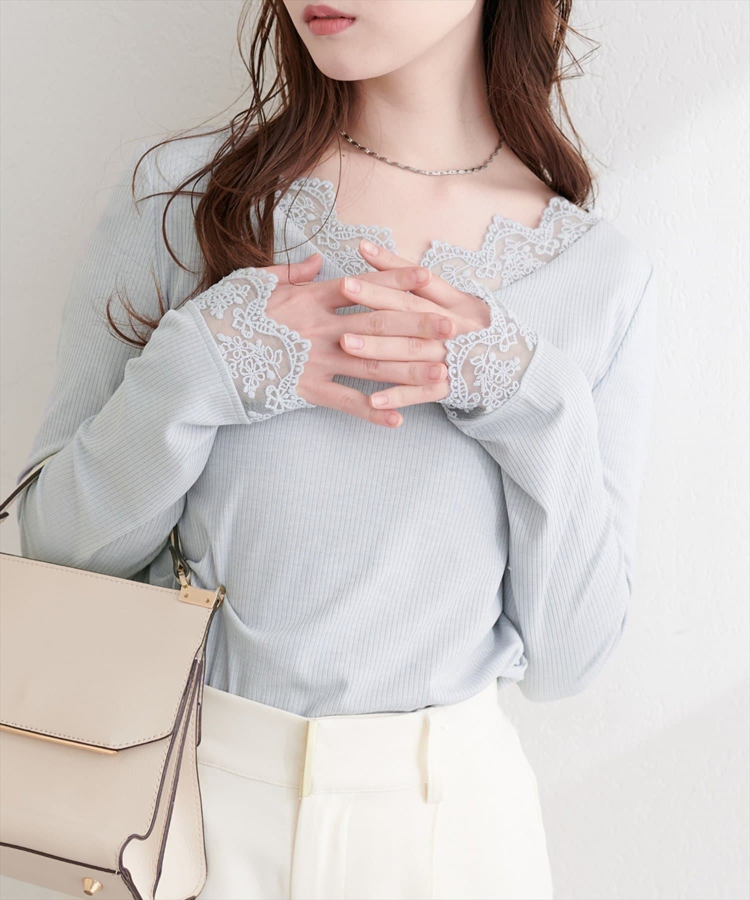 袖口のレースは、さりげないアクセントとして、手元を華奢に演出。