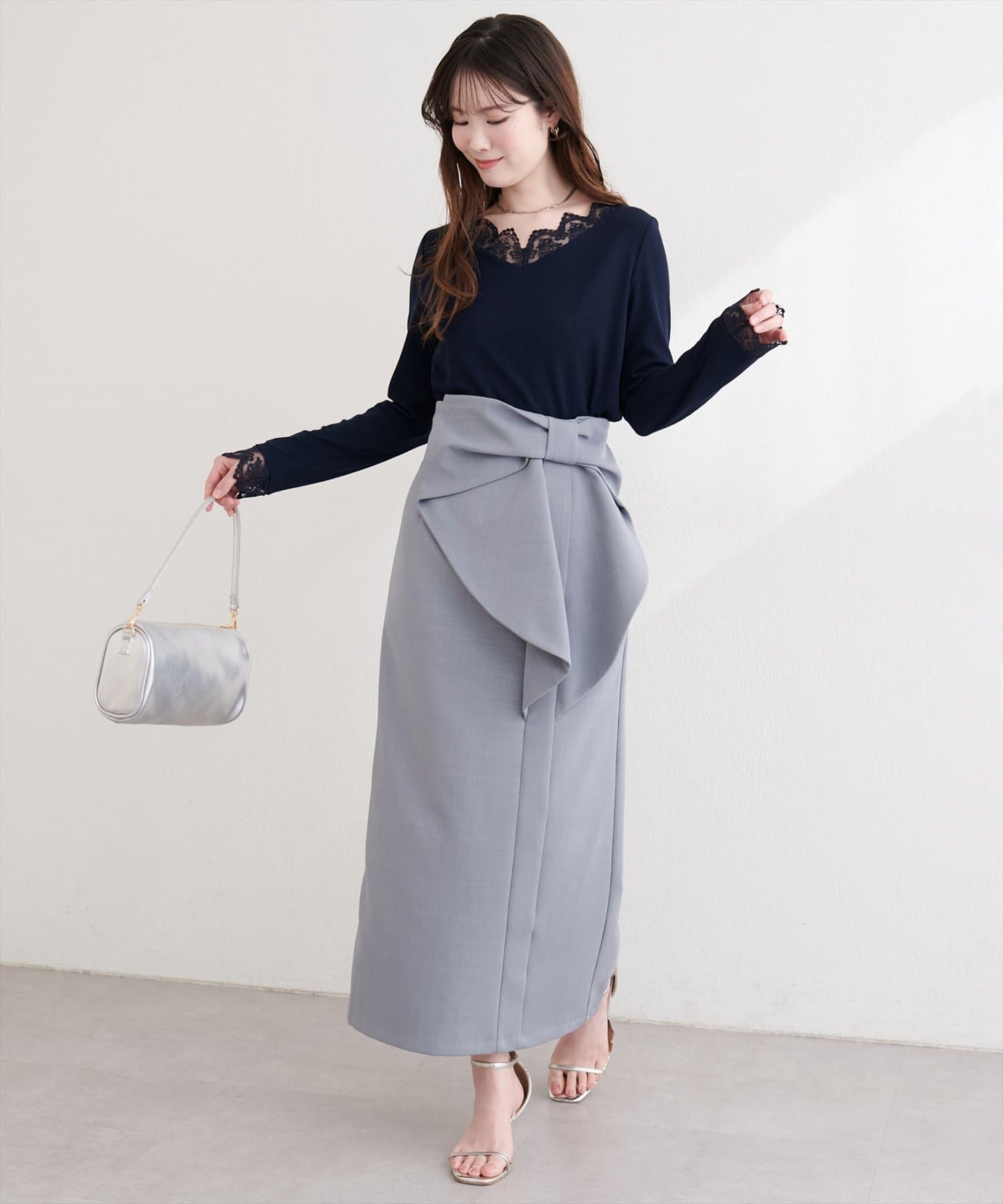 ジャケットやカーディガンを羽織れば、オフィススタイルにも。
