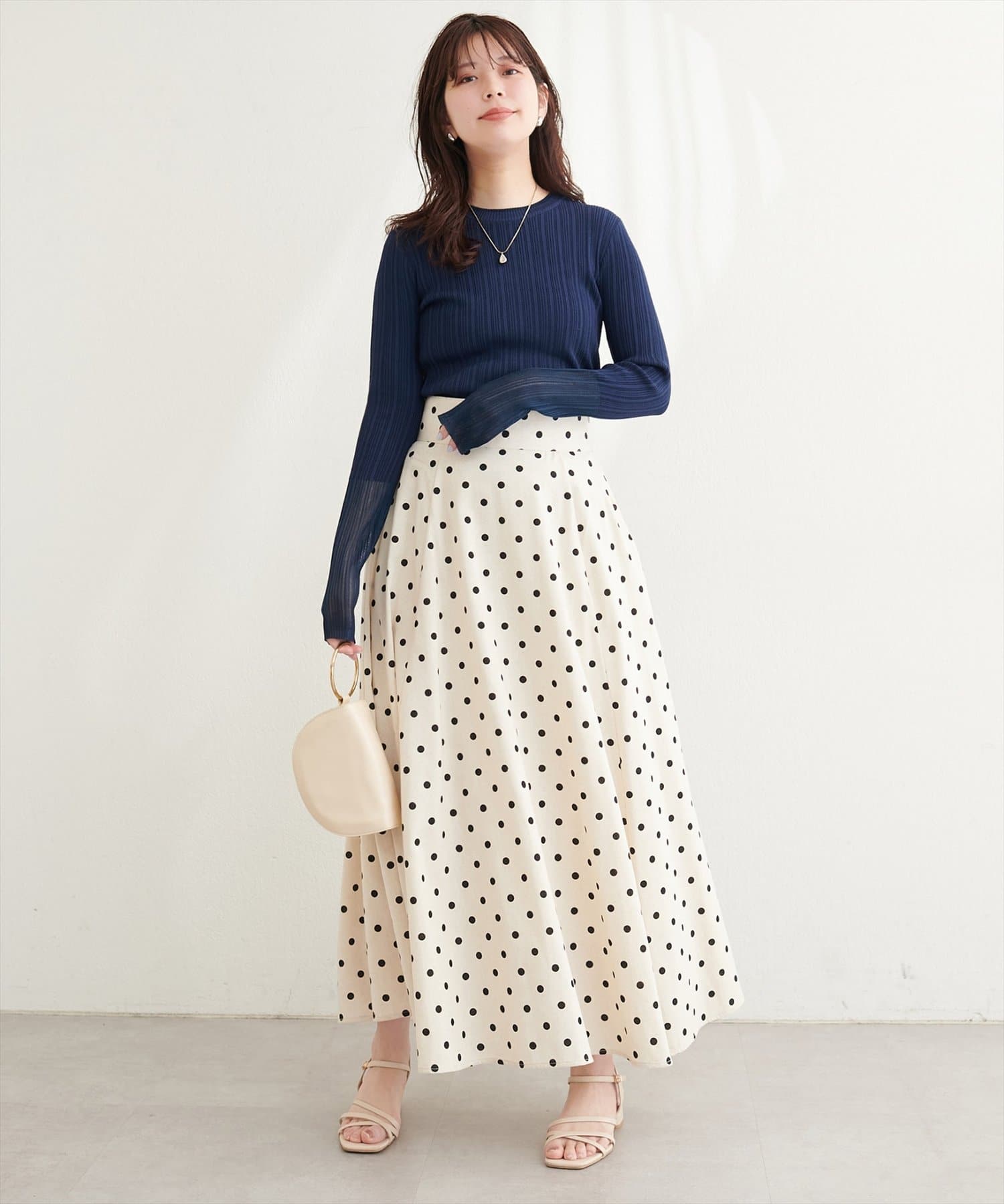 ジャケットやカーディガンを羽織れば、オフィススタイルにも対応可能。