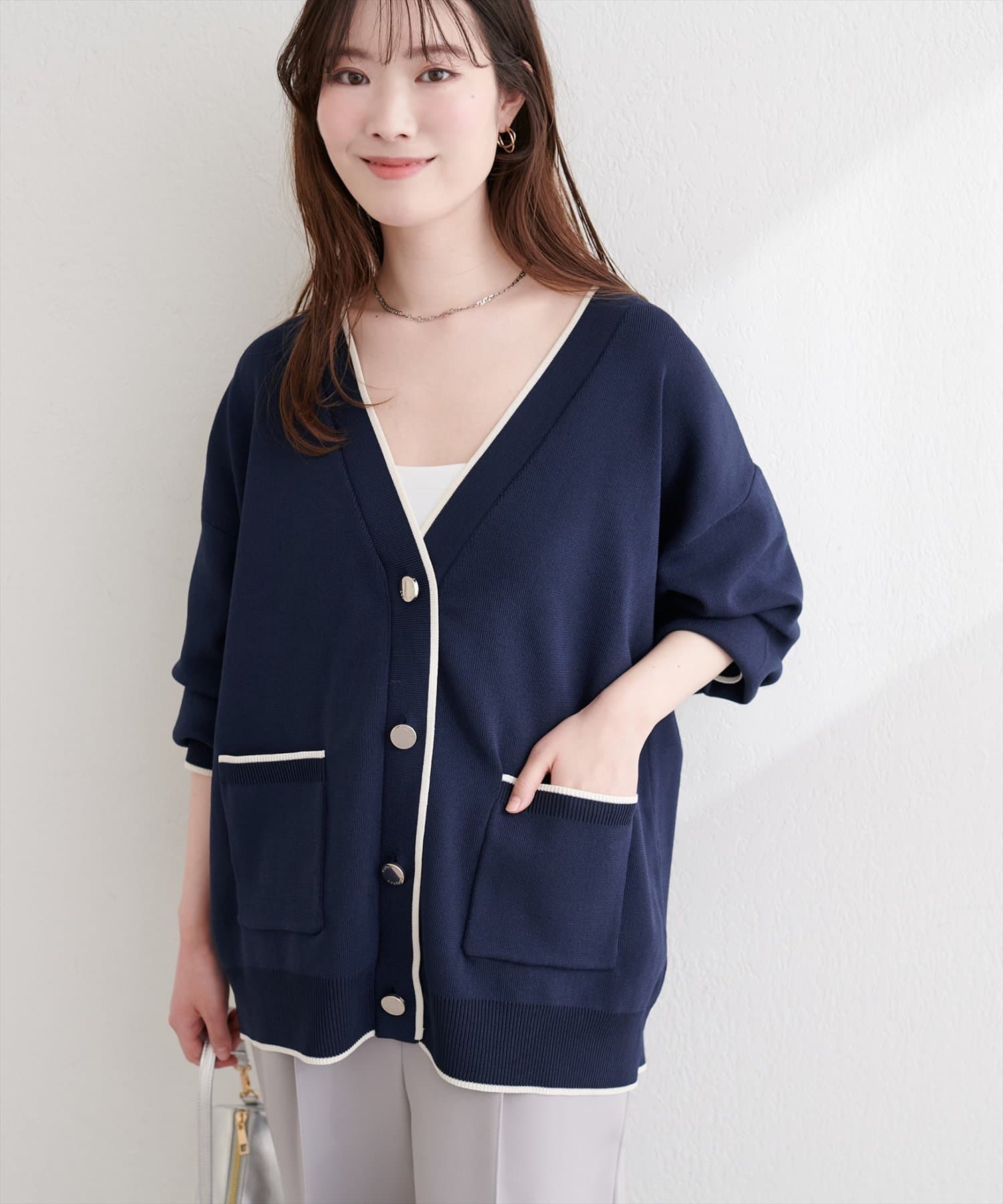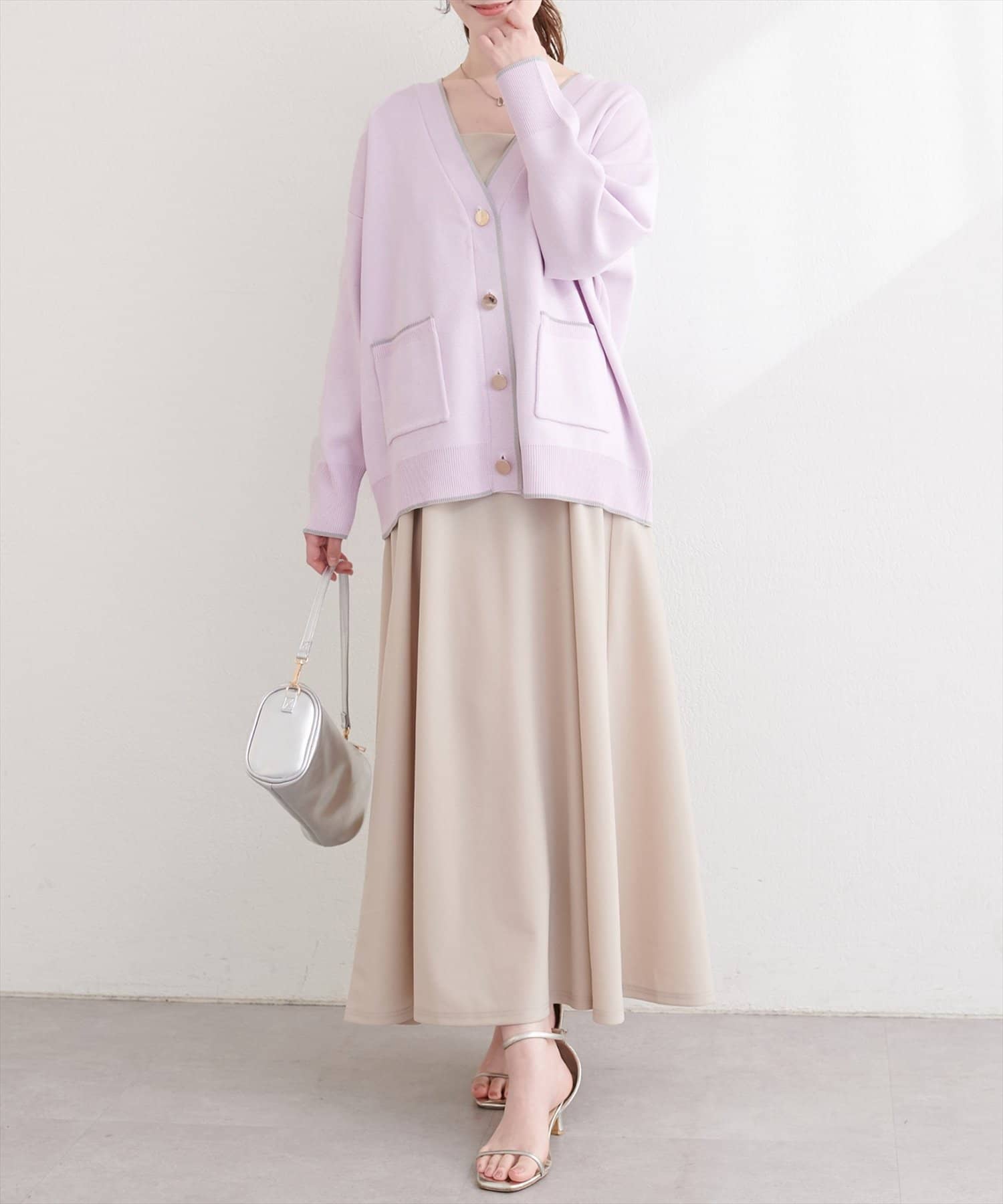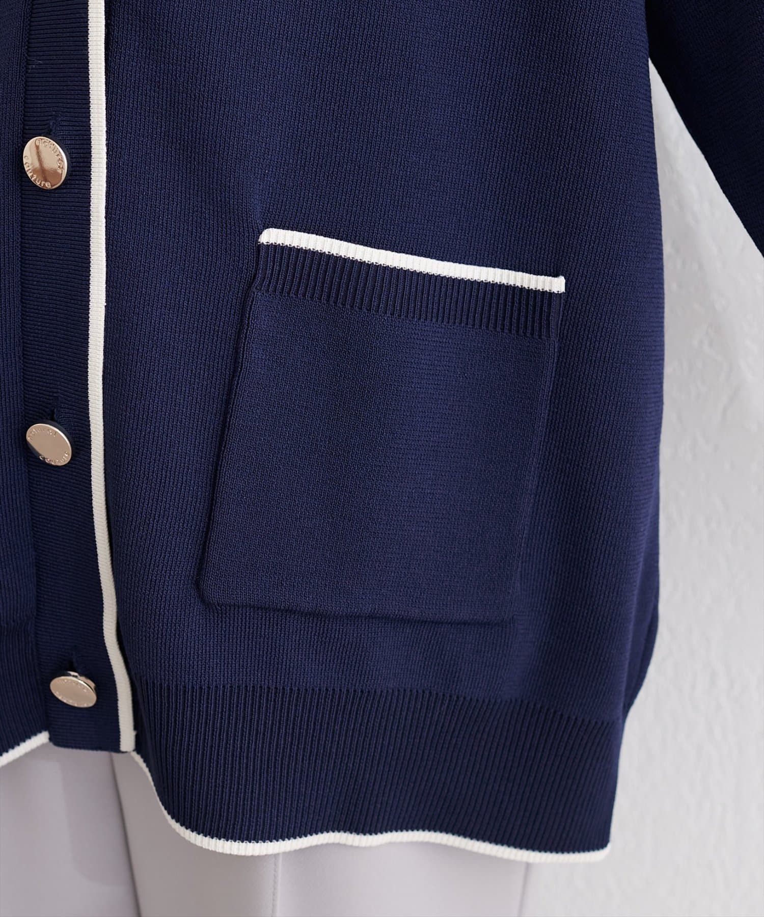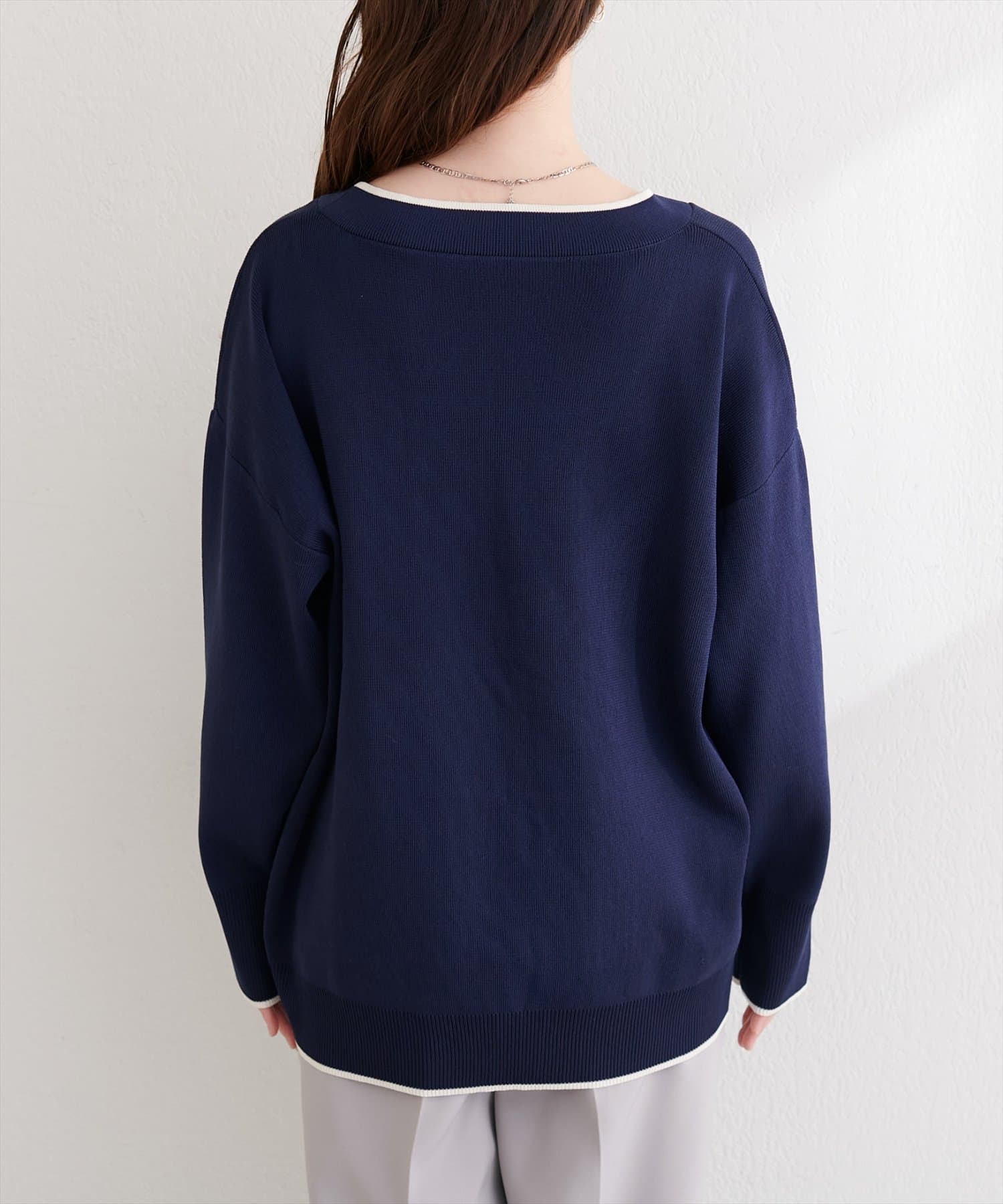広めのキーネックのラインがデコルテを美しく、シュッとした印象にしてくれます。