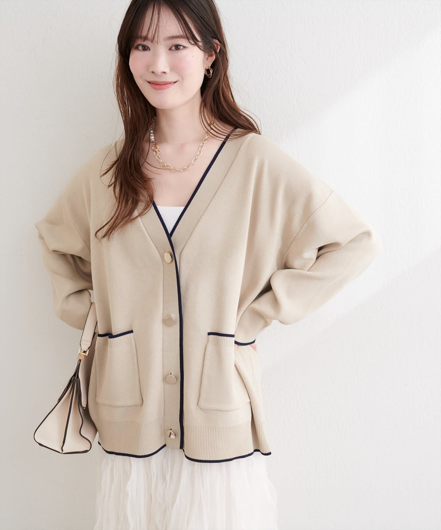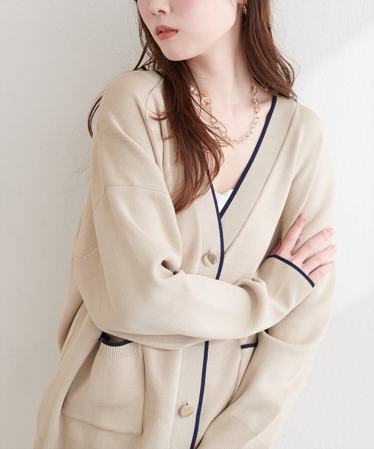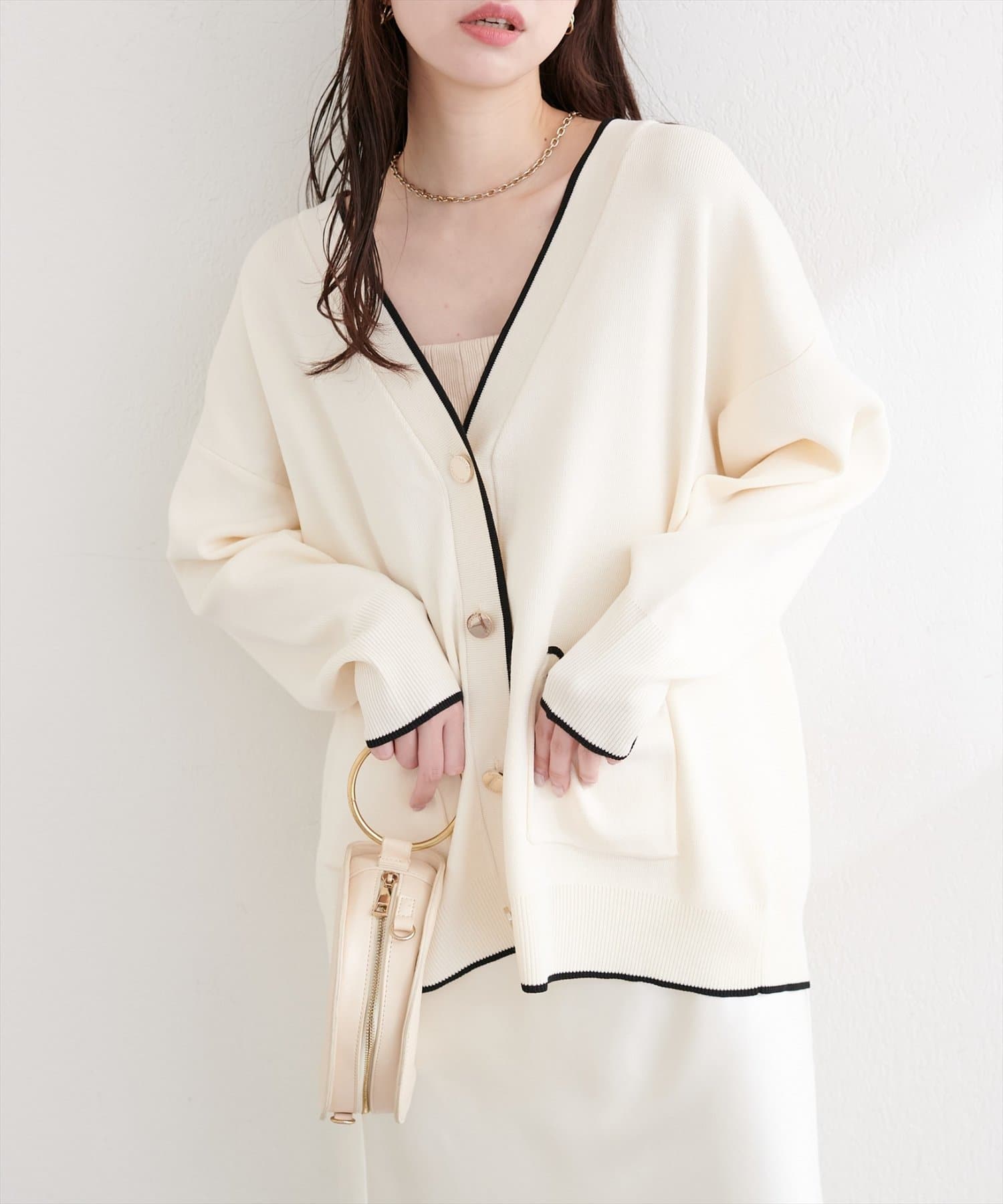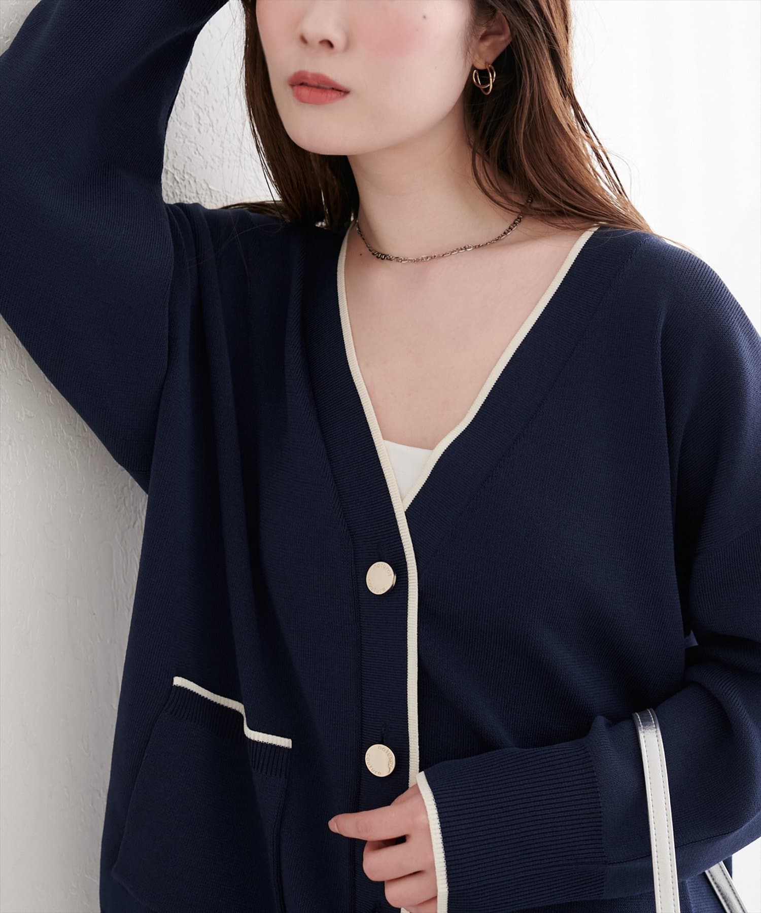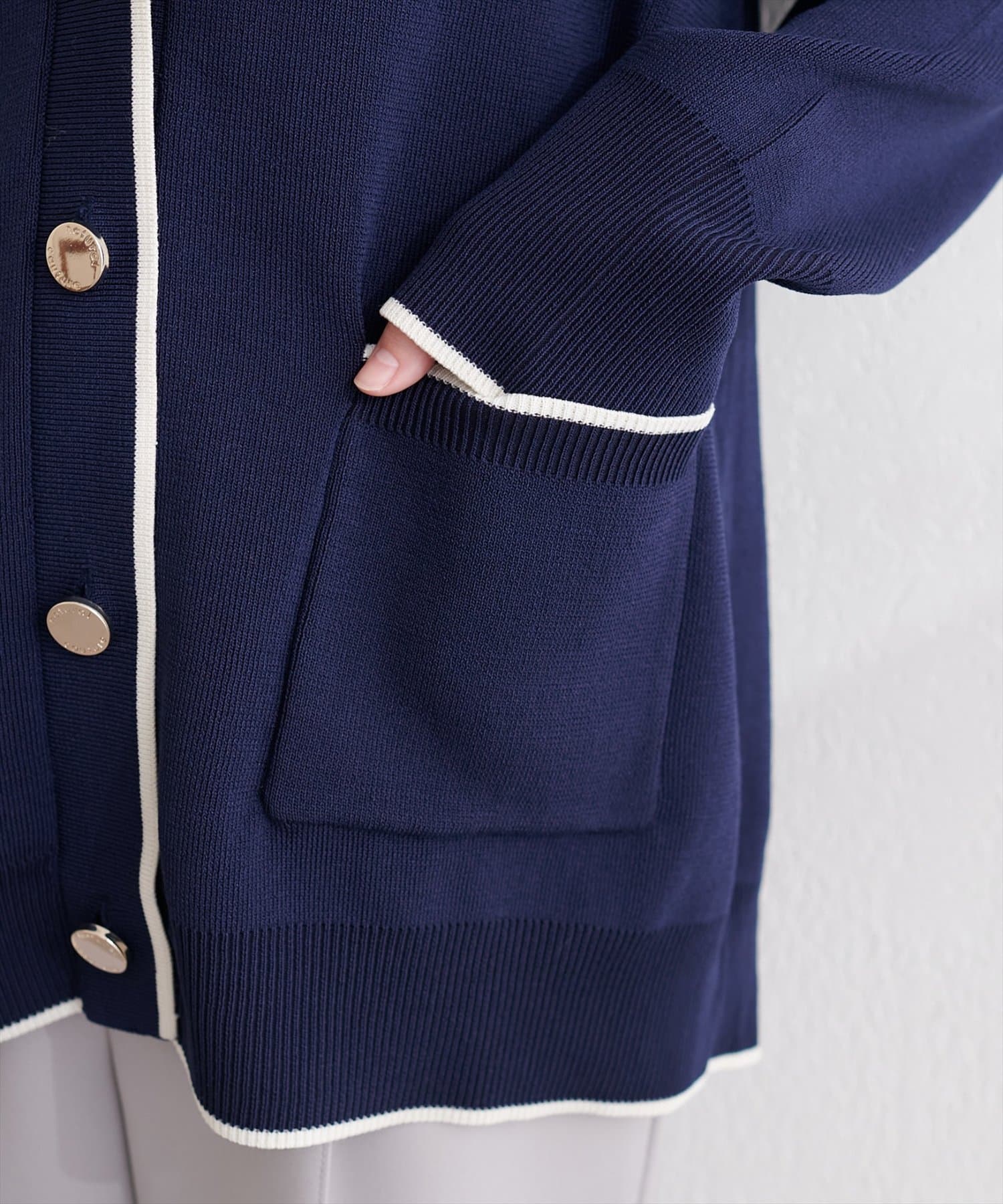 広めのキーネックのラインがデコルテを美しく、シュッとした印象にしてくれます。