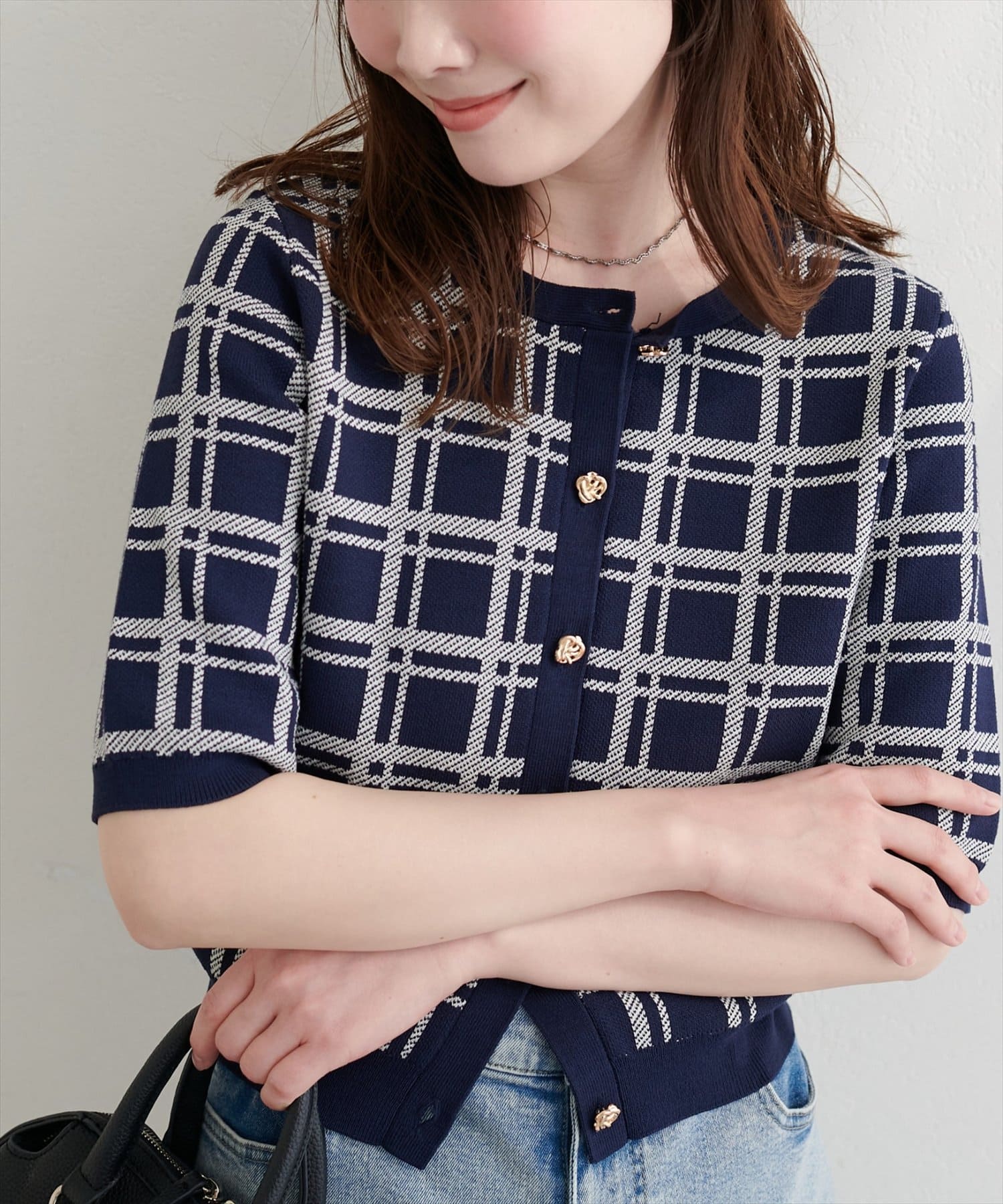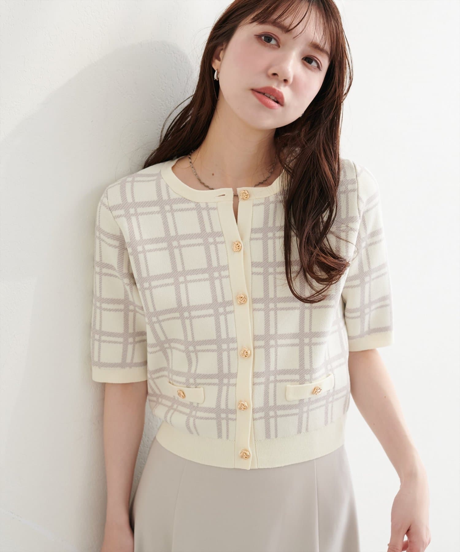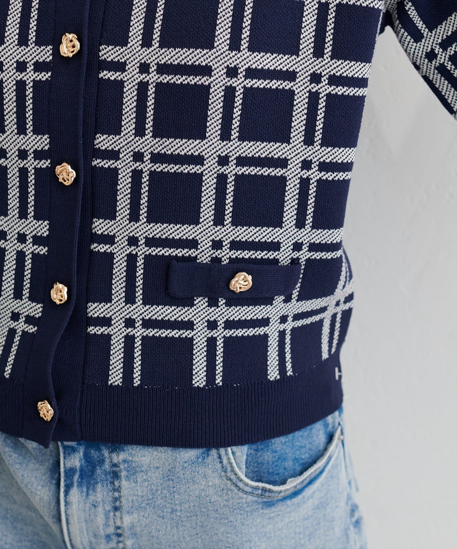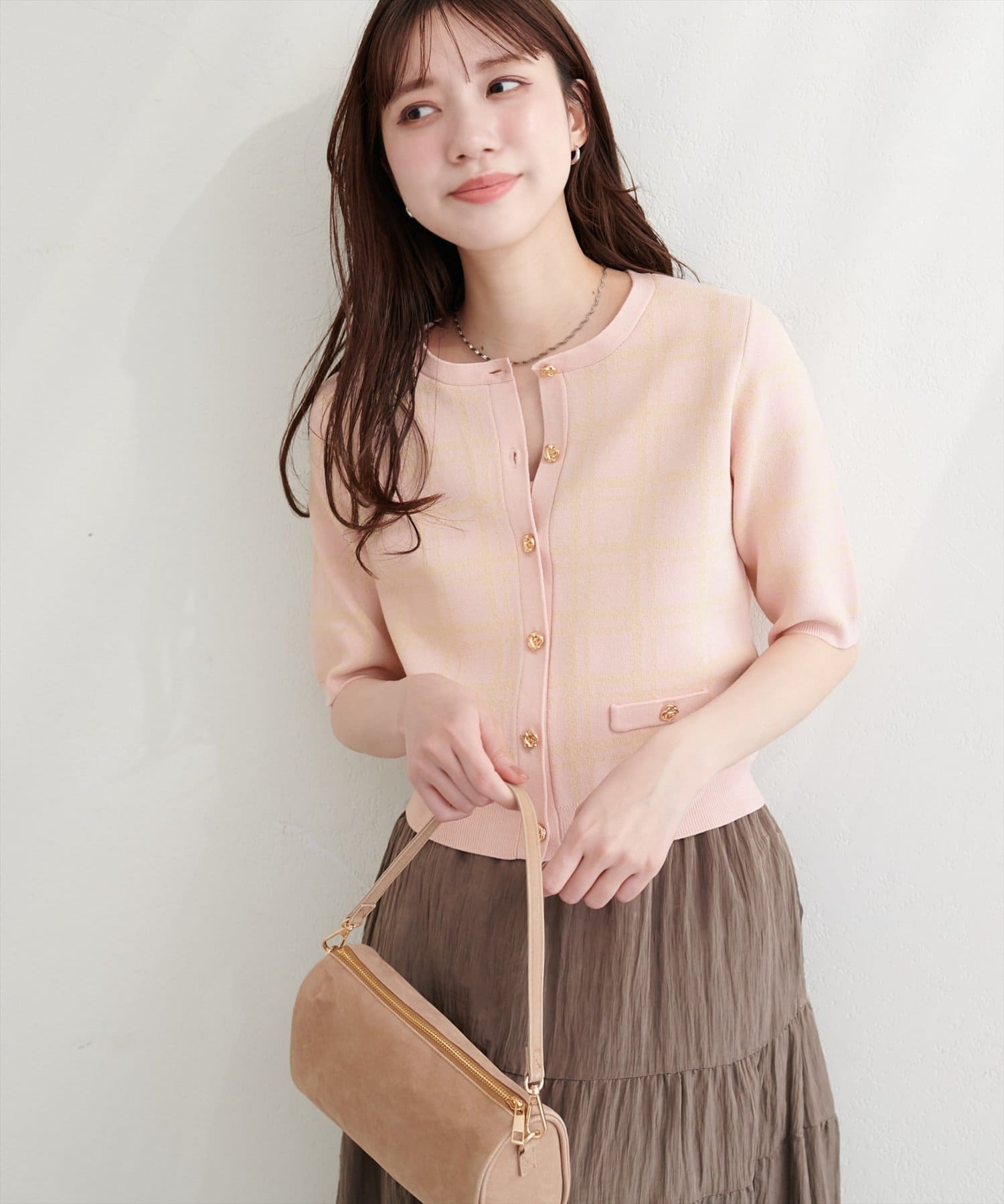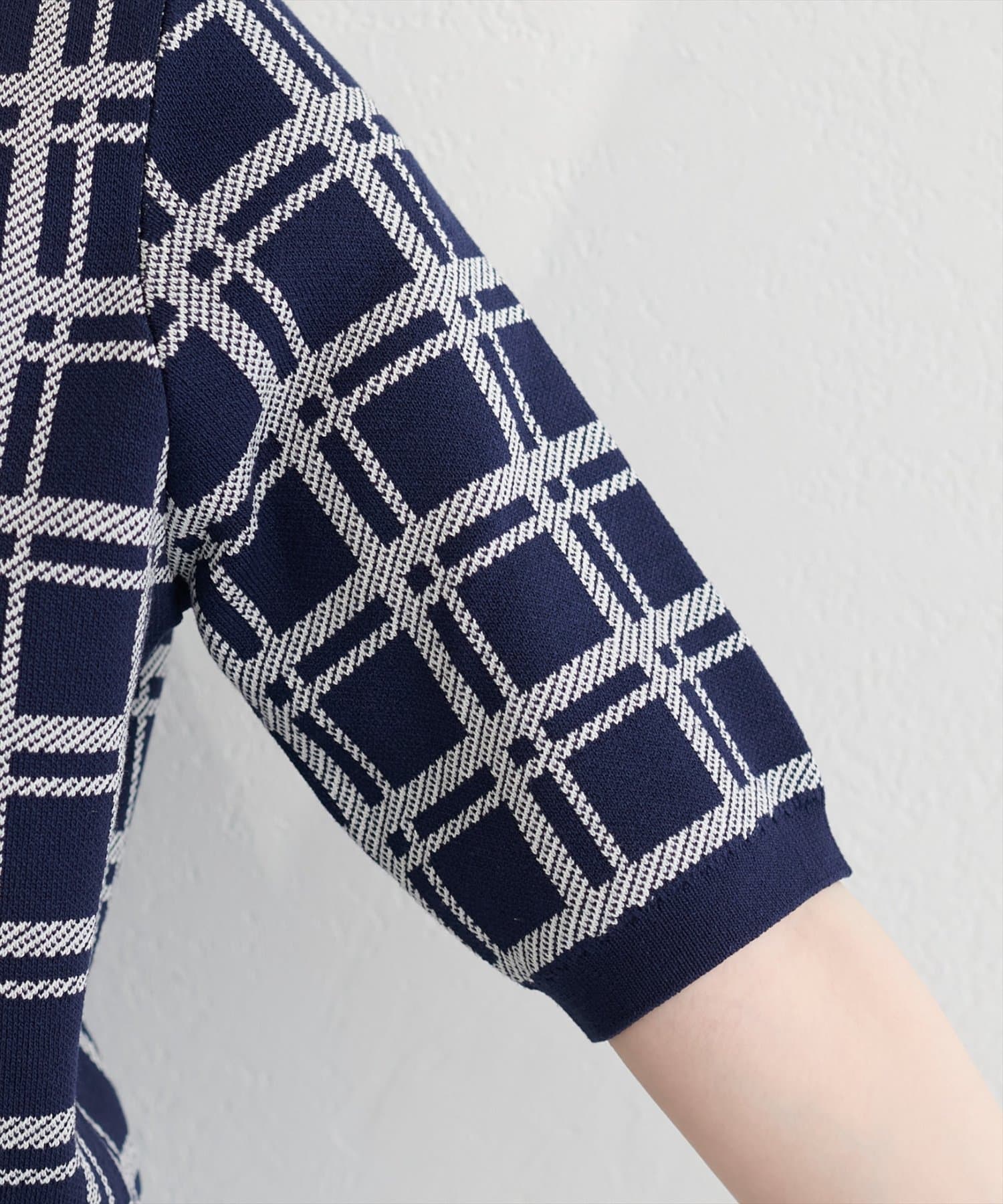 全体にあしらわれた繊細なチェック柄は、主張しすぎず、上品で落ち着いた印象を与えます。