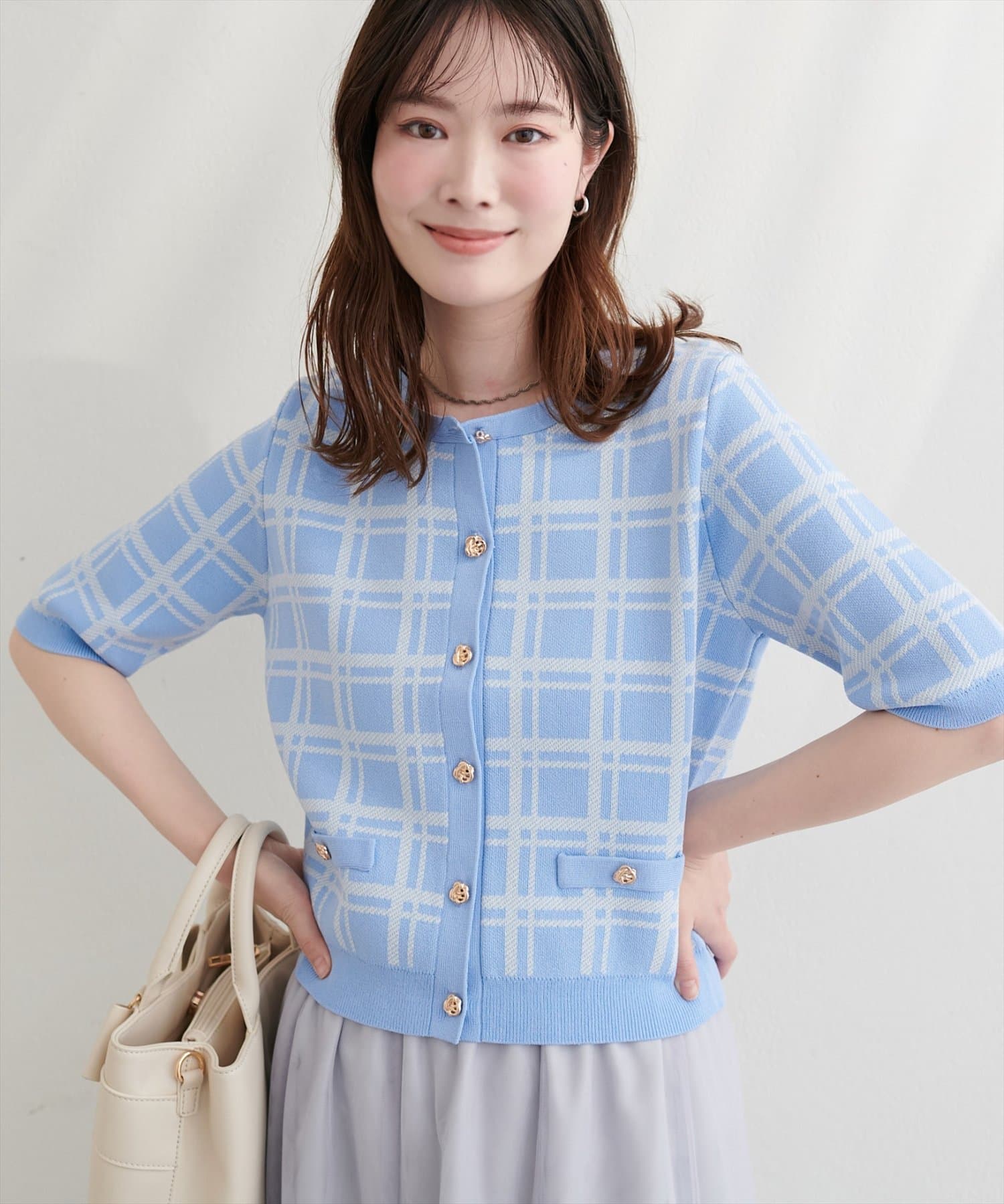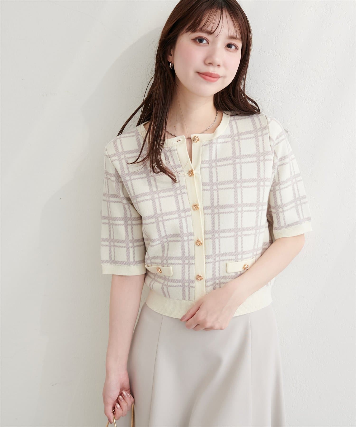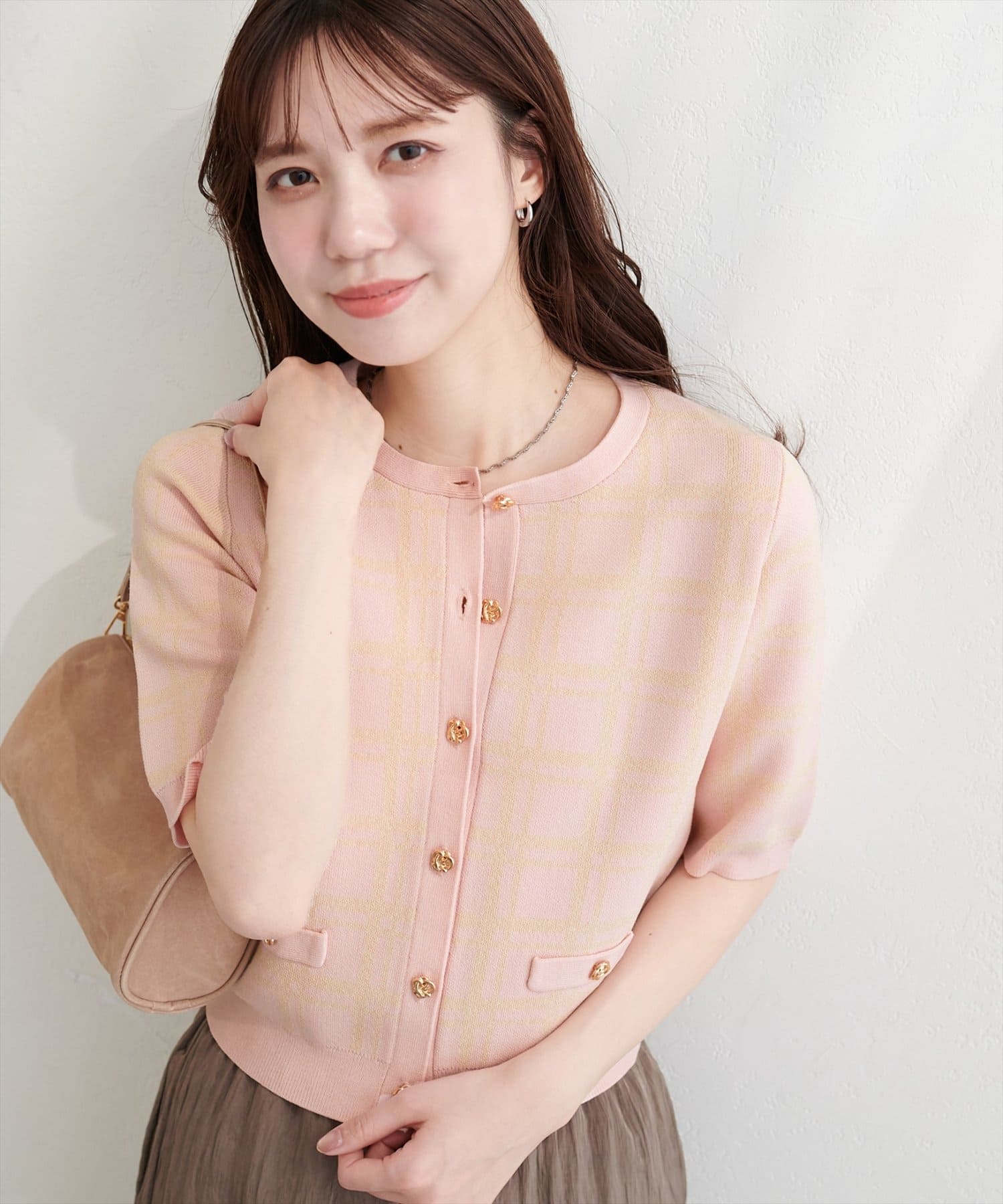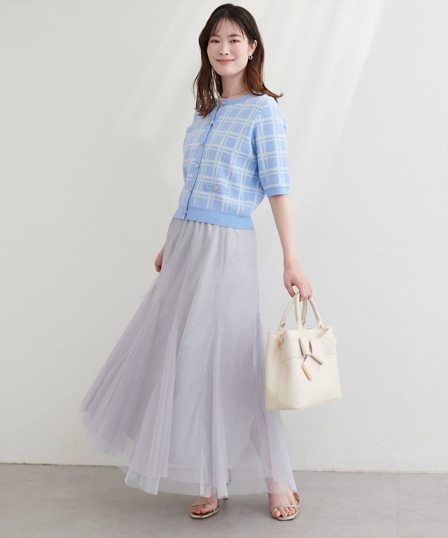 全体にあしらわれた繊細なチェック柄は、主張しすぎず、上品で落ち着いた印象を与えます。