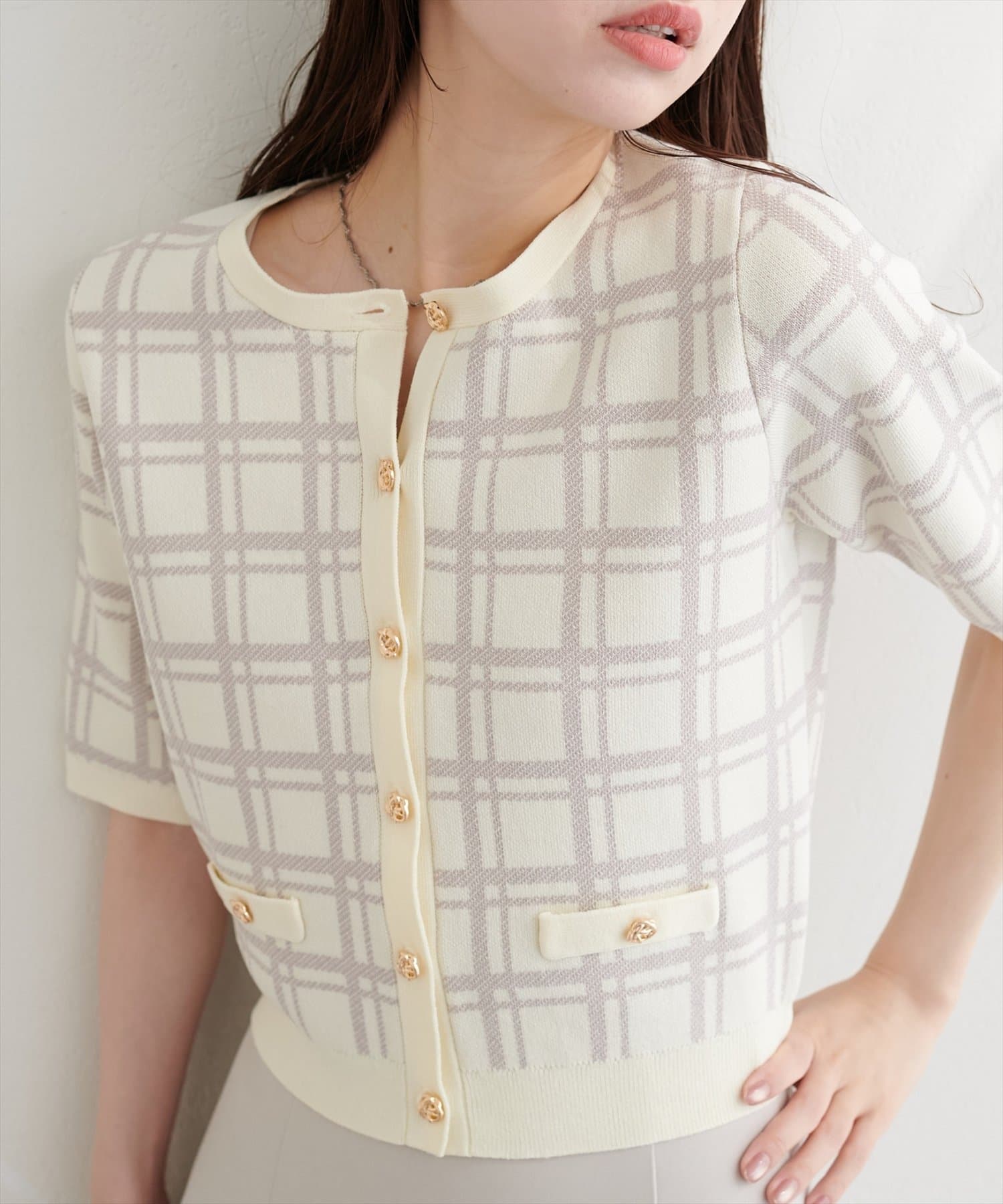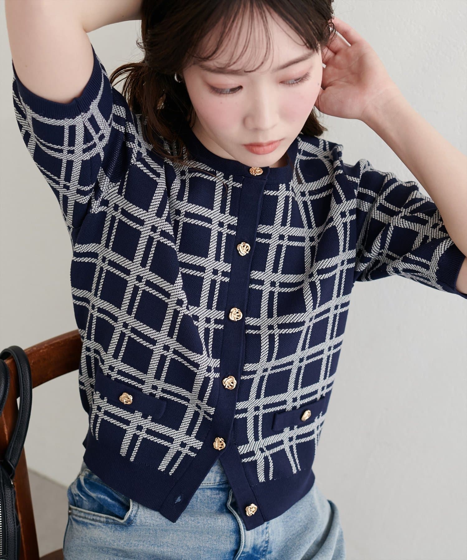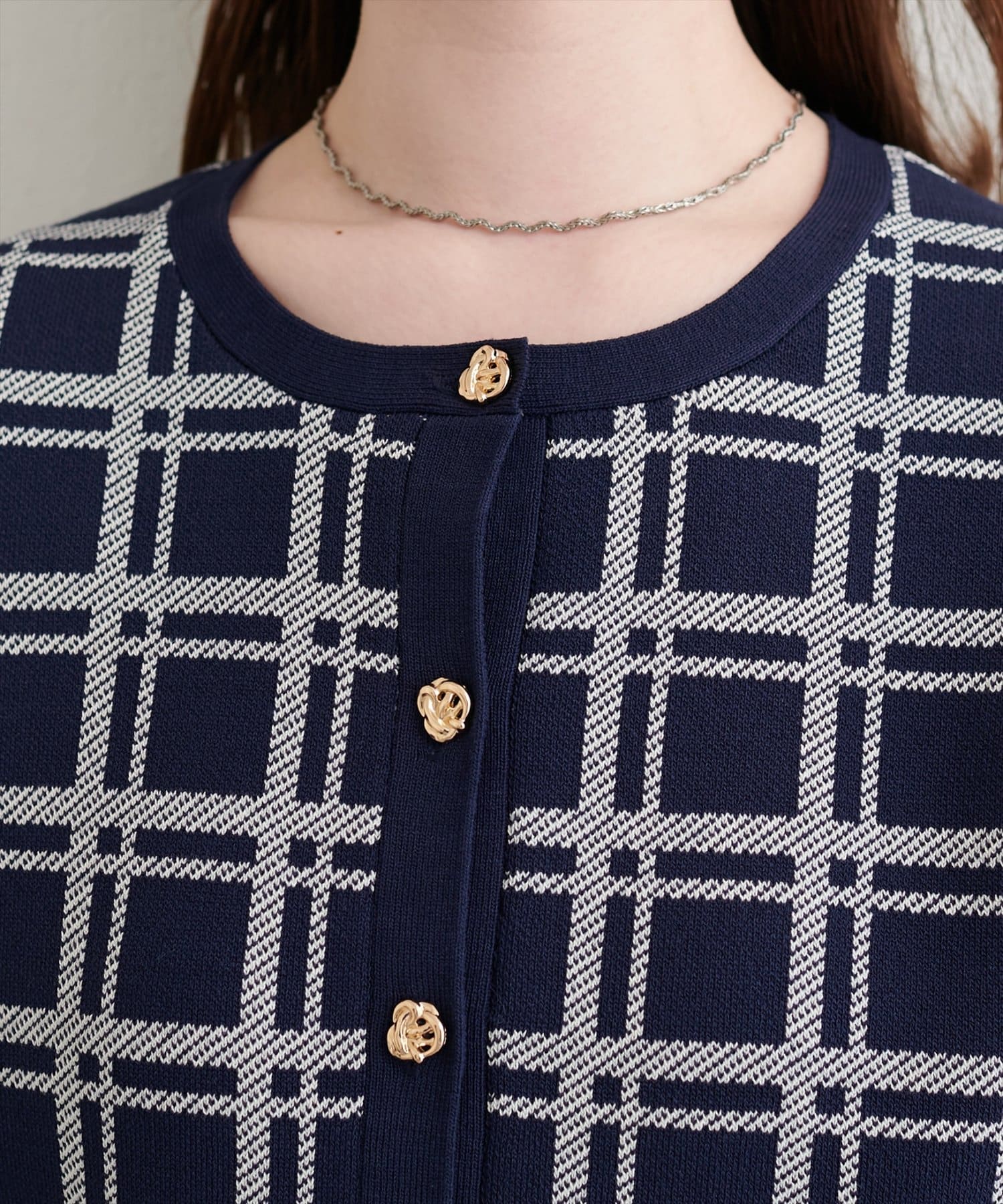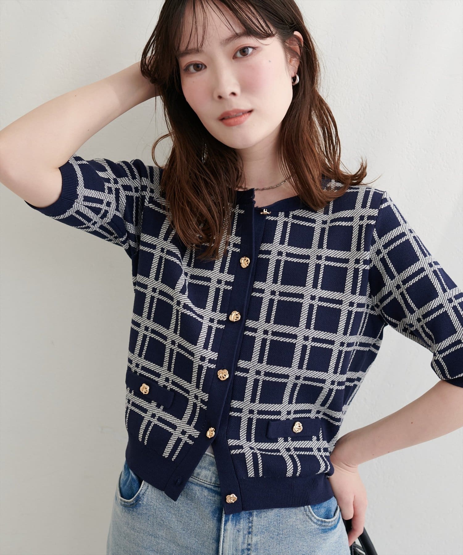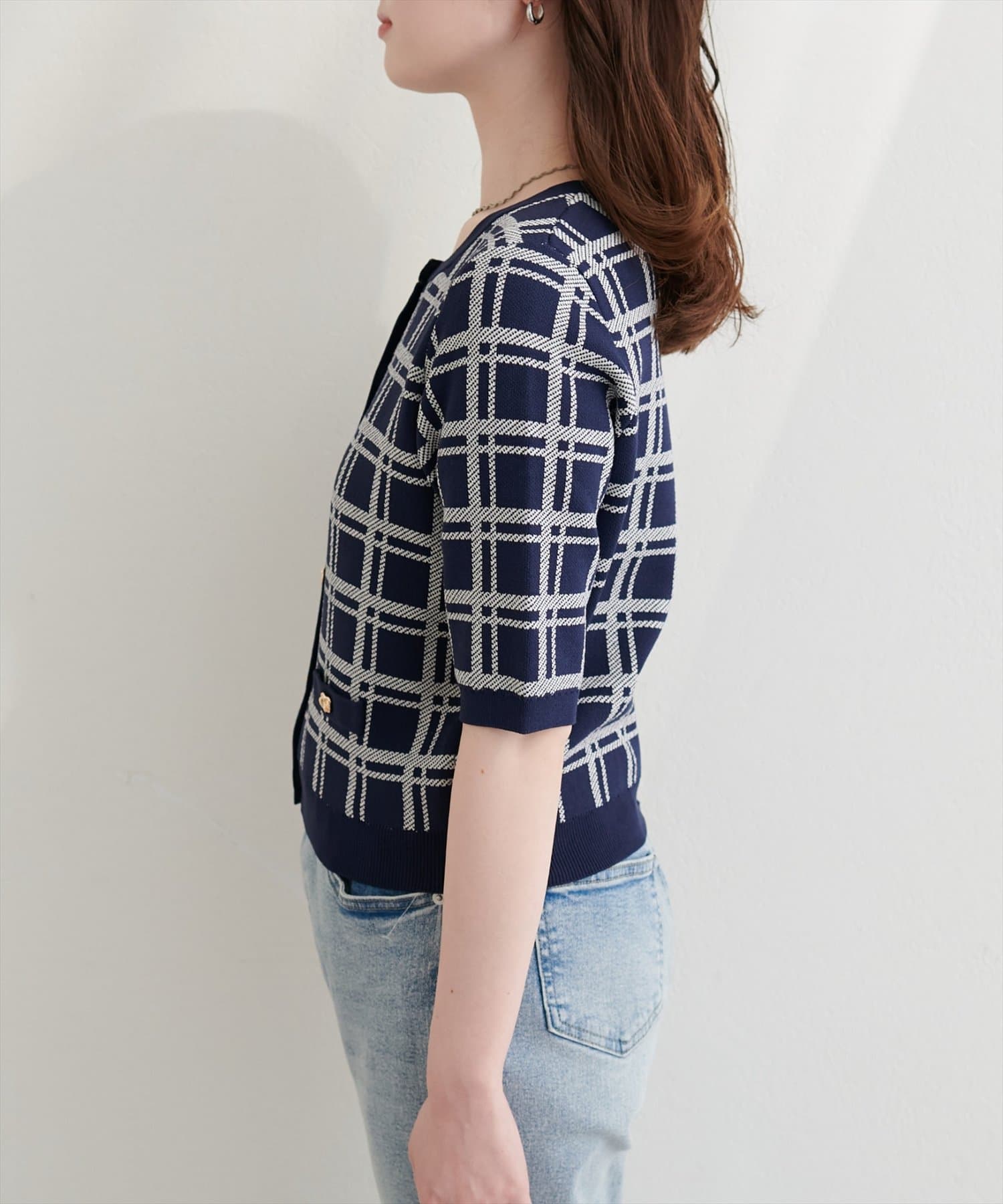 全体にあしらわれた繊細なチェック柄は、主張しすぎず、上品で落ち着いた印象を与えます。