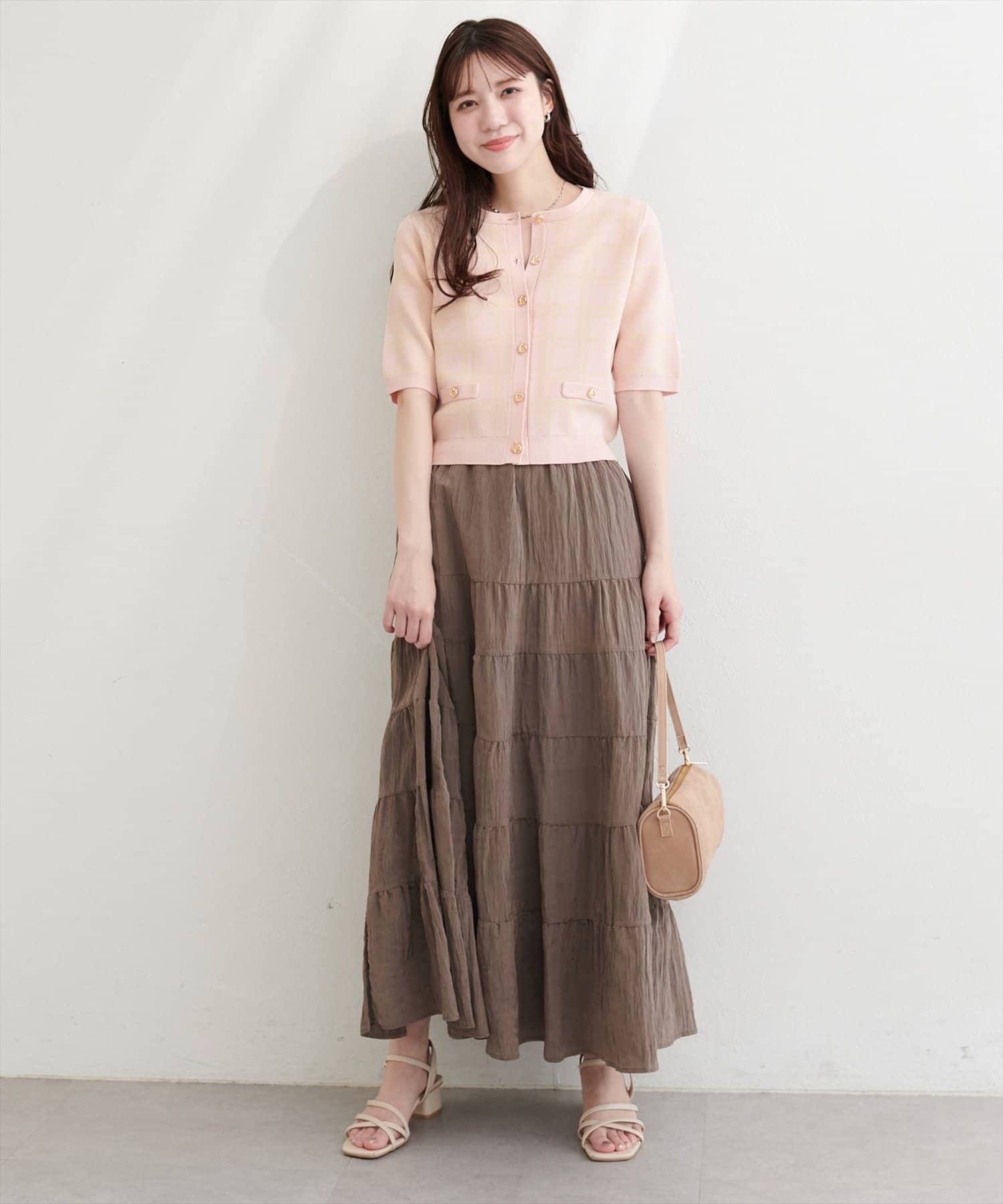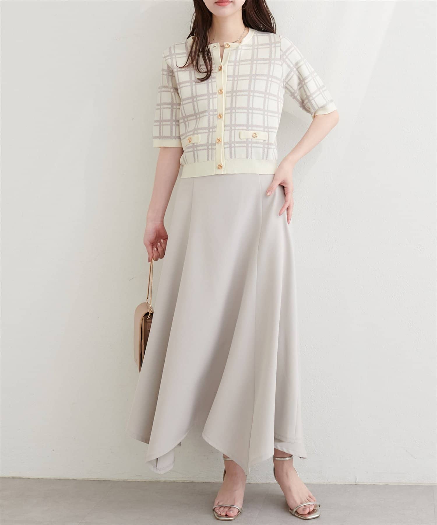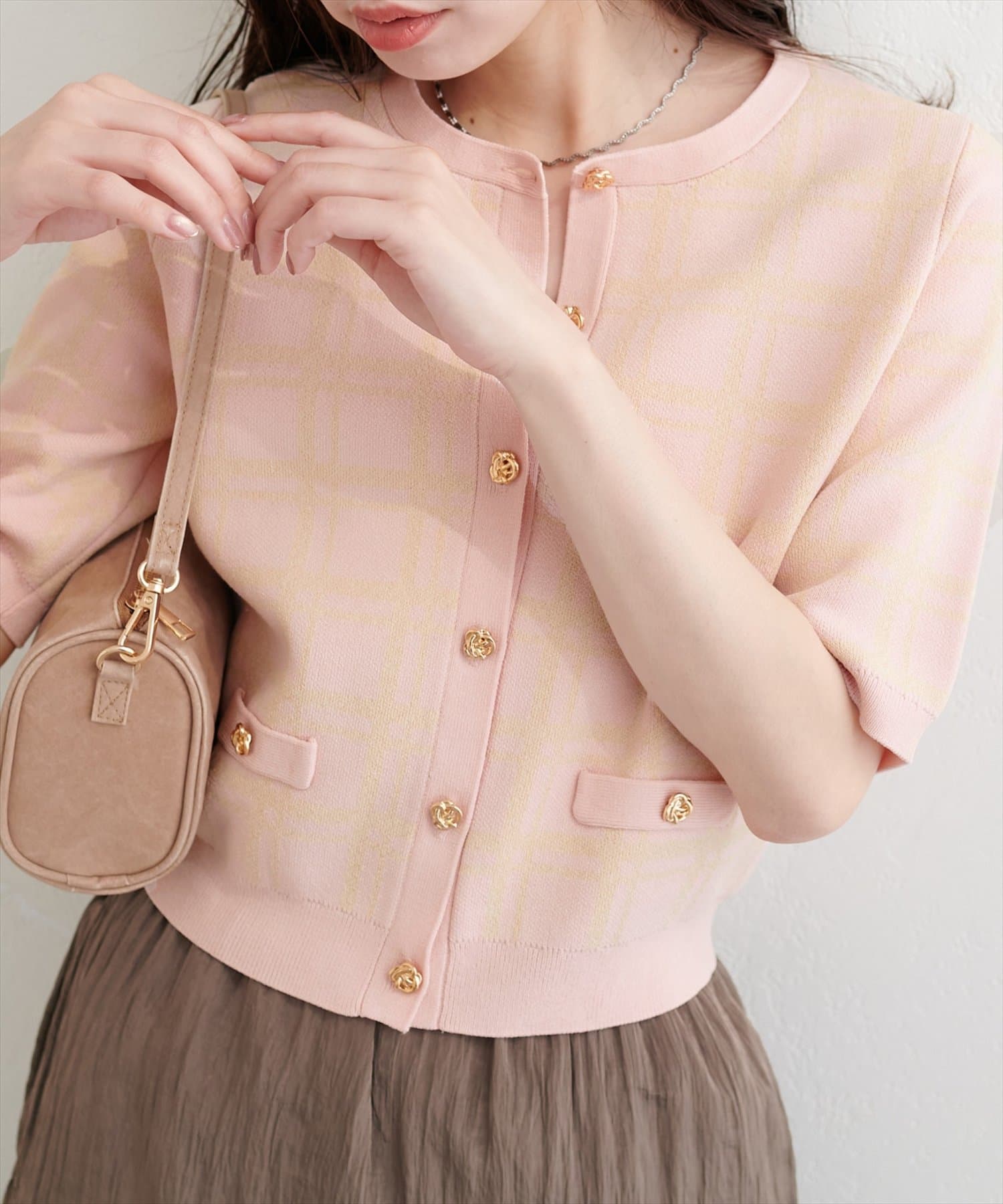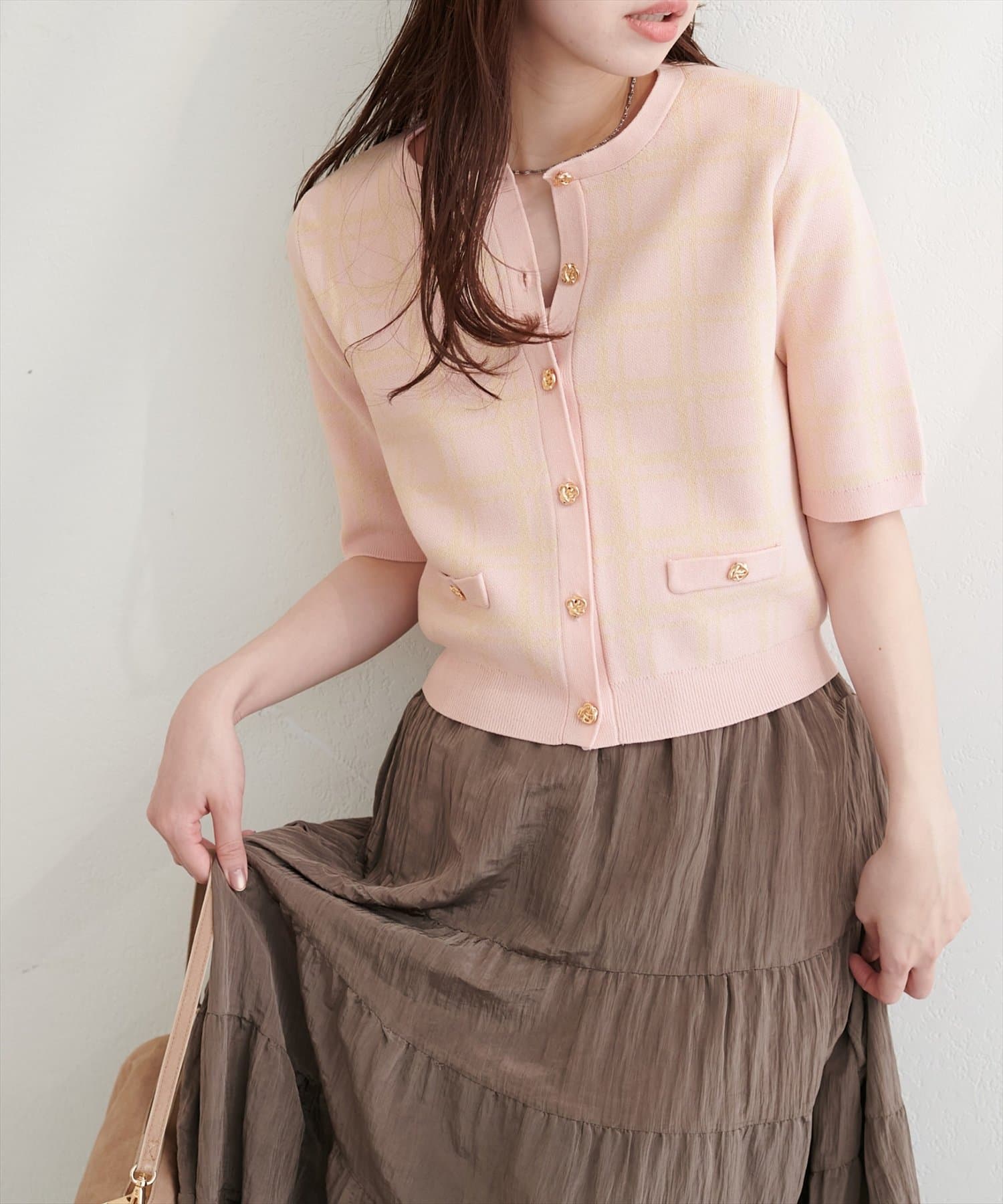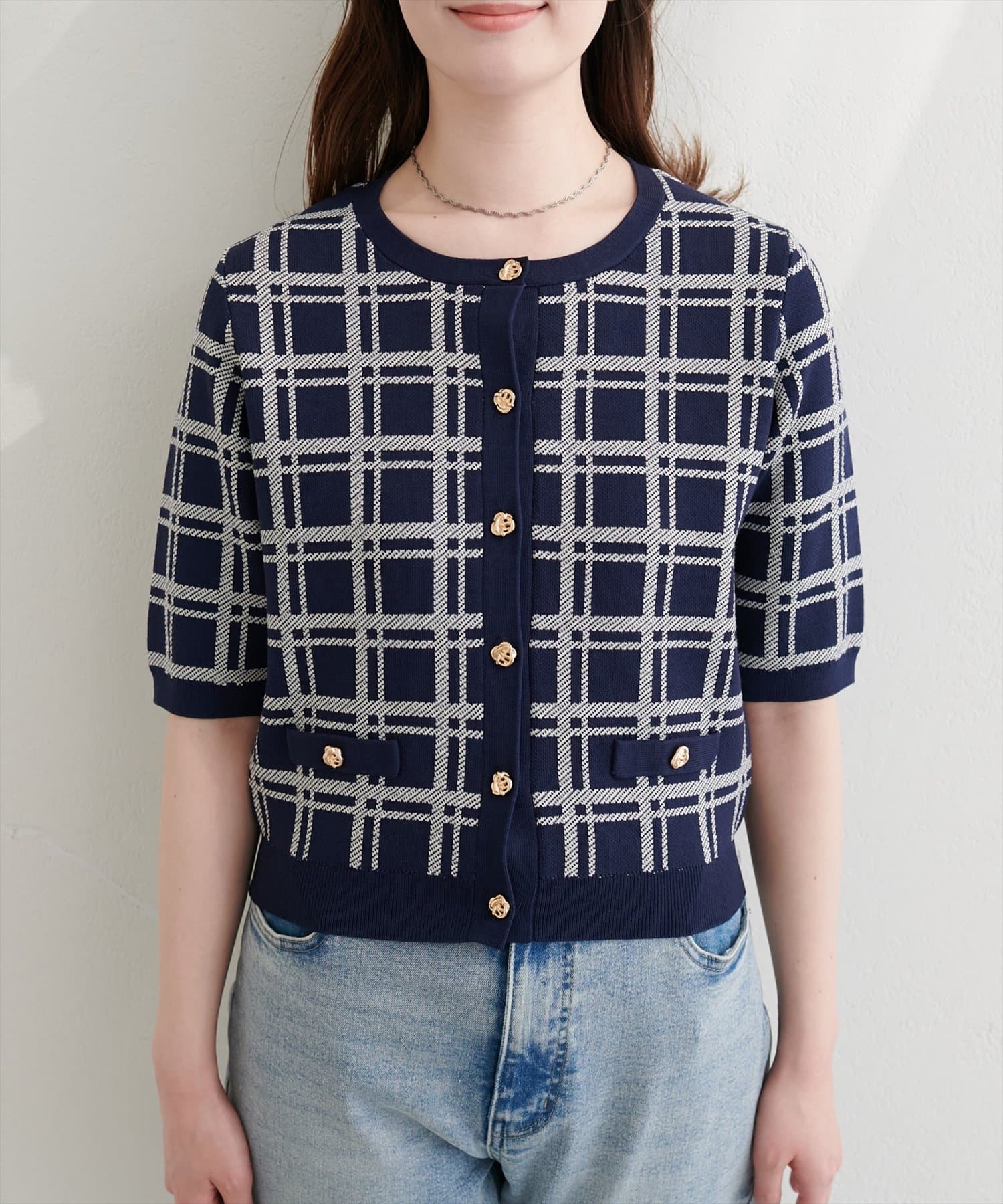 全体にあしらわれた繊細なチェック柄は、主張しすぎず、上品で落ち着いた印象を与えます。