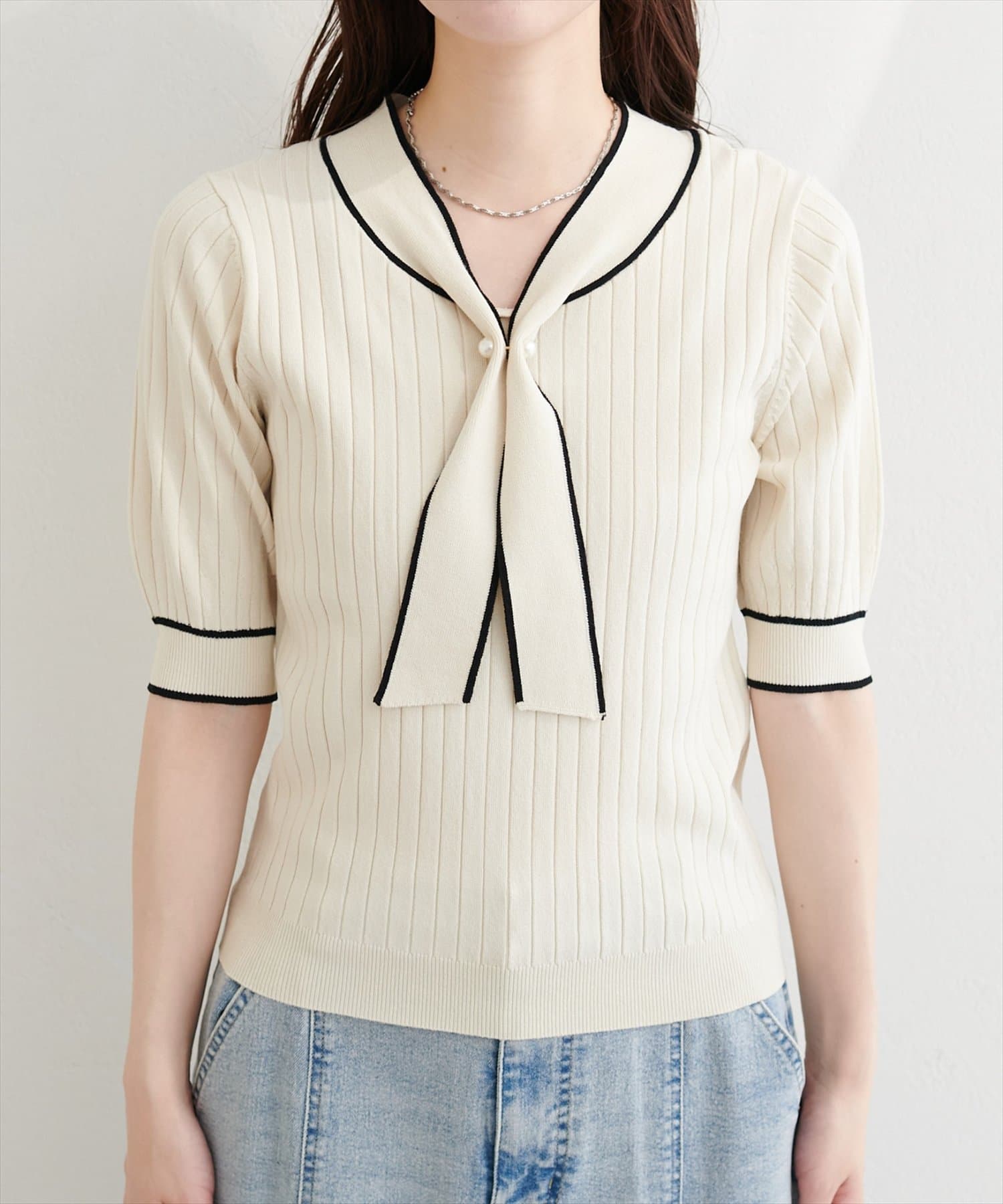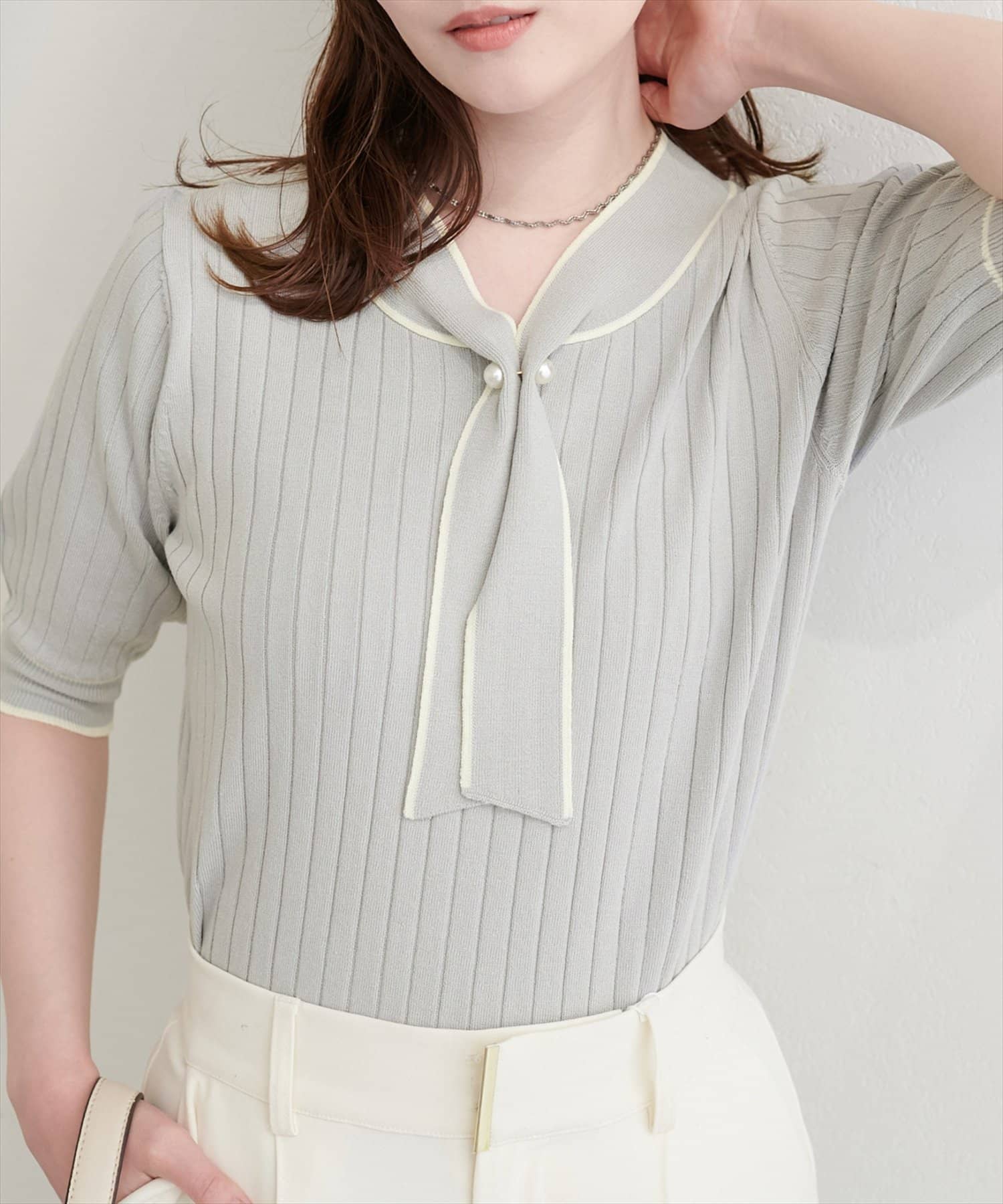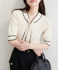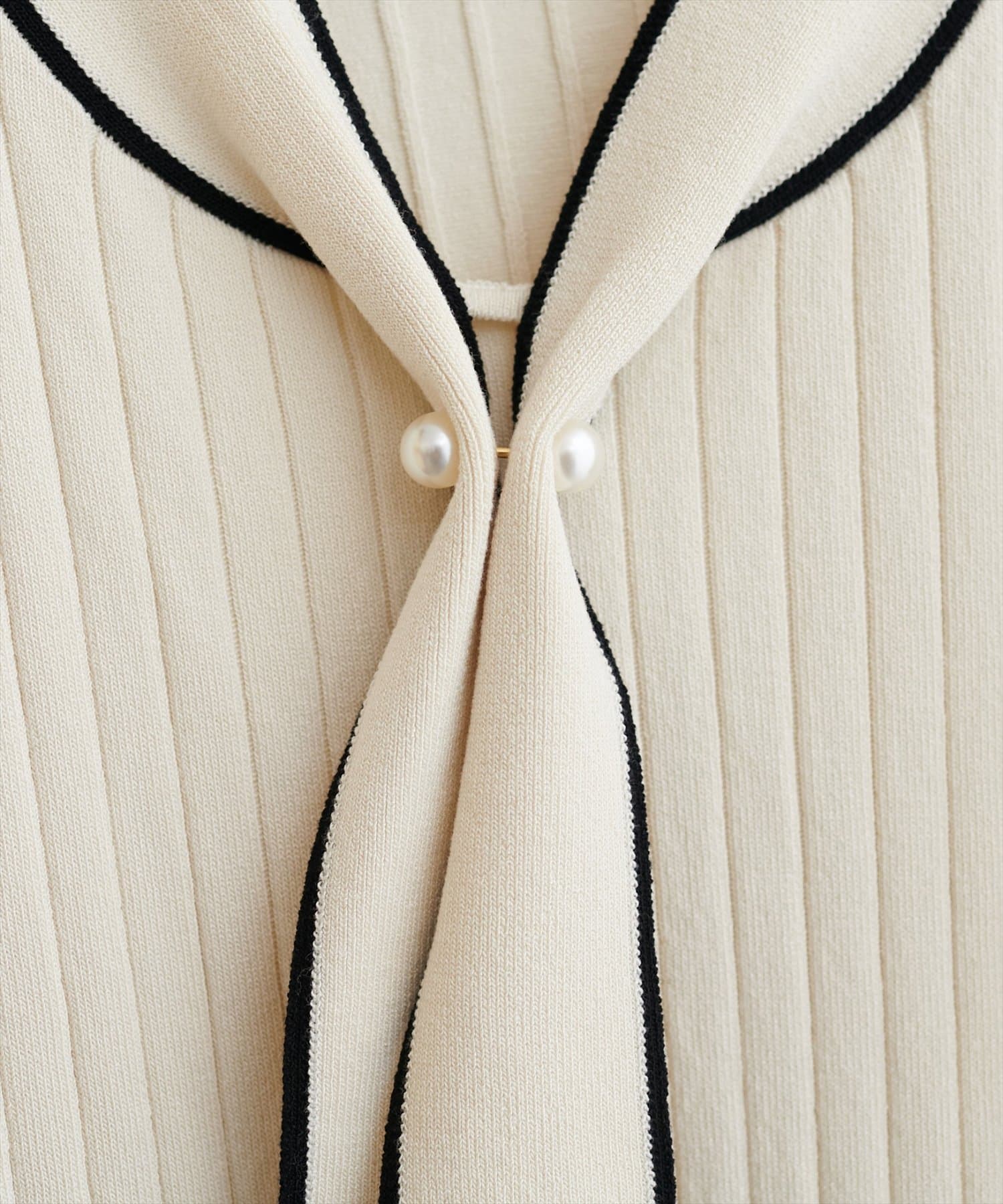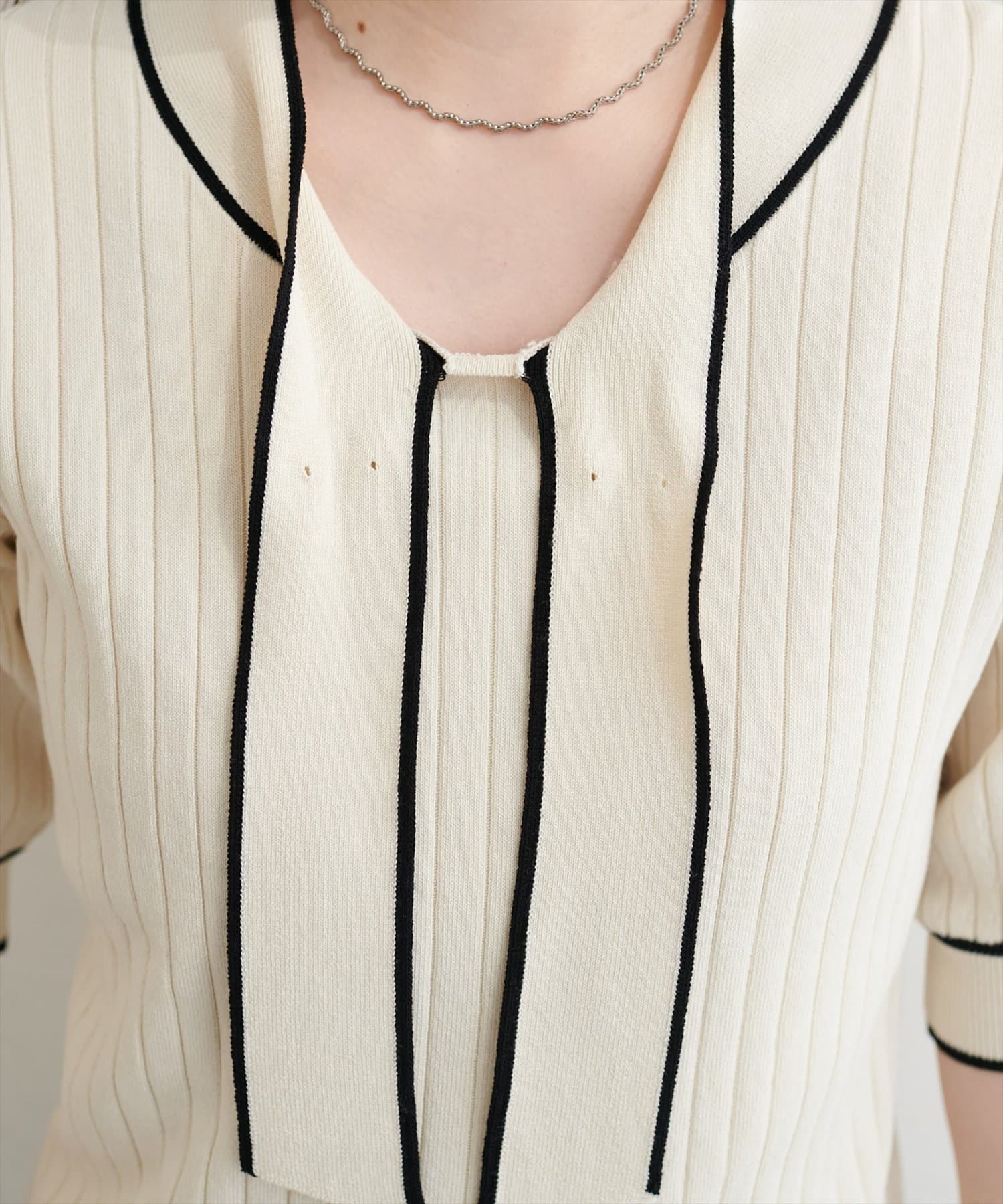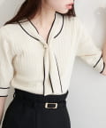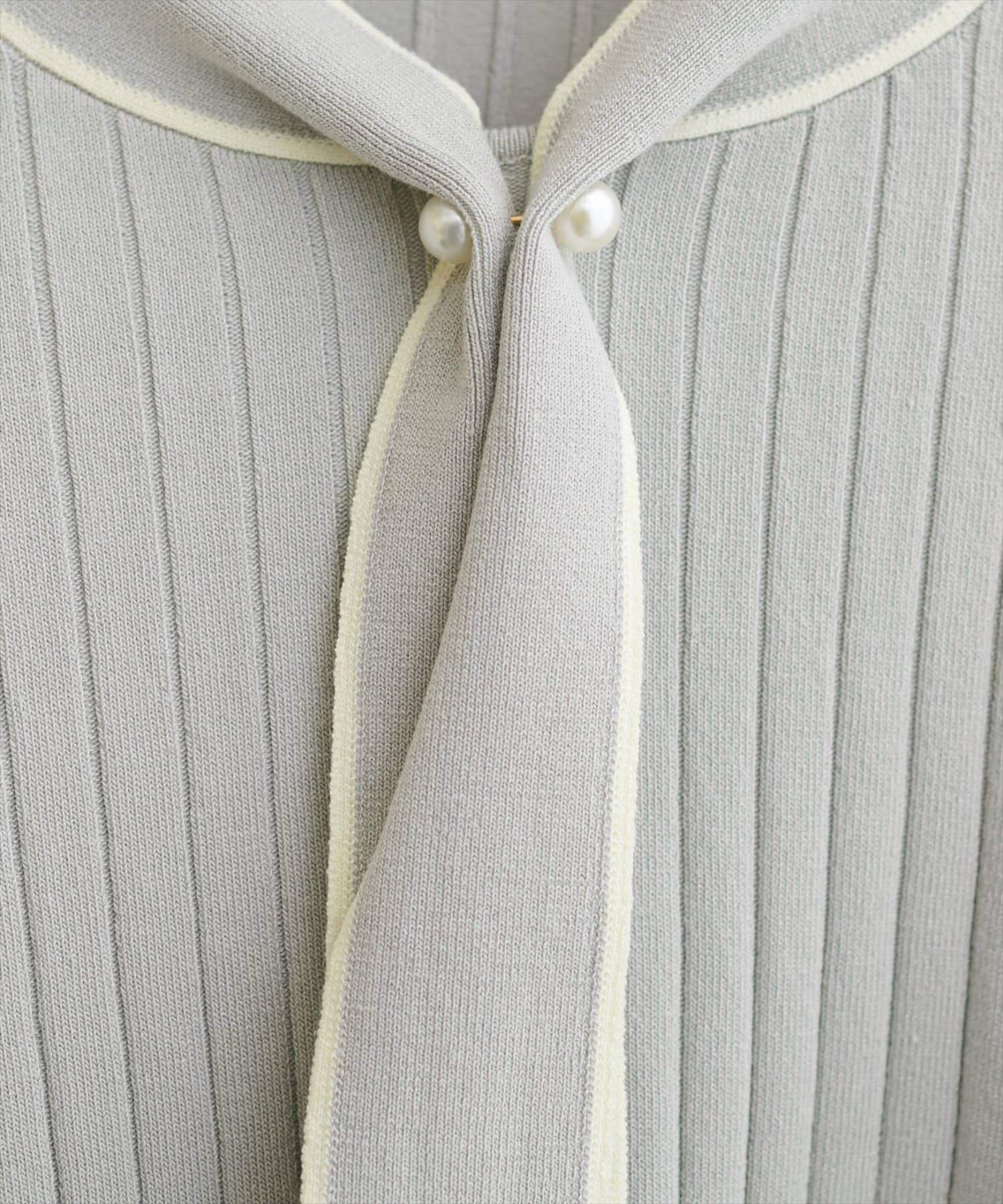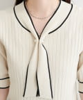 パール付きボータイバイカラーニット