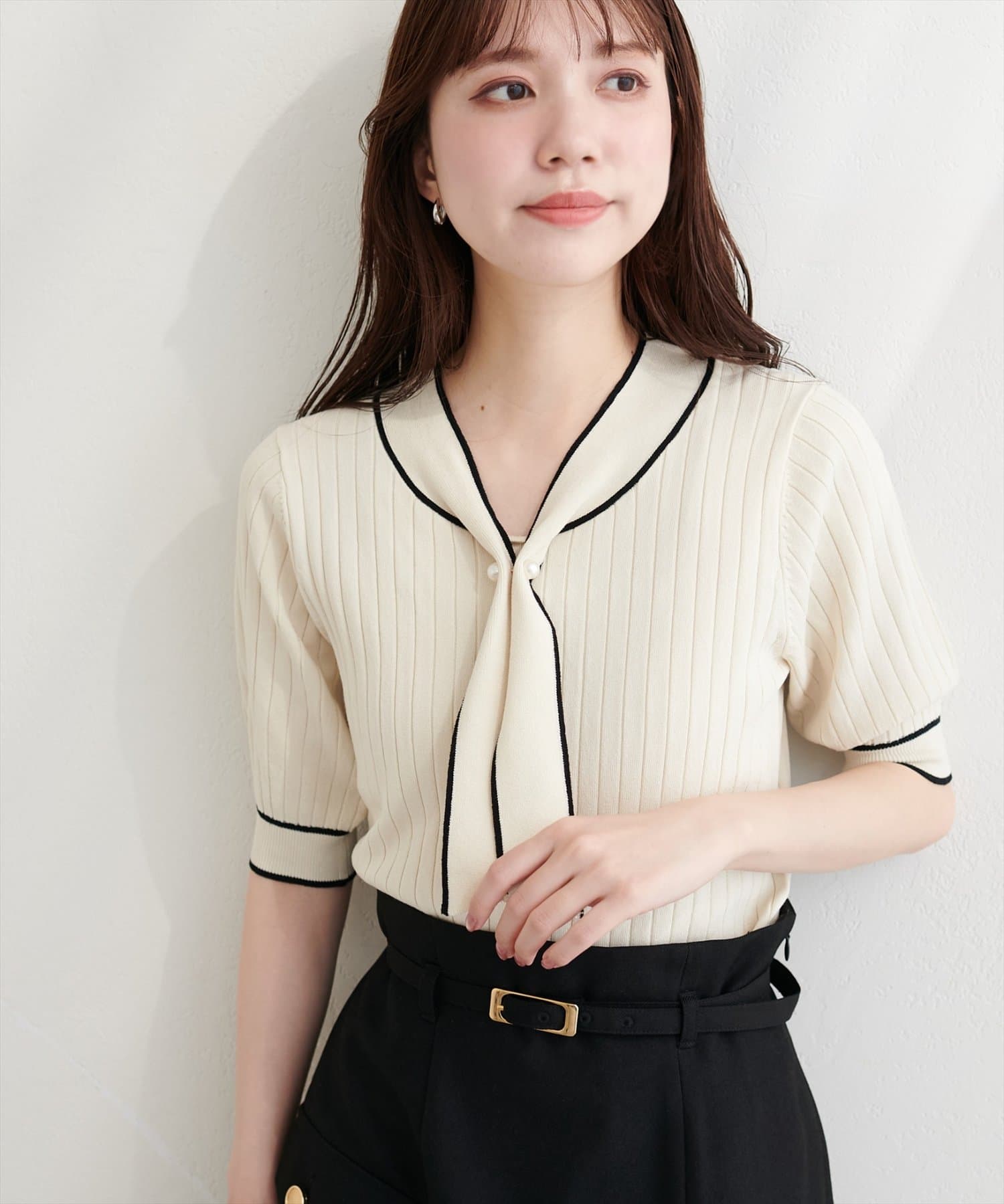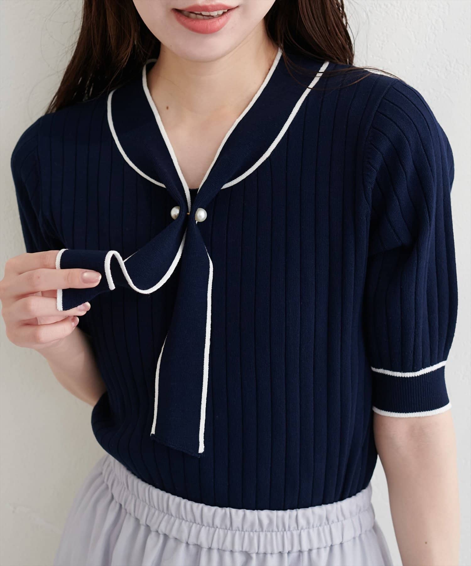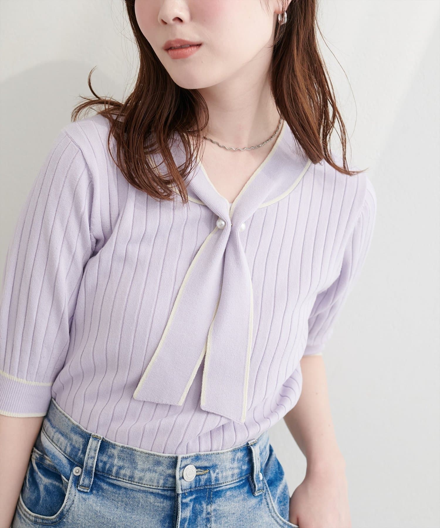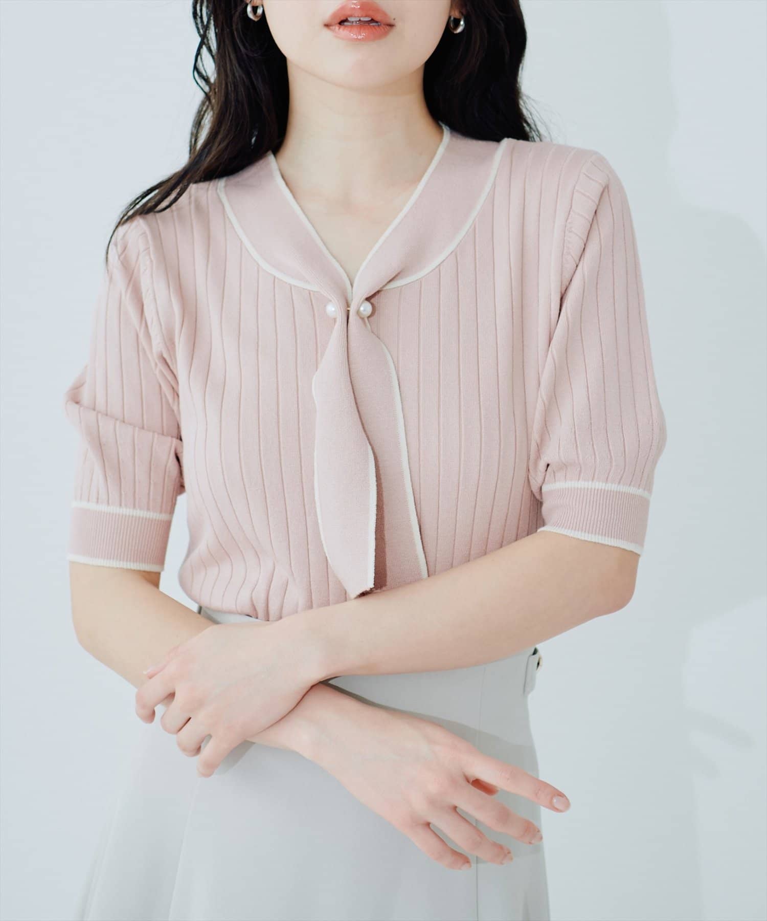 パール付きボータイバイカラーニット