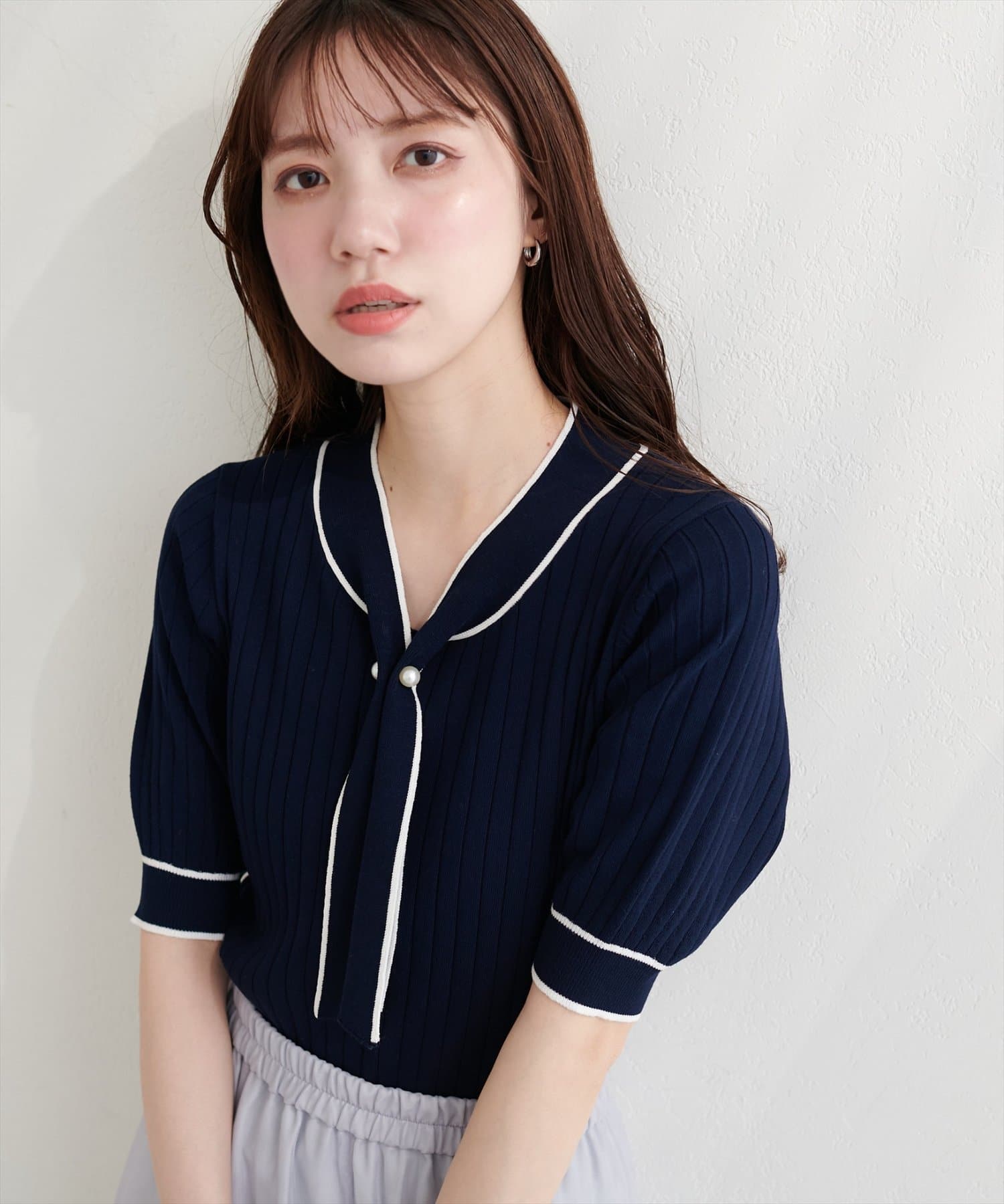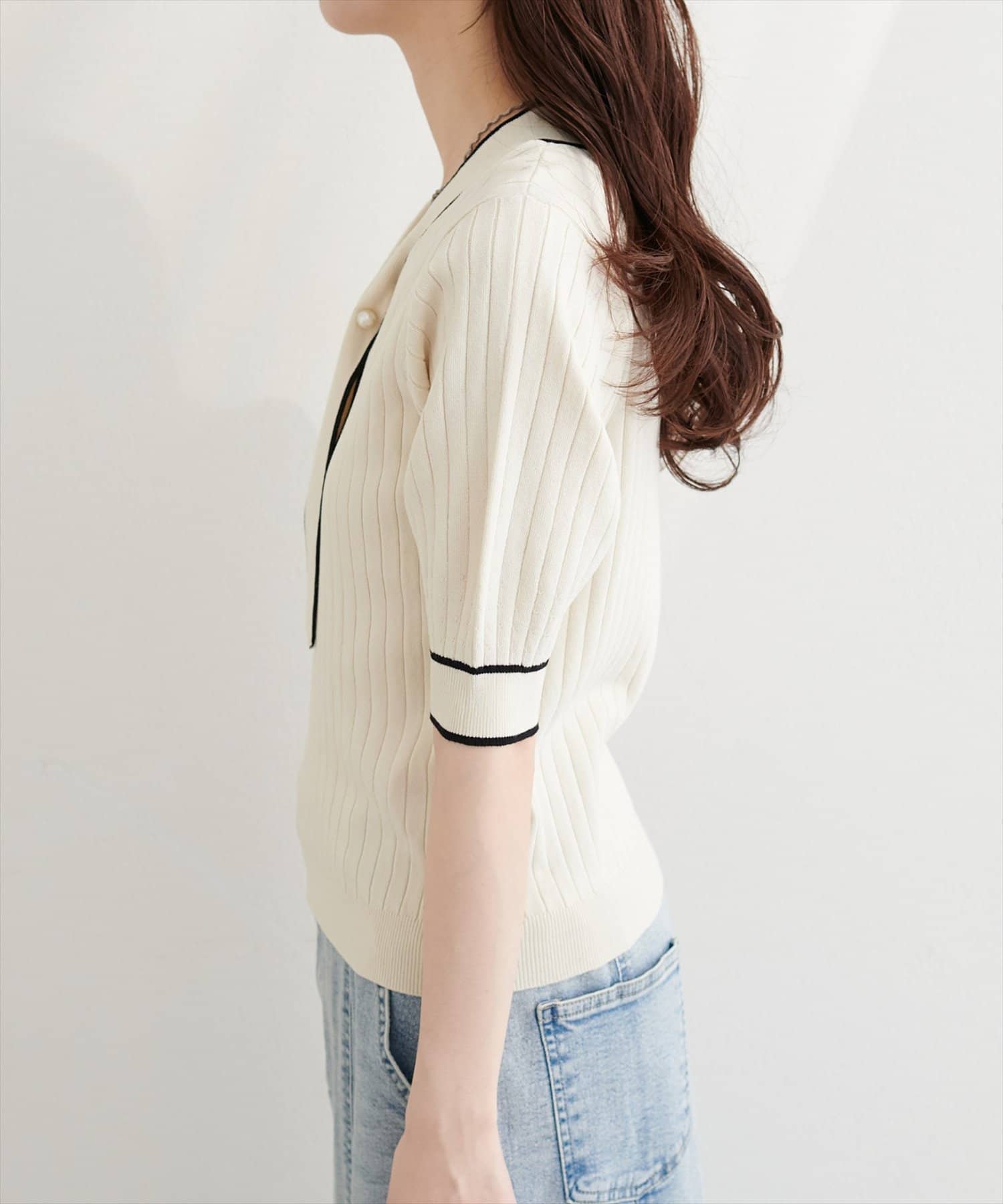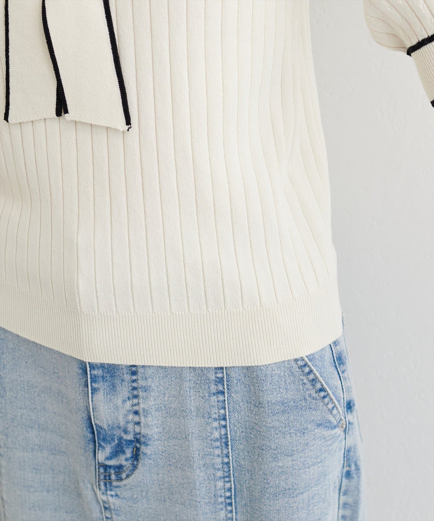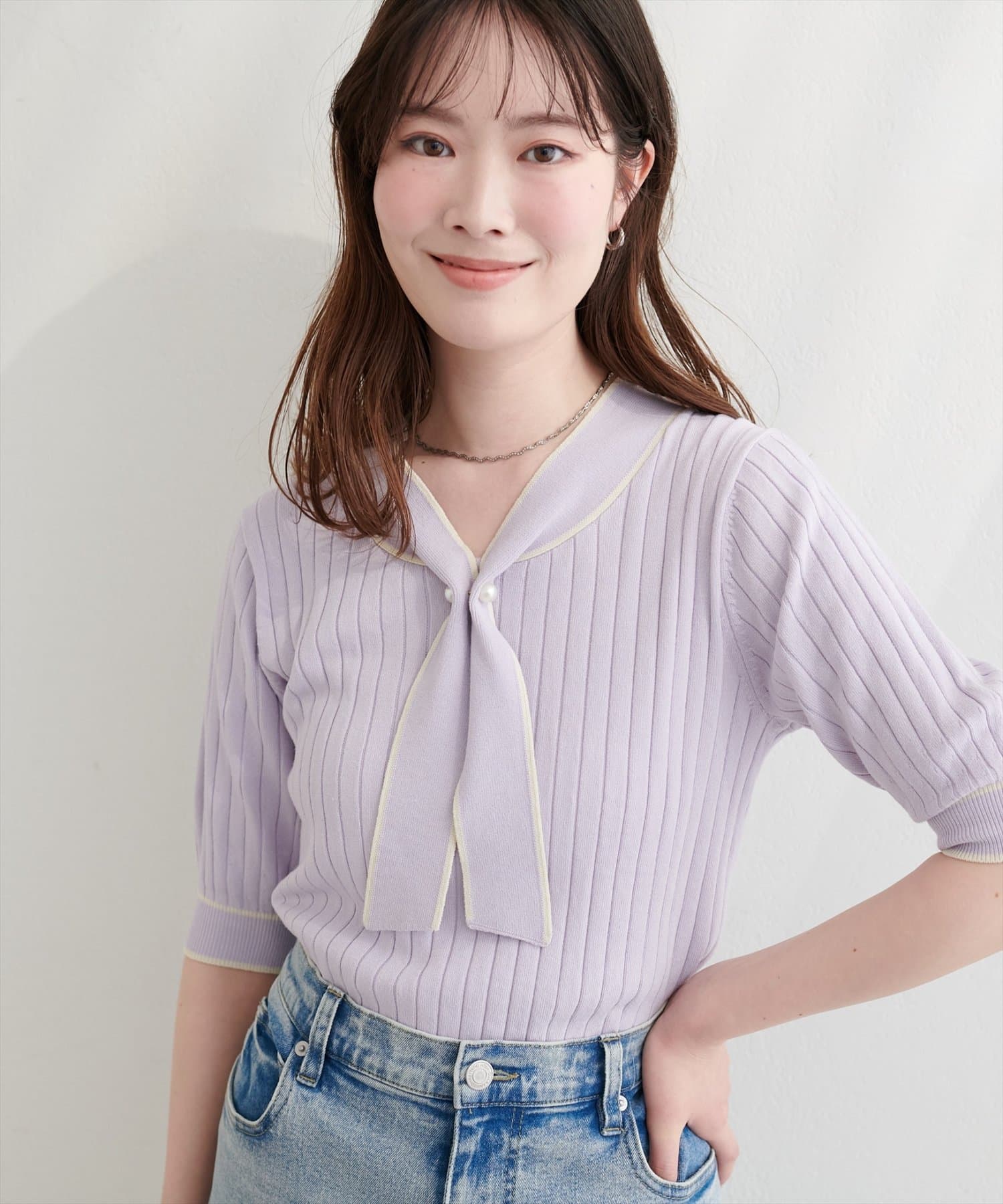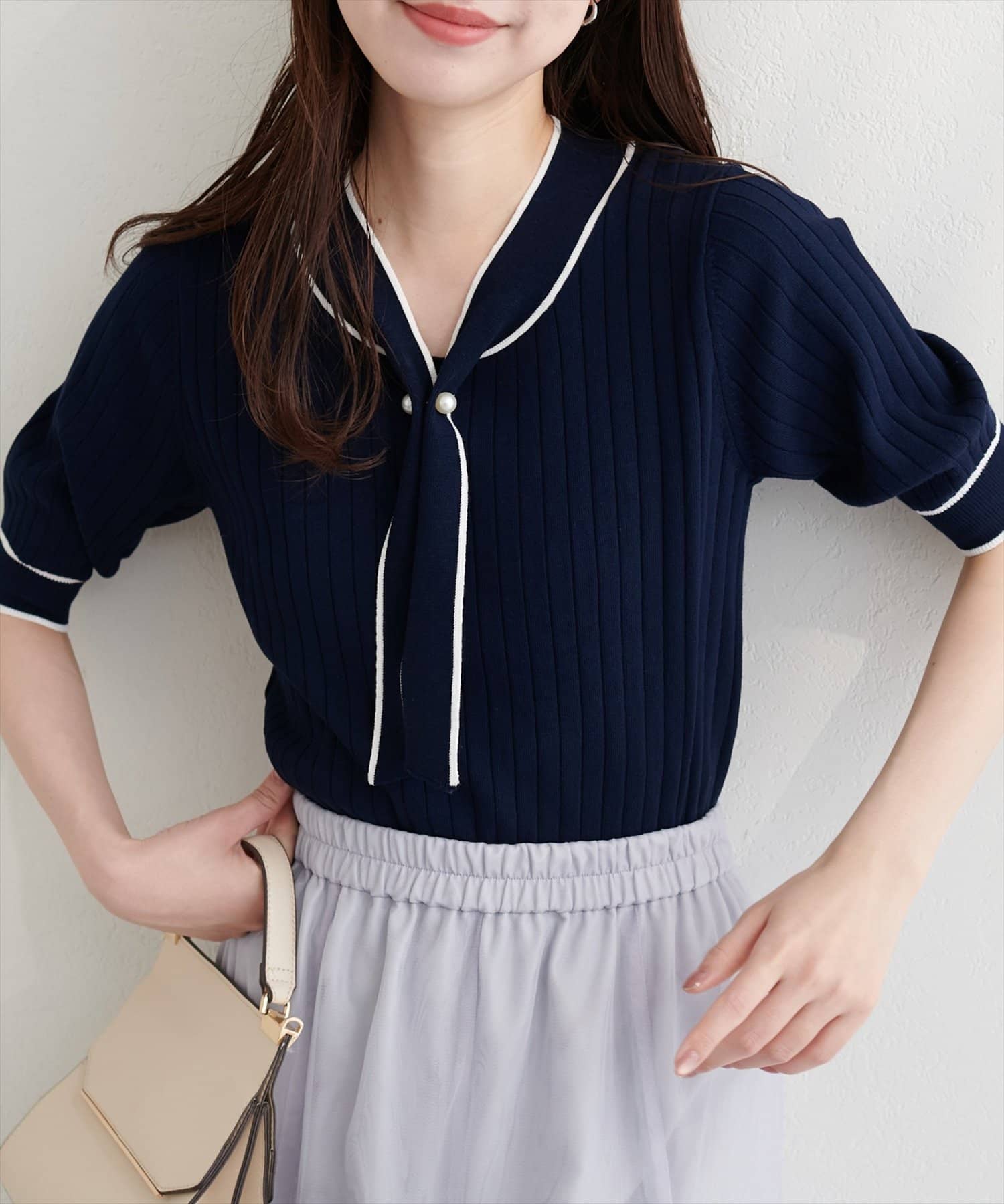 パール付きボータイバイカラーニット